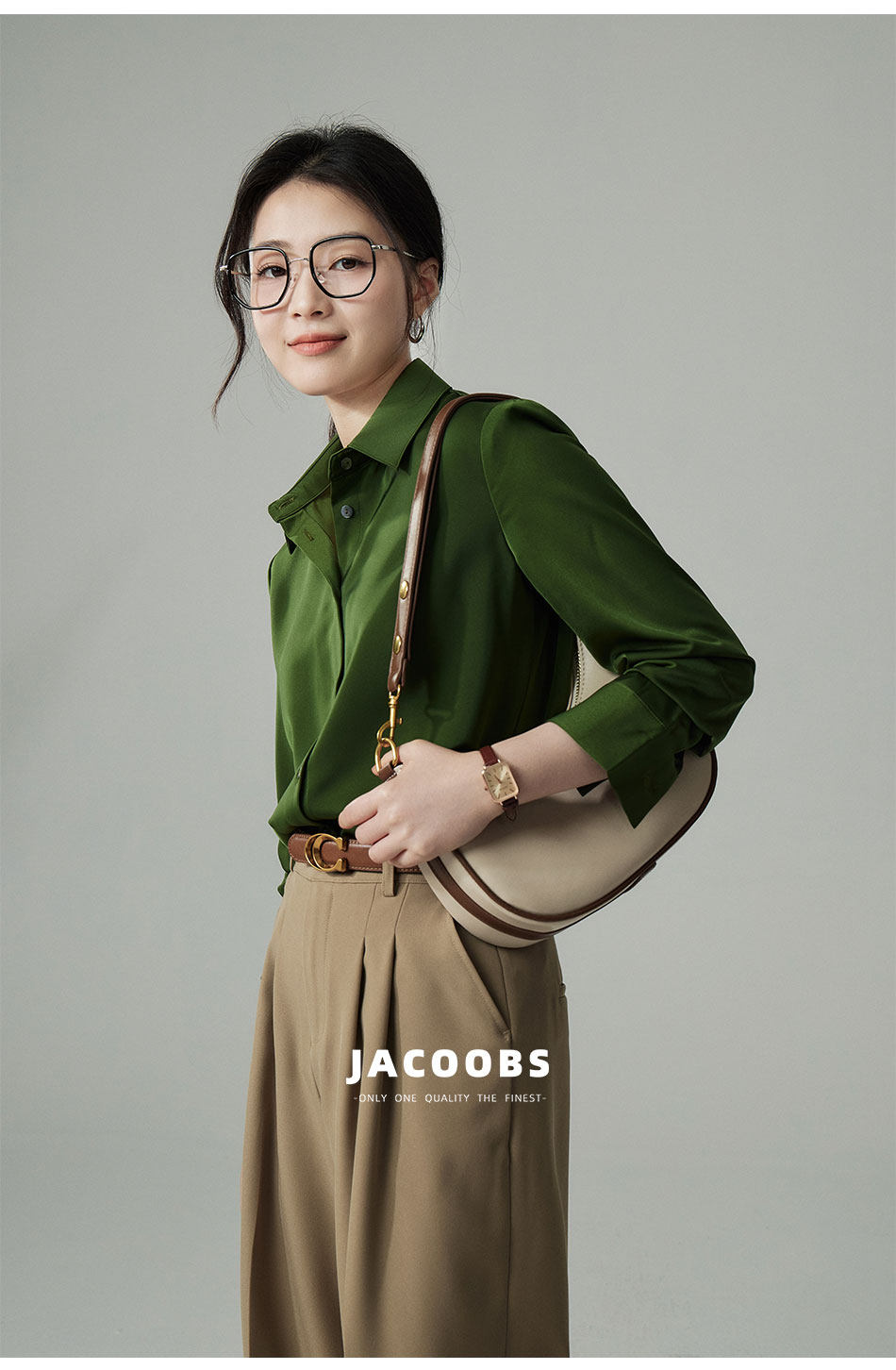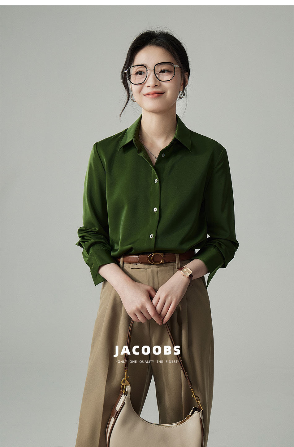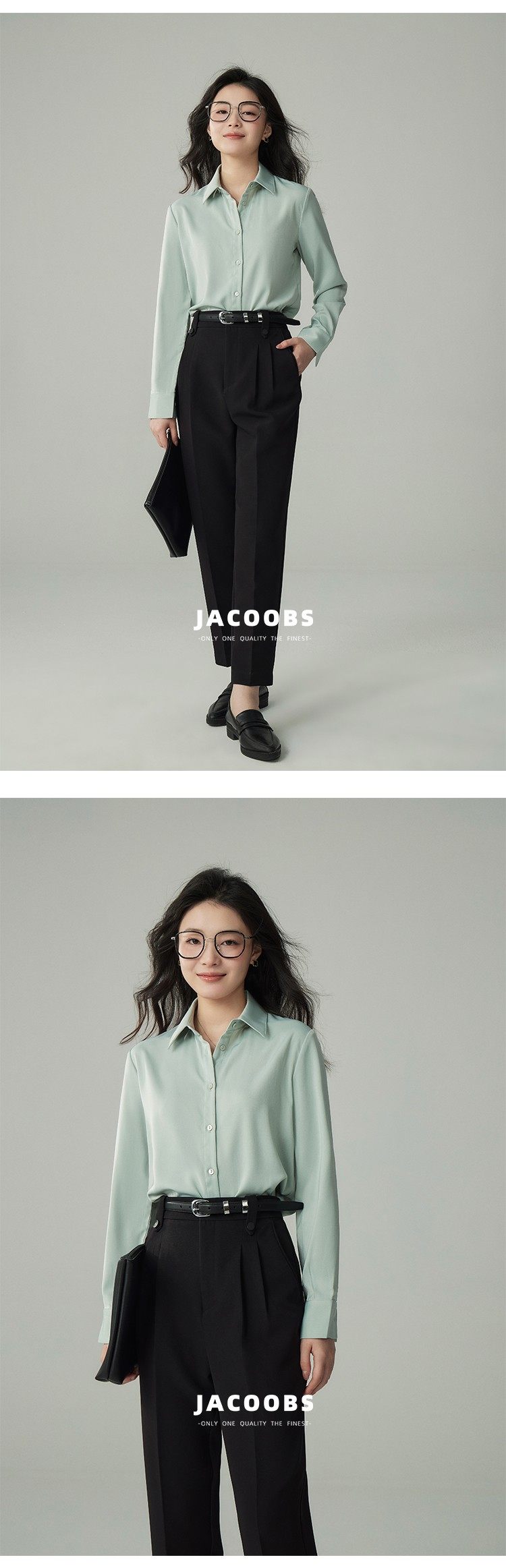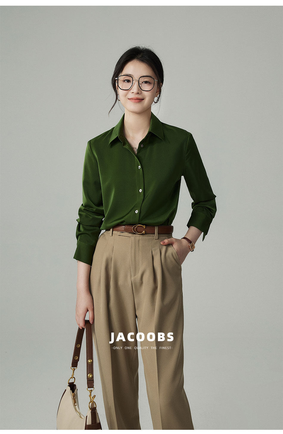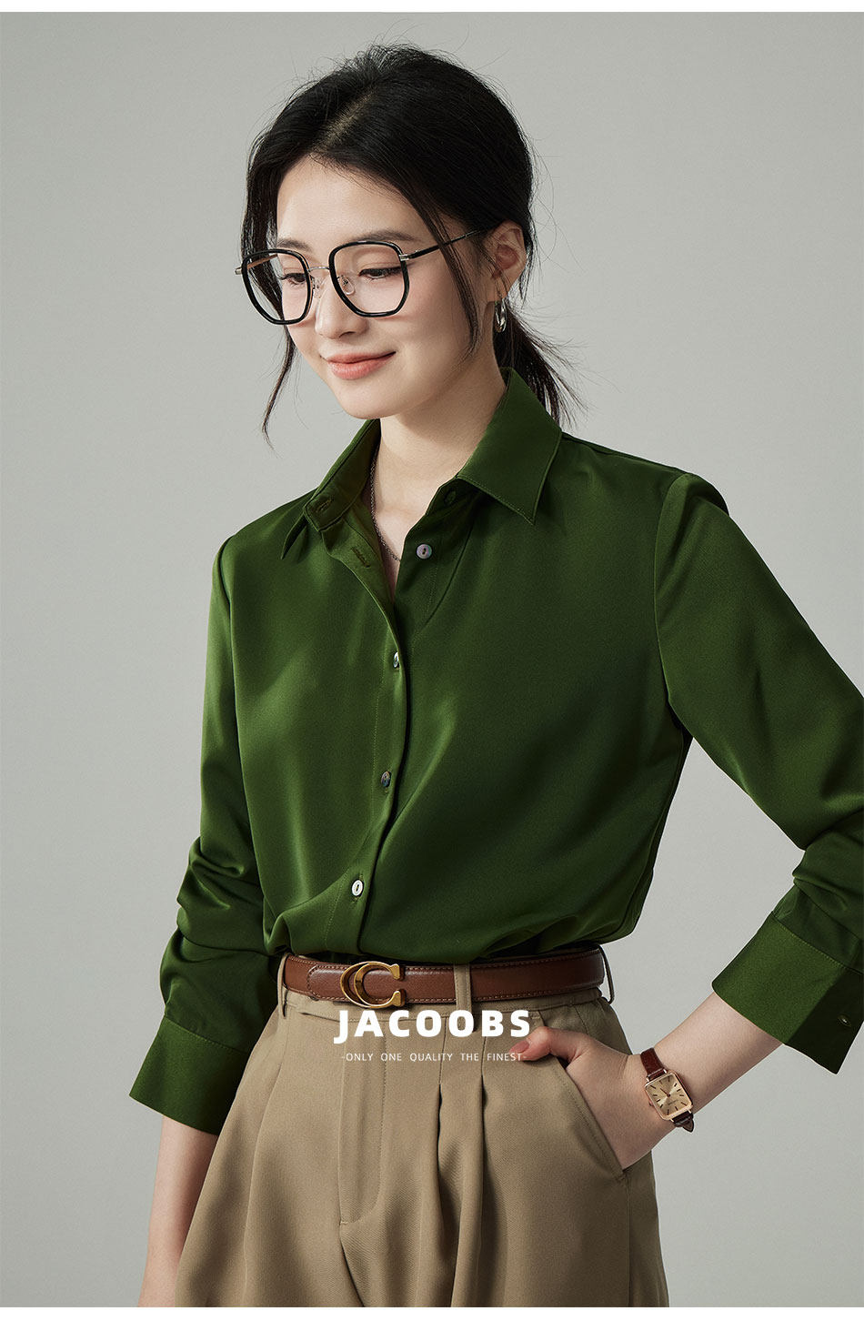 婭可家版型升級3.0 綠色緞面襯衫女春設計感小衆復古港味氣質襯衣