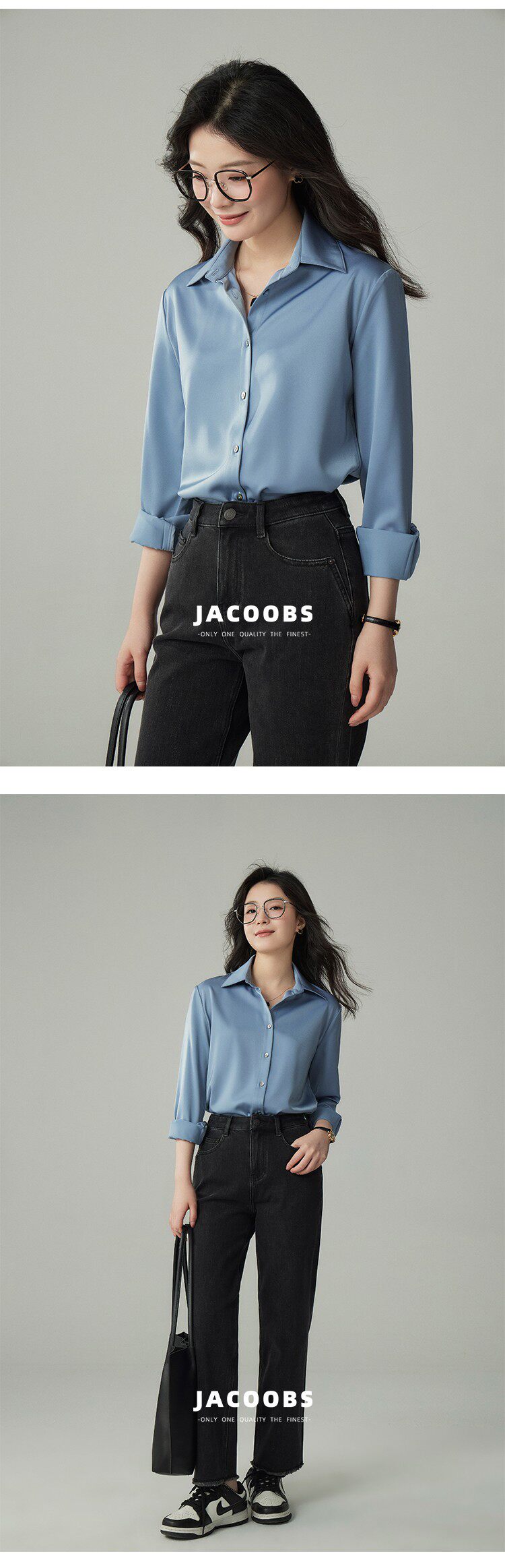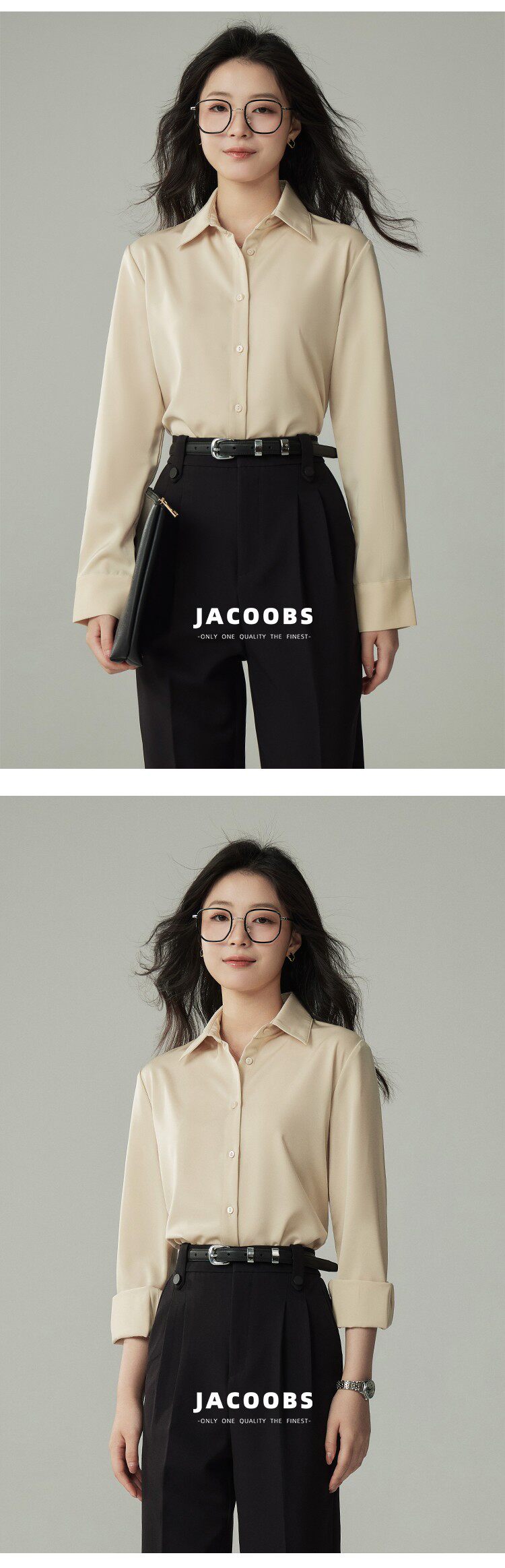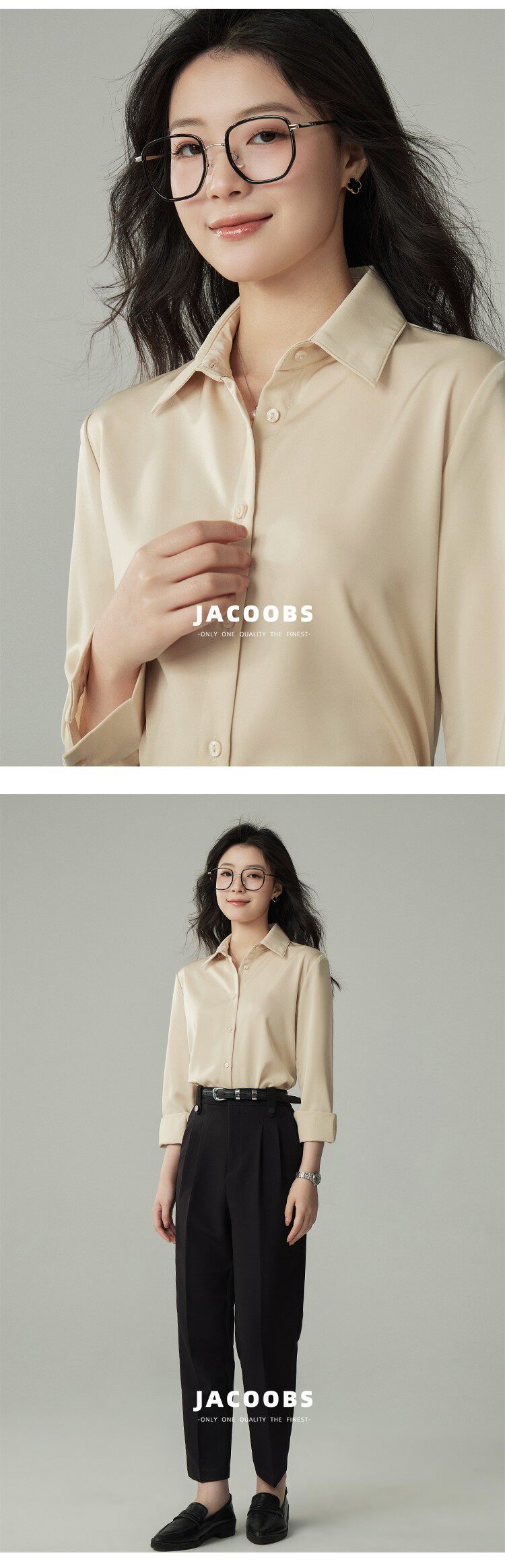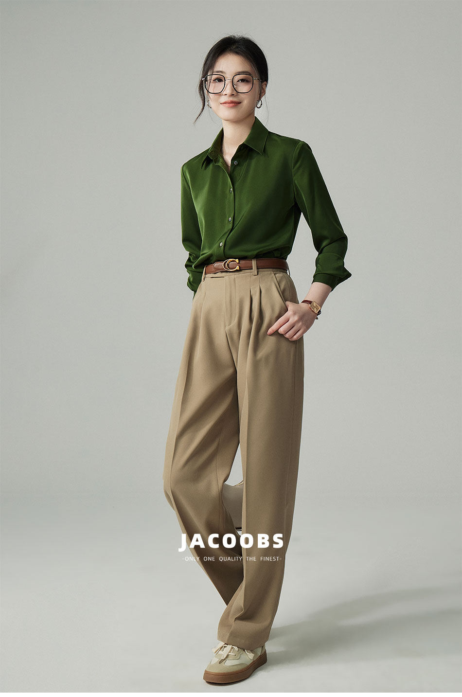 婭可家版型升級3.0 綠色緞面襯衫女春設計感小衆復古港味氣質襯衣