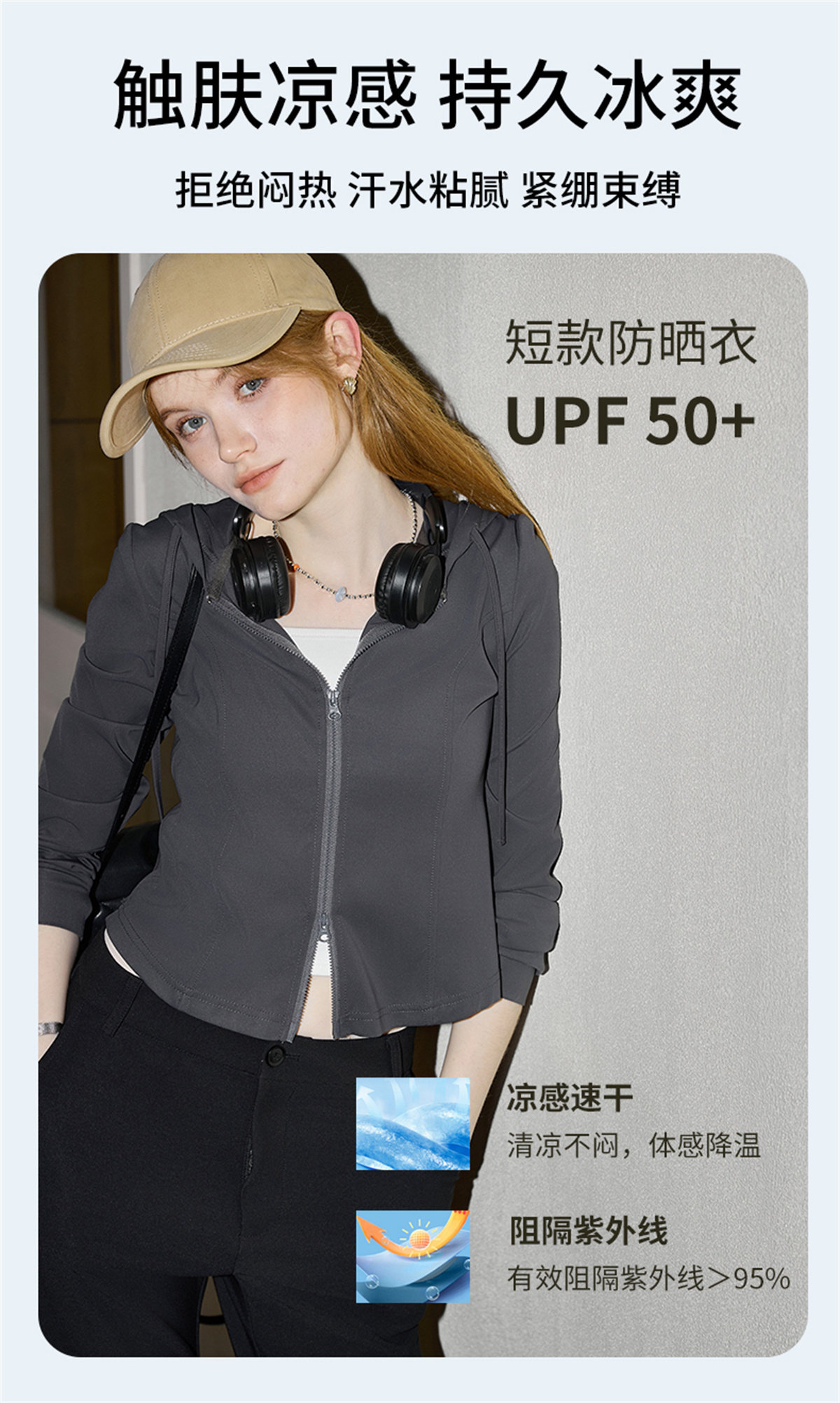 庫恩瑪維街頭風雙拉鍊連帽短外套女2026早春新款涼感物語遮陽上衣