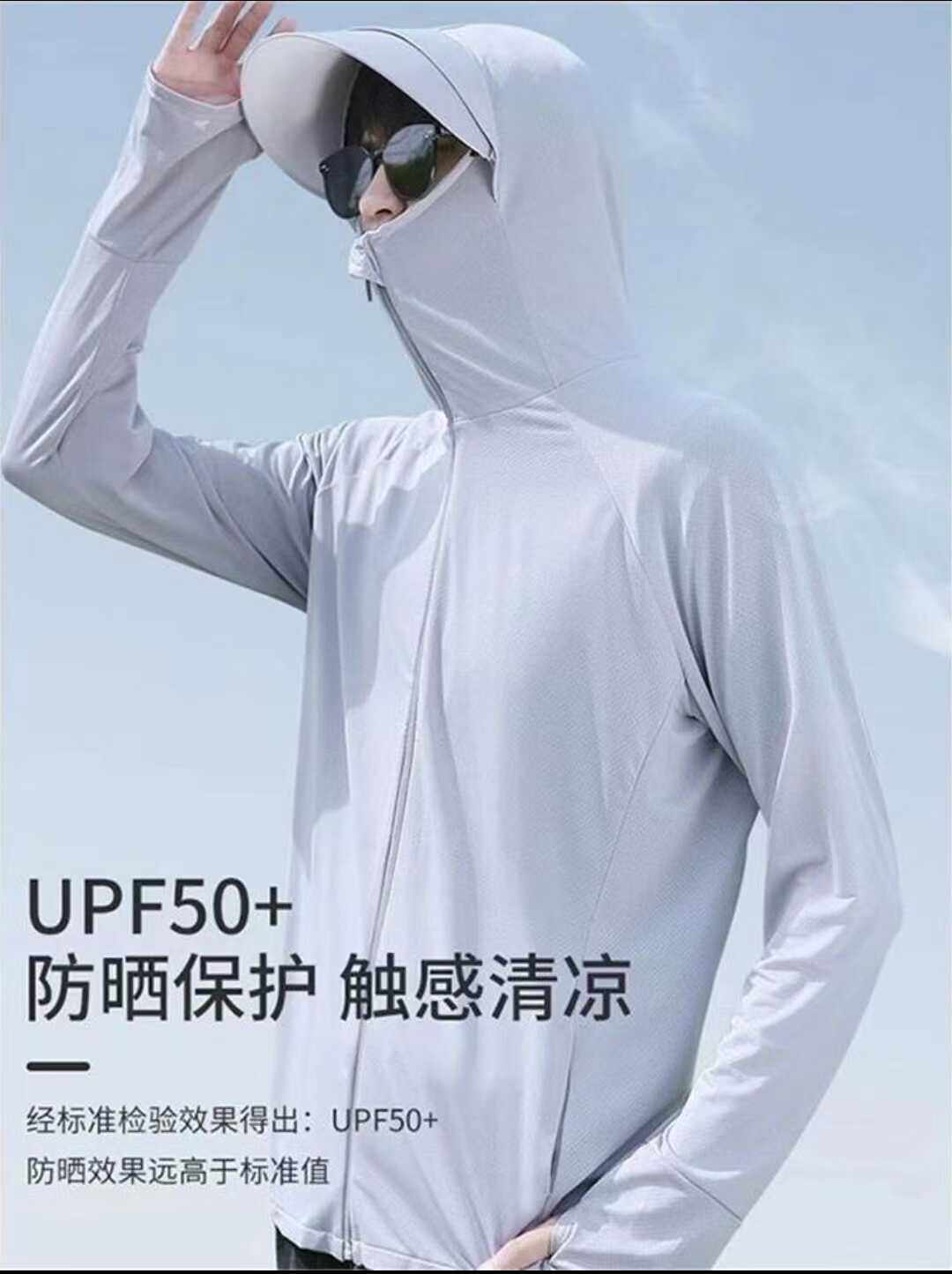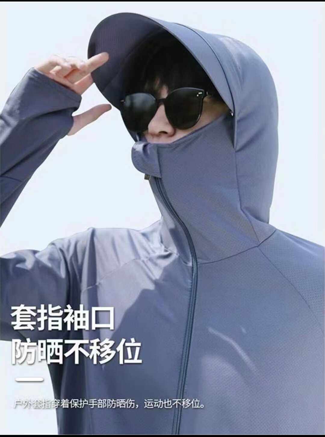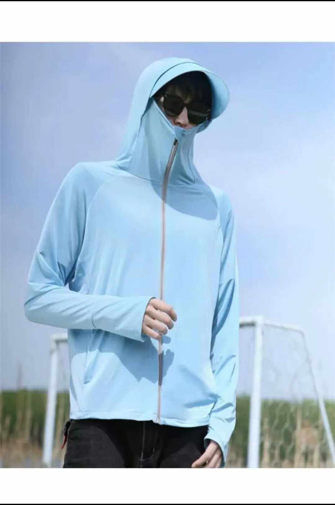 冰絲網眼防曬衣男款防紫外線釣魚服遮陽防曬衣帽遮臉一體防曬服