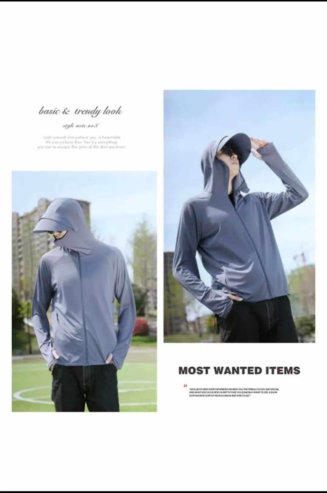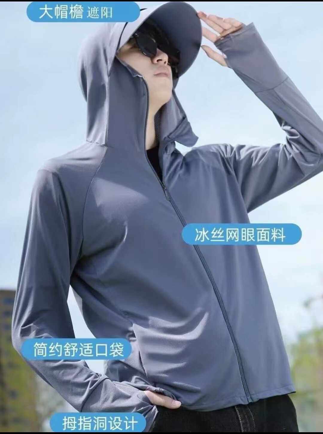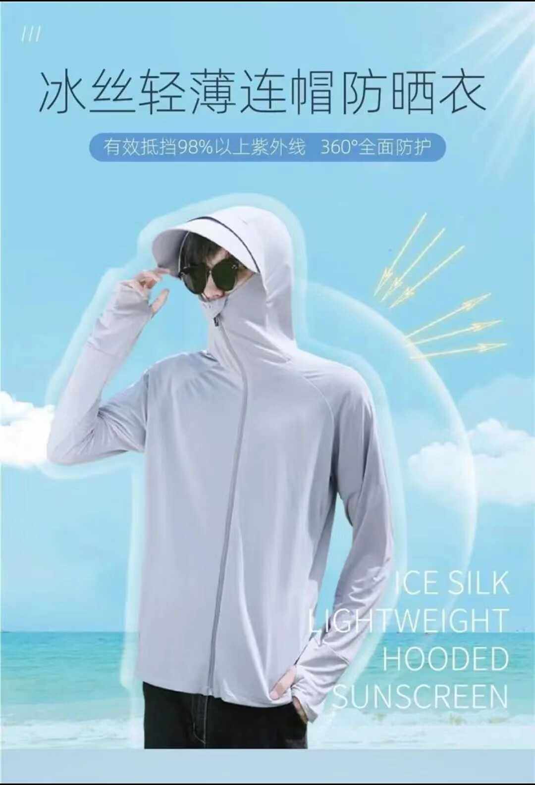 冰絲網眼防曬衣男款防紫外線釣魚服遮陽防曬衣帽遮臉一體防曬服