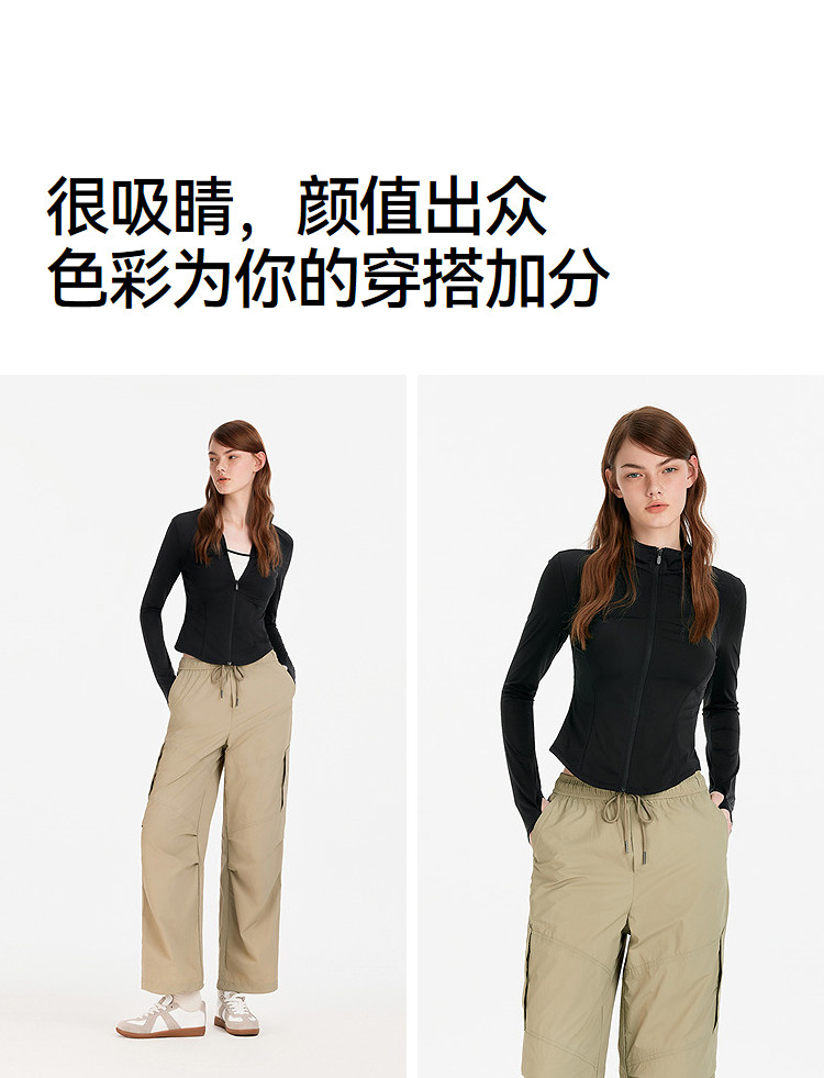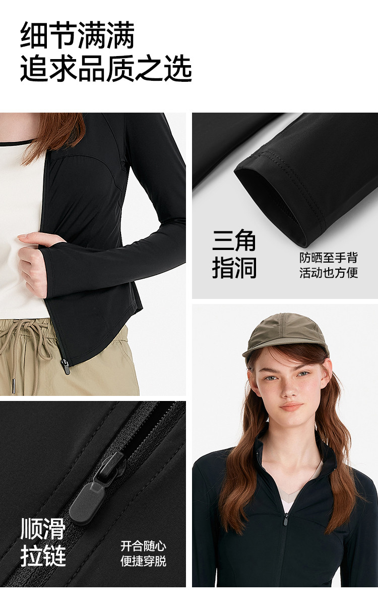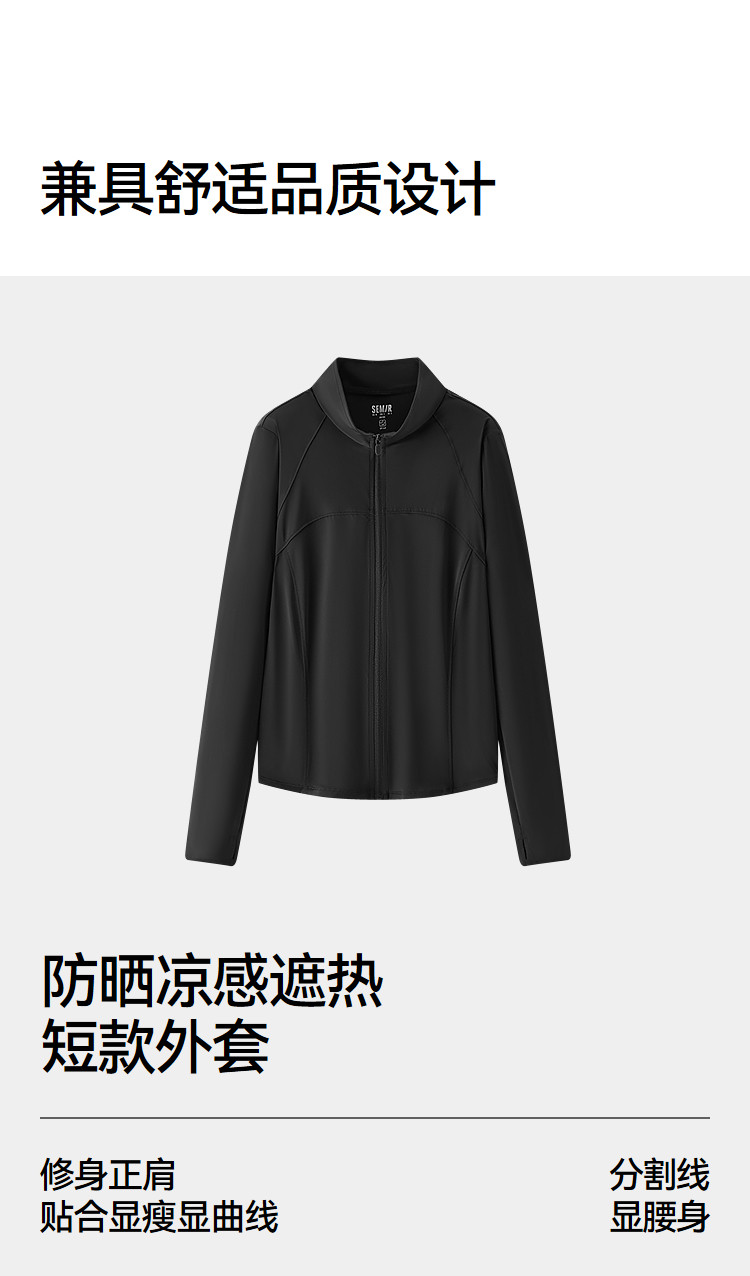 防曬外套|森馬夾克女夏季短款涼感立領正肩分割純色戶外顯瘦上衣