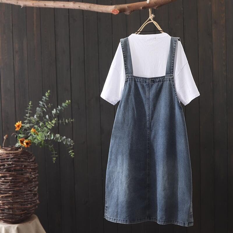 意大利單撿漏夏季牛仔背帶裙大碼休閒寬鬆文藝復古大碼連衣裙