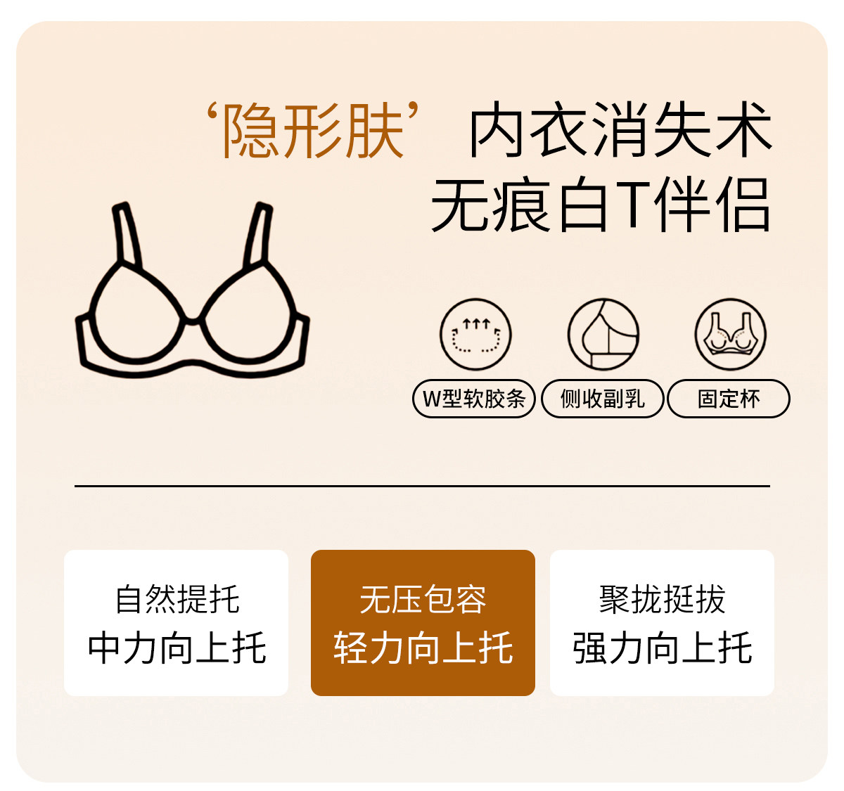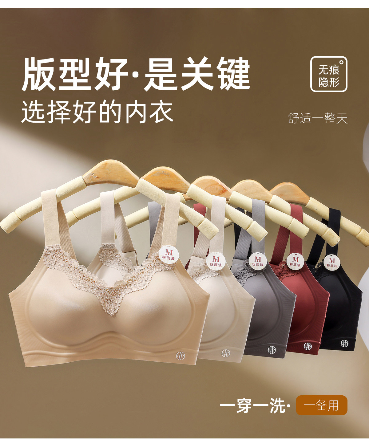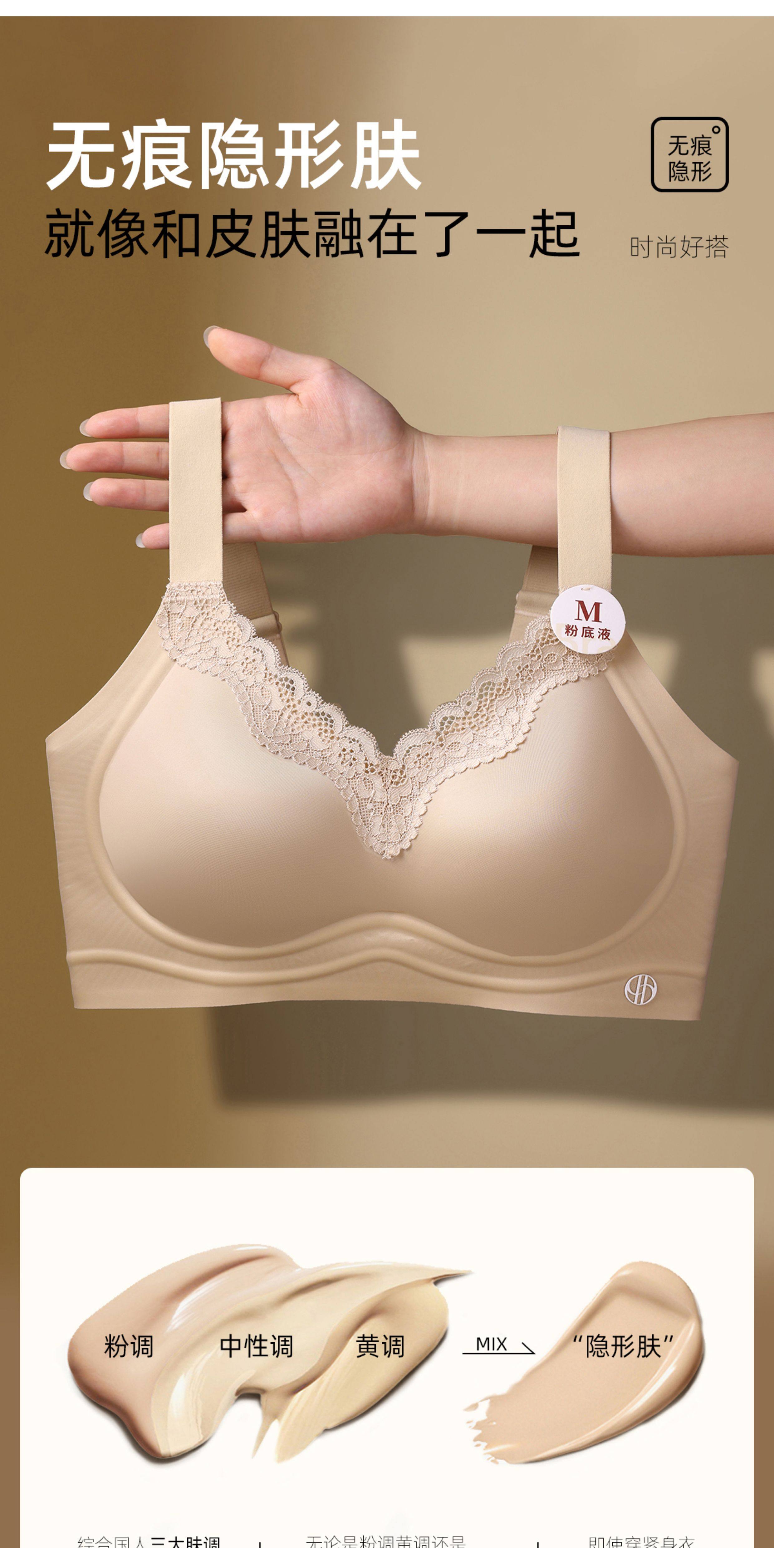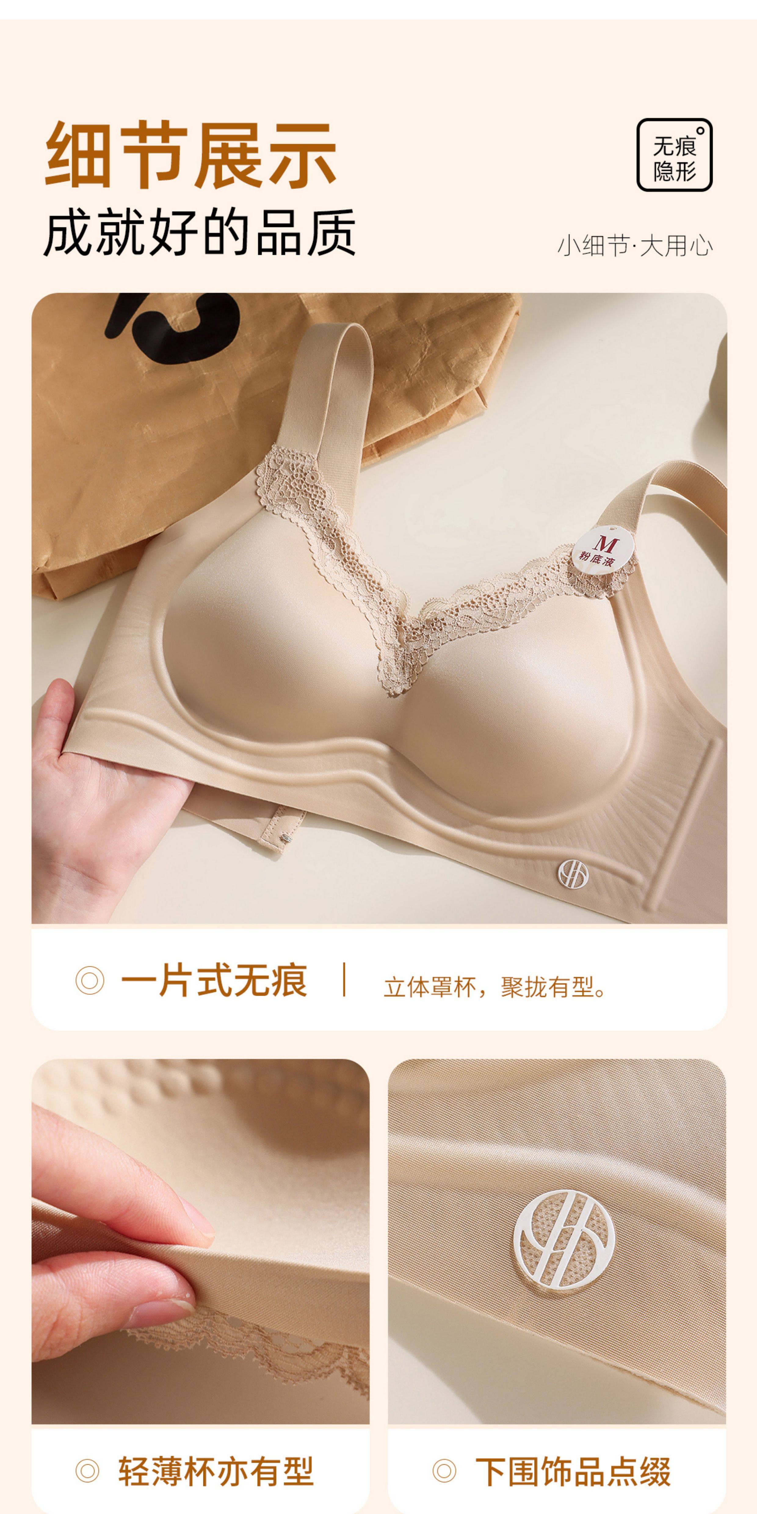 一體式固定杯粉底液光面無痕內衣女聚攏收副乳防下垂無鋼圈文胸罩