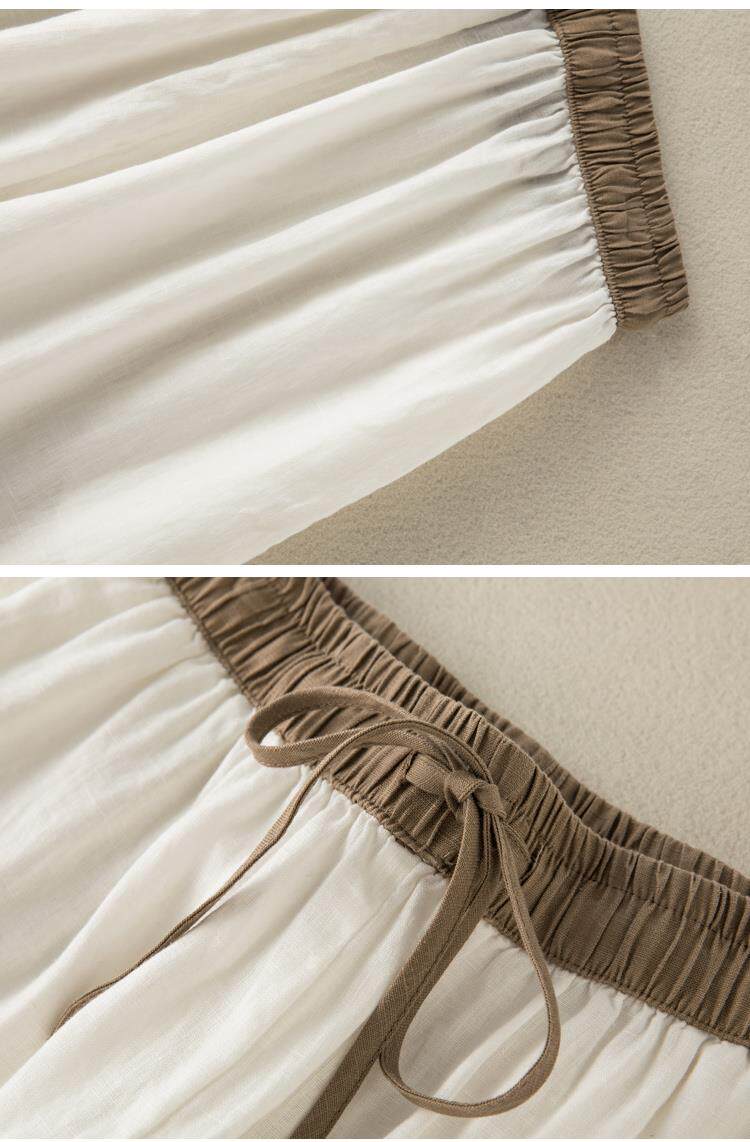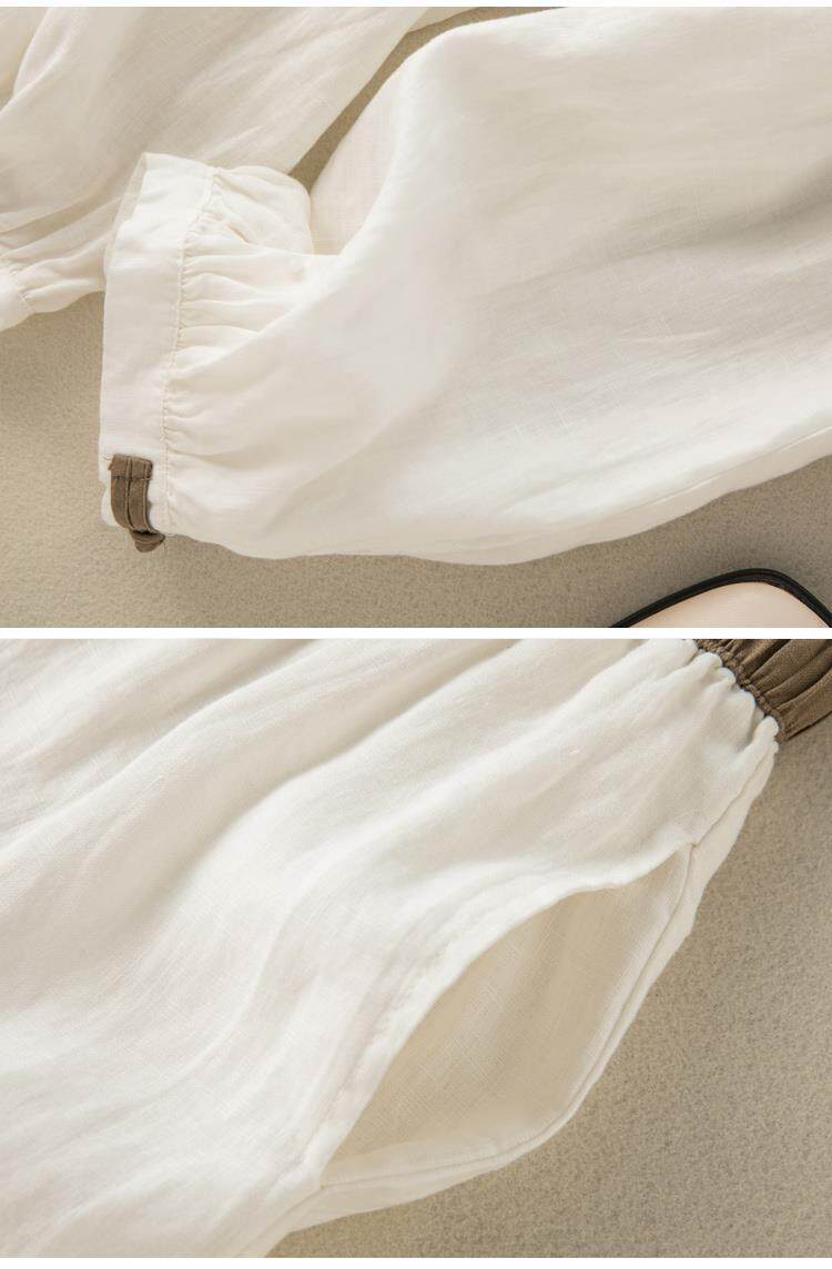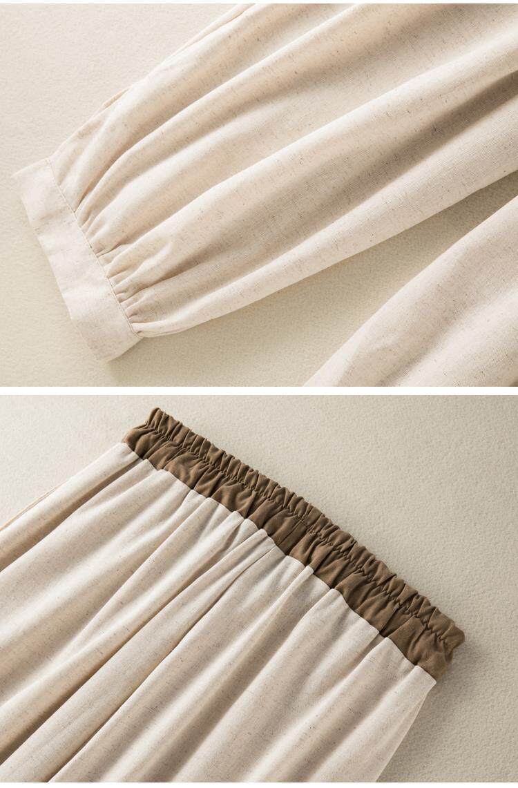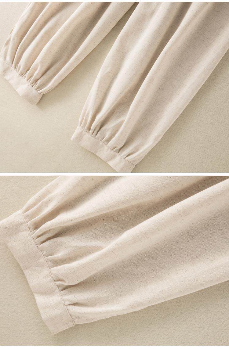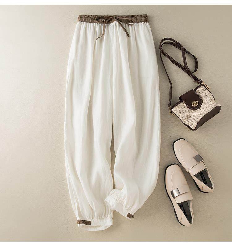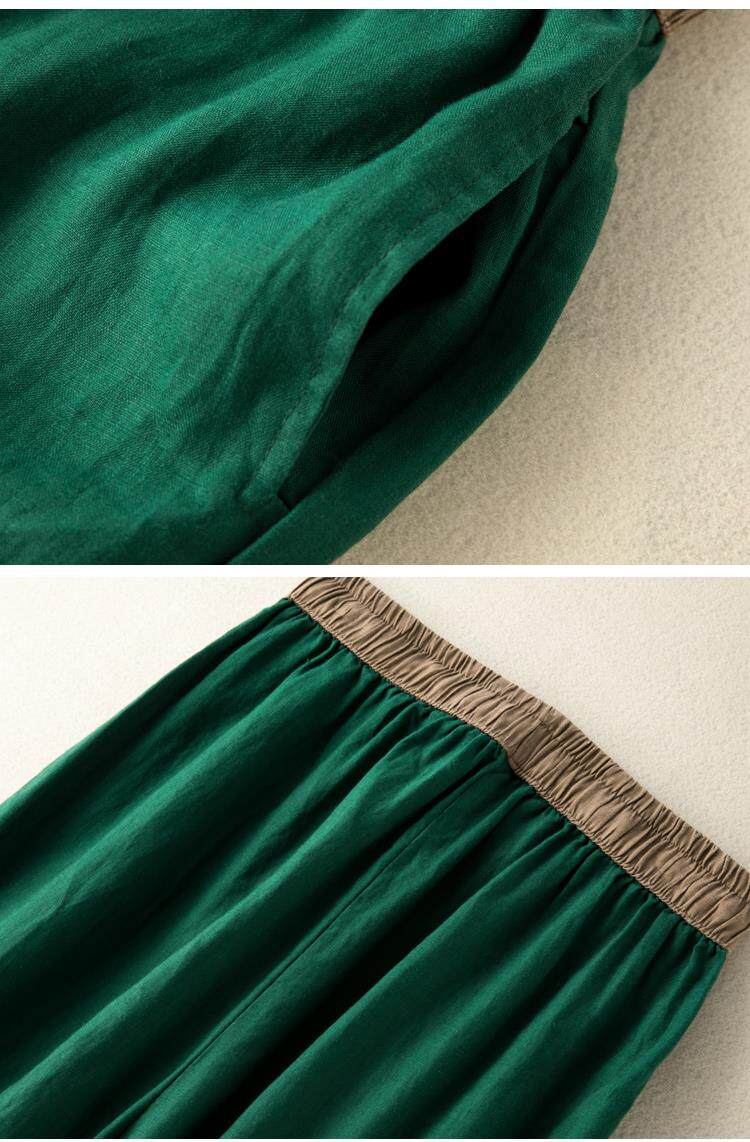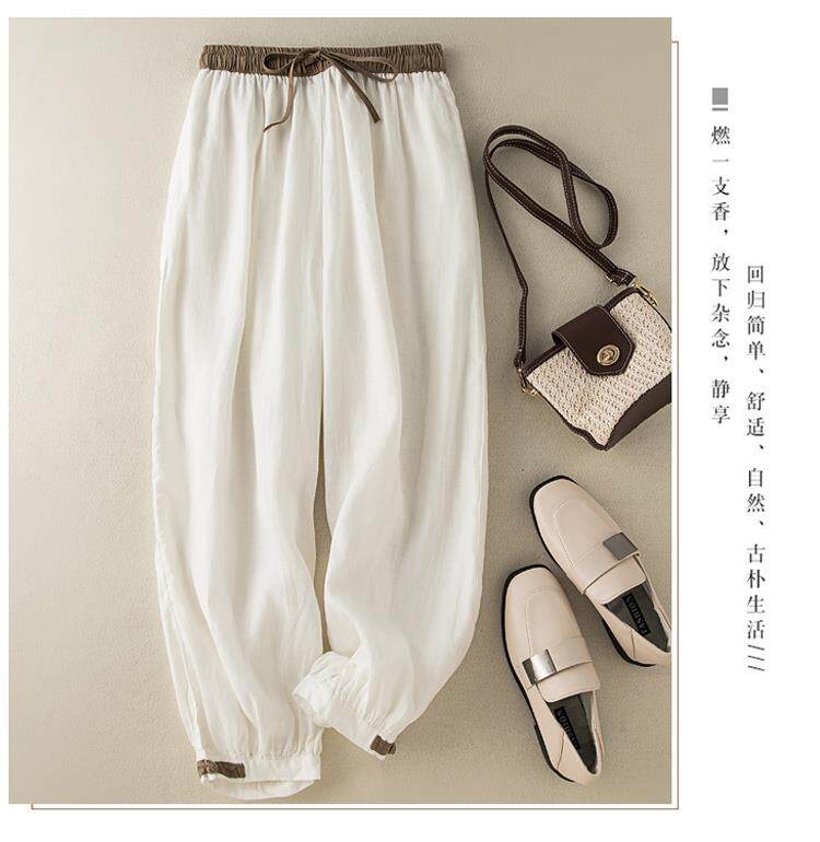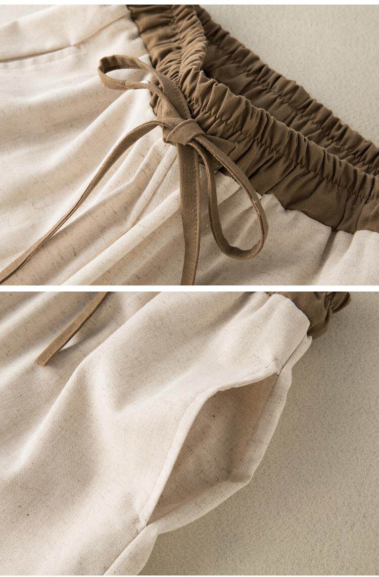 清倉撿漏~專櫃撤廻復古撞色盤釦亞麻九分褲女夏季薄款棉麻哈倫褲