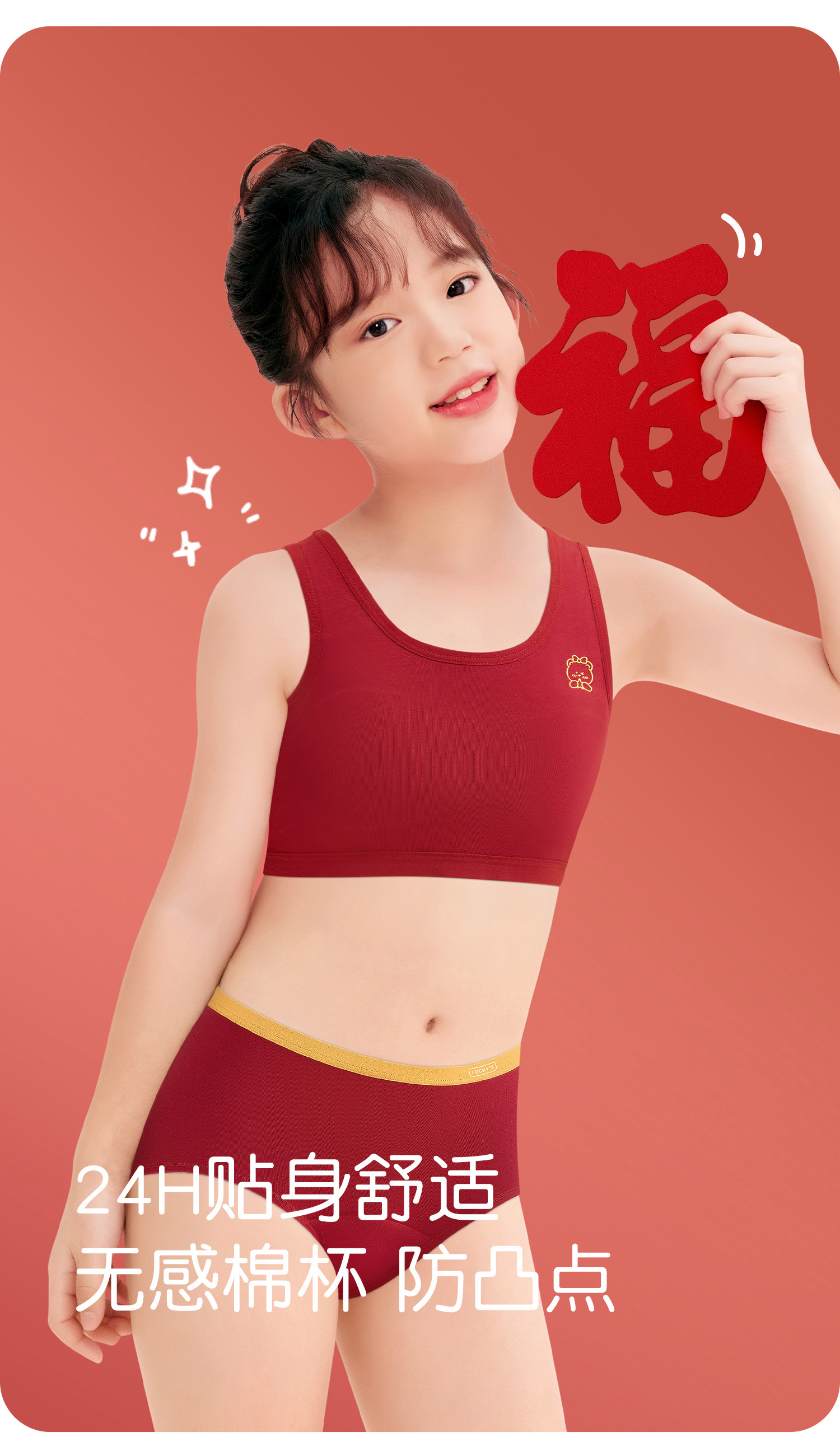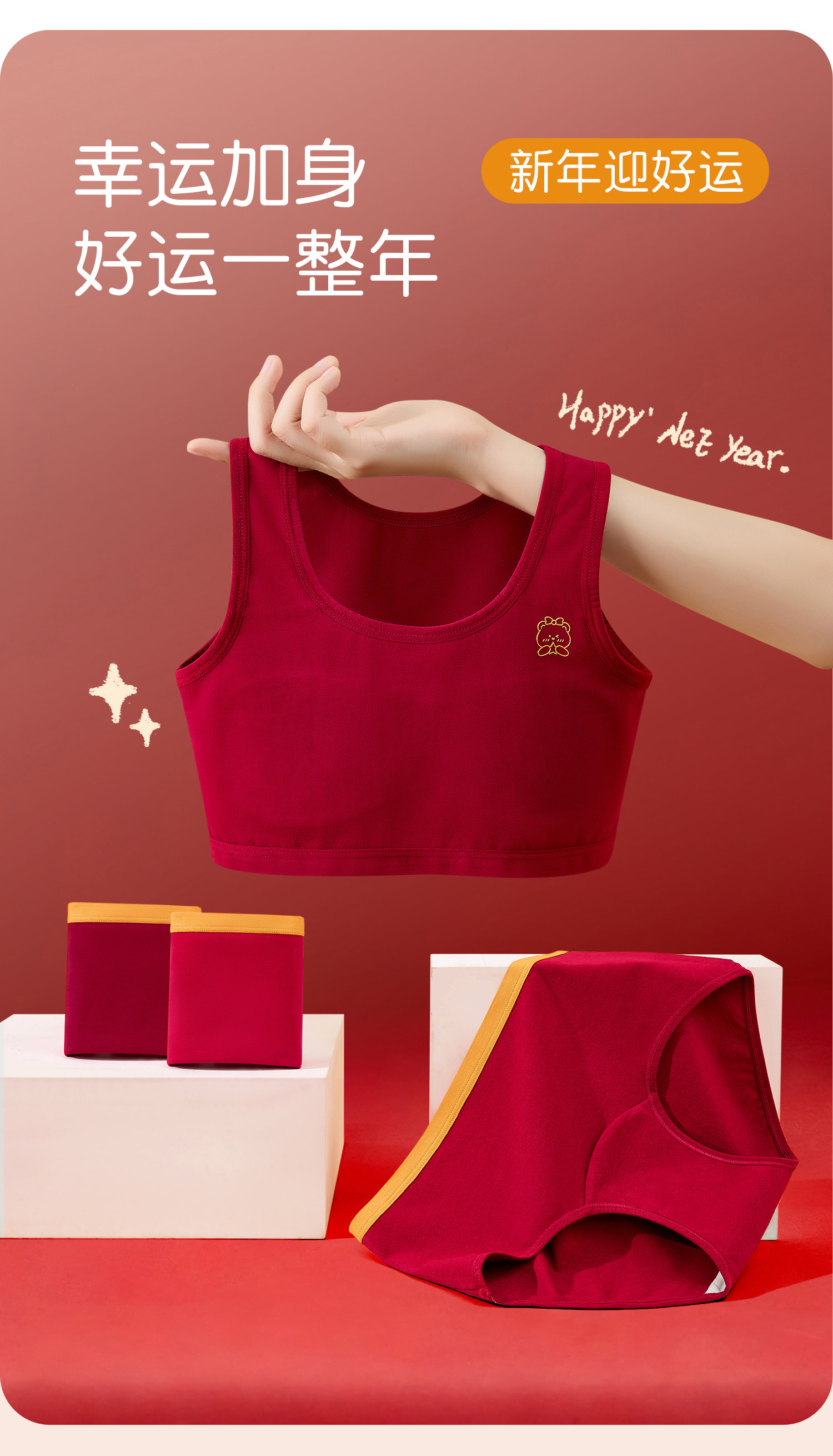 女童本命年內衣套裝12嵗一階段發育期少女孩紅色背心2026馬年禮物