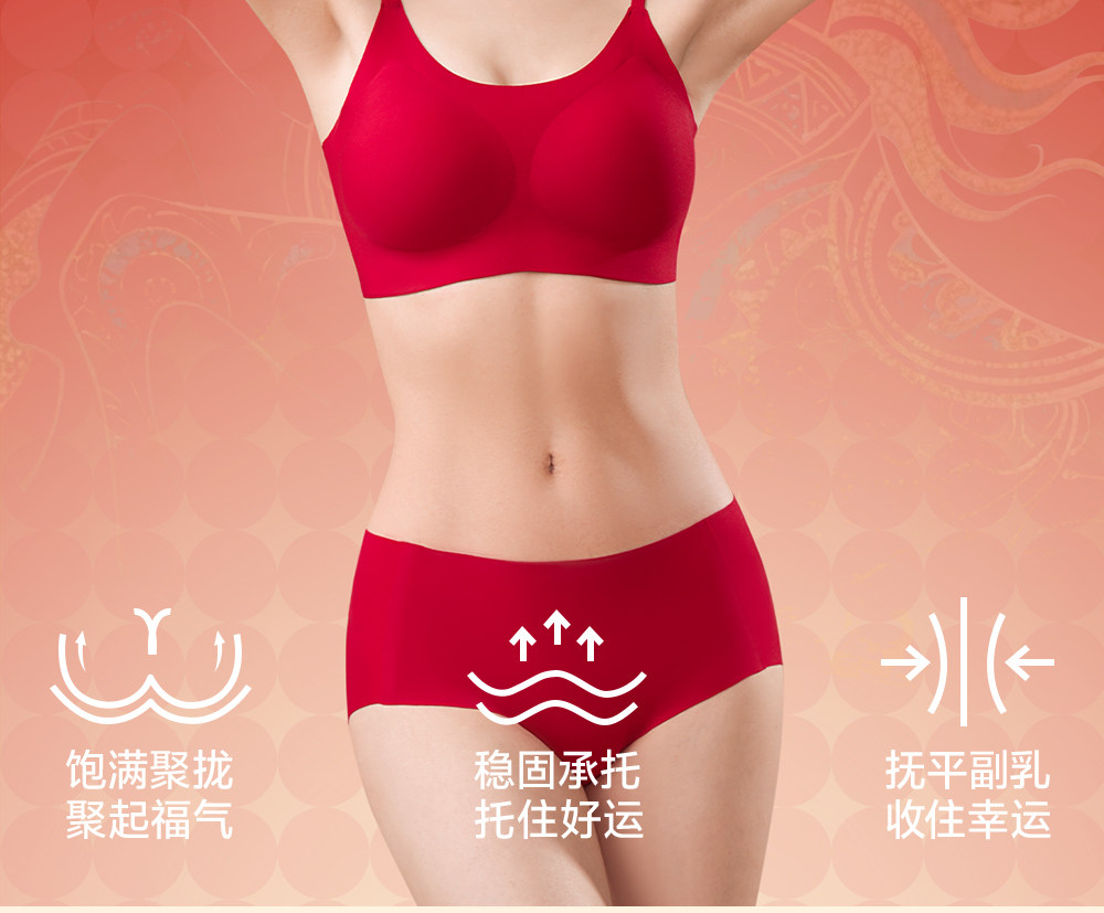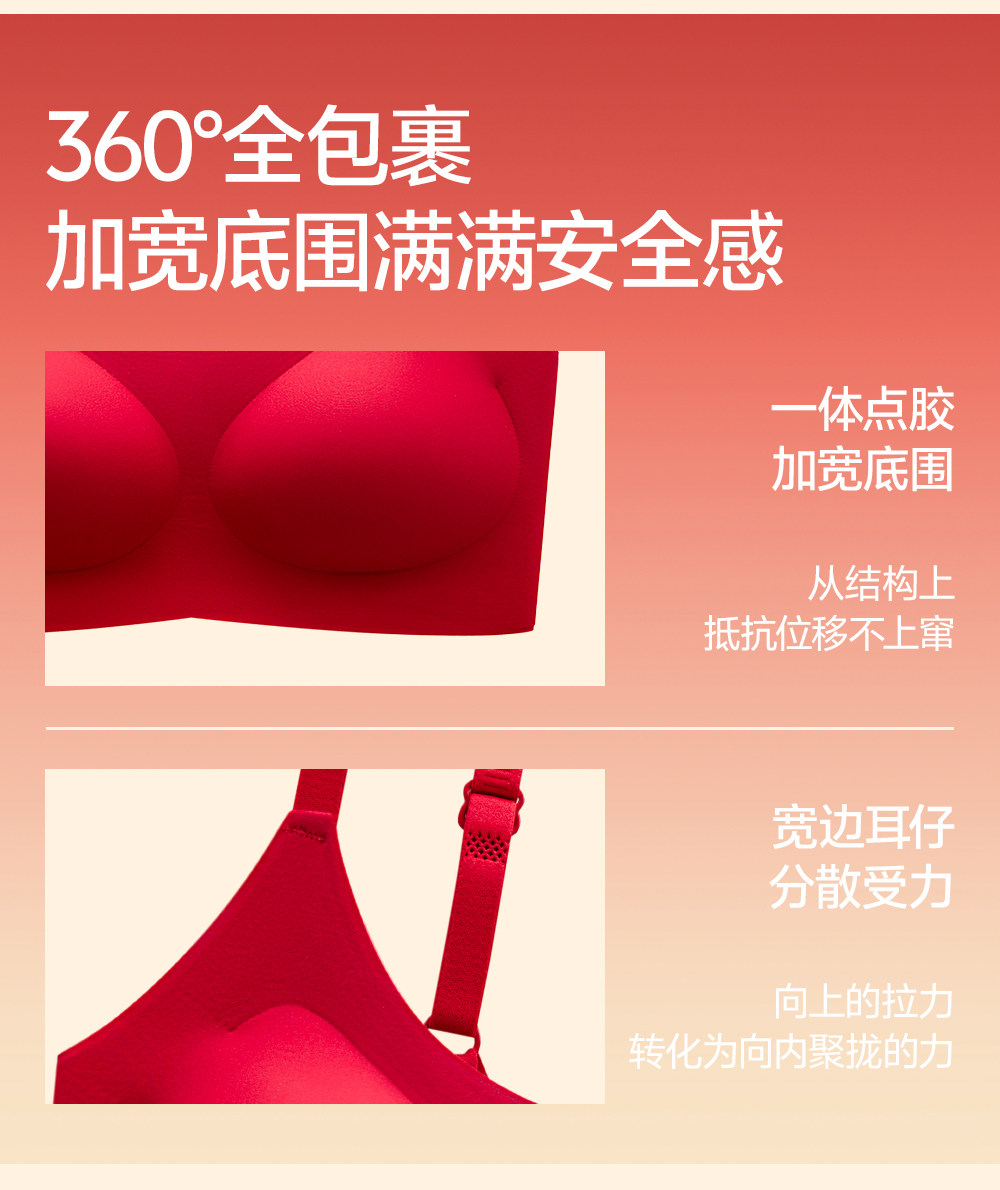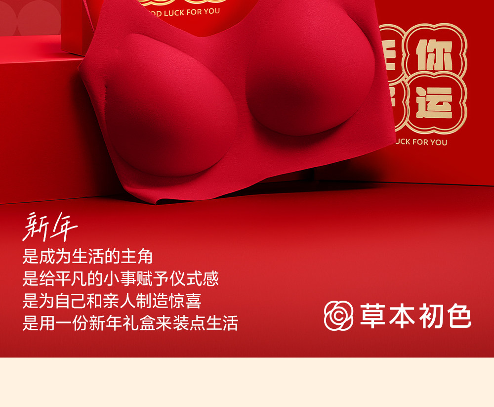 草本初色內衣套裝女本命年紅反重力提拉聚攏7A無鋼圈收副乳文胸罩