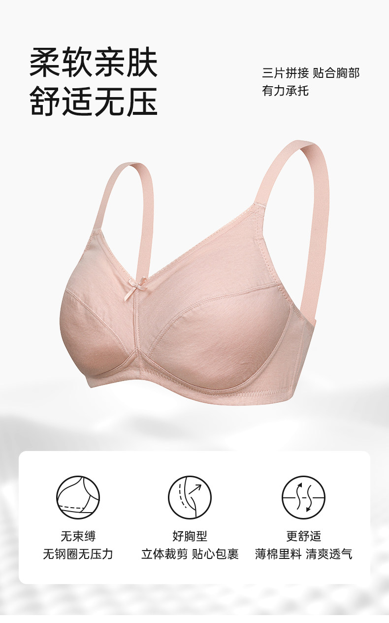 古今薄款無鋼圈女式純棉裡料聚攏文胸大胸顯小大碼爆款夏季內衣