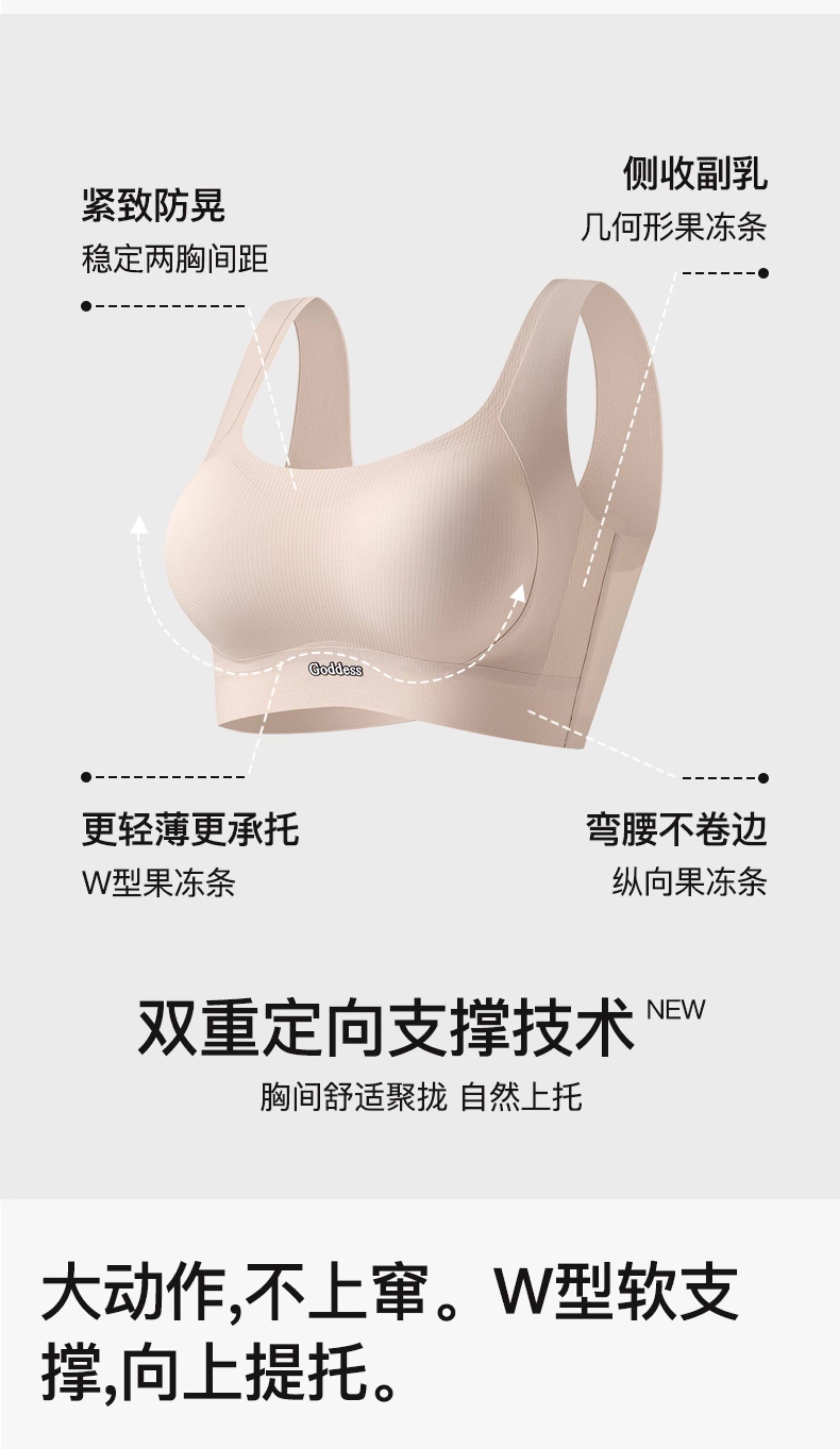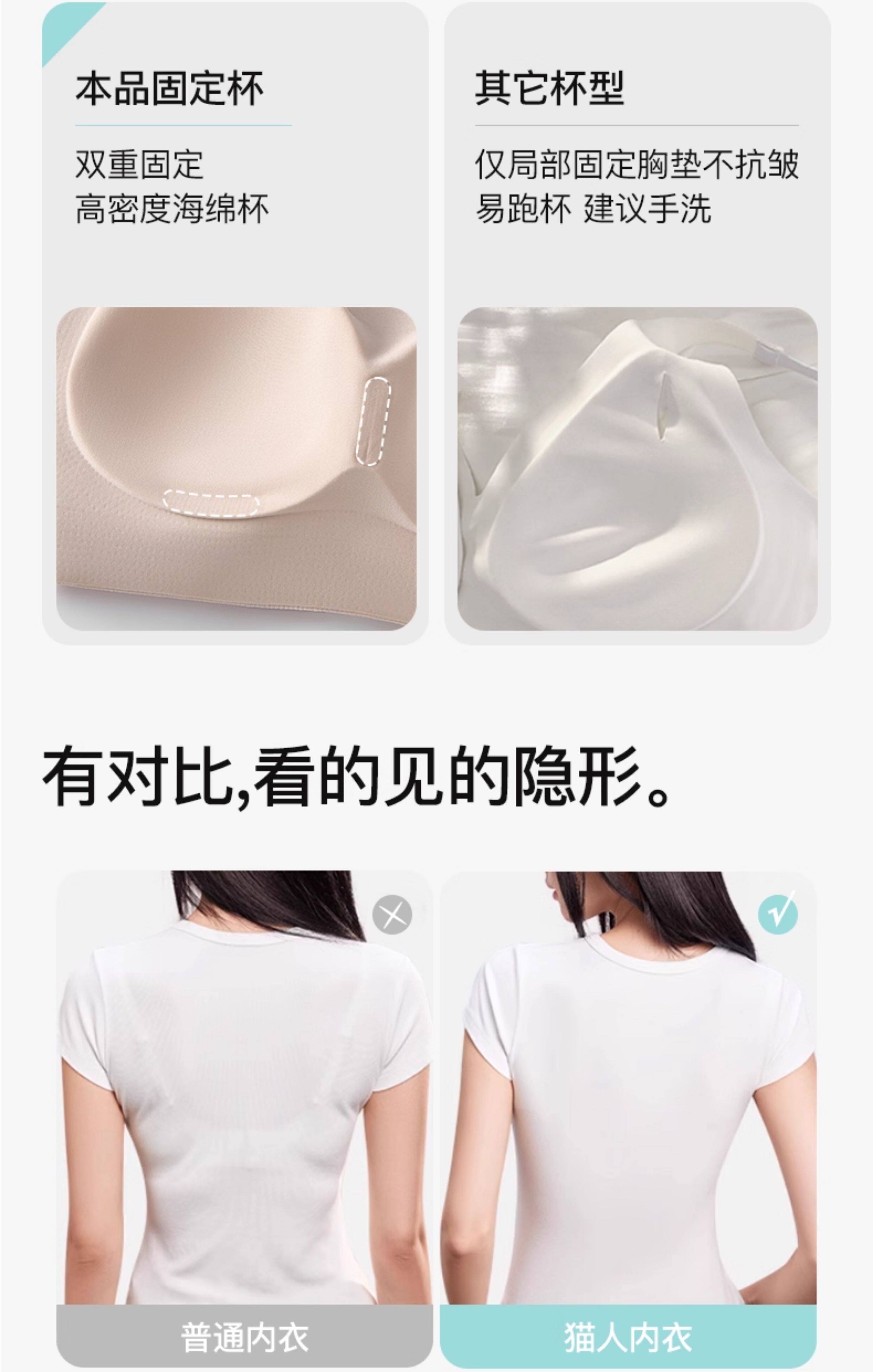 貓人無痕內衣2026新款大胸顯小無鋼圈提拉防垂收副乳背心式文胸罩
