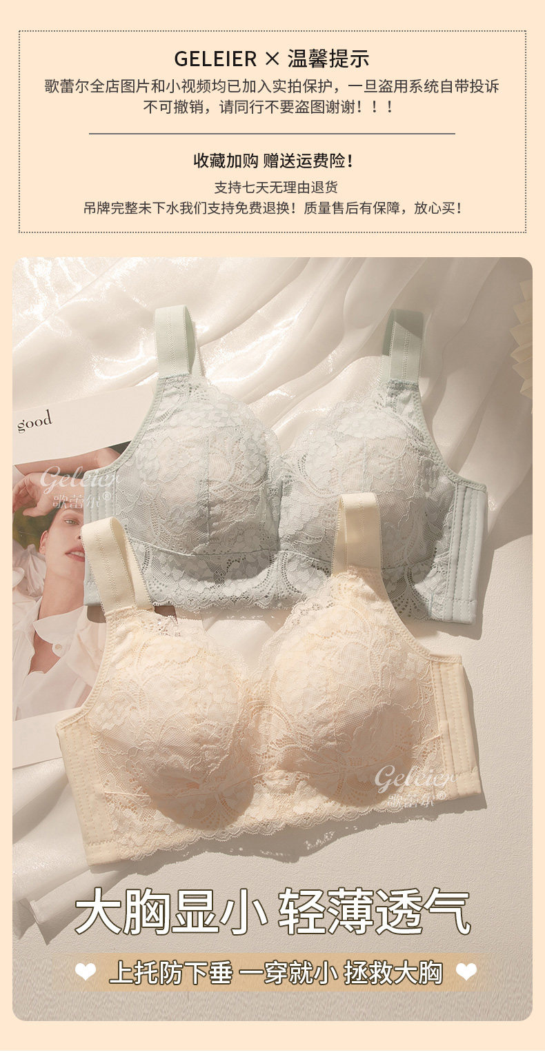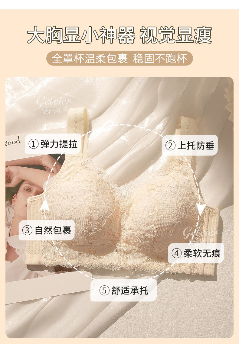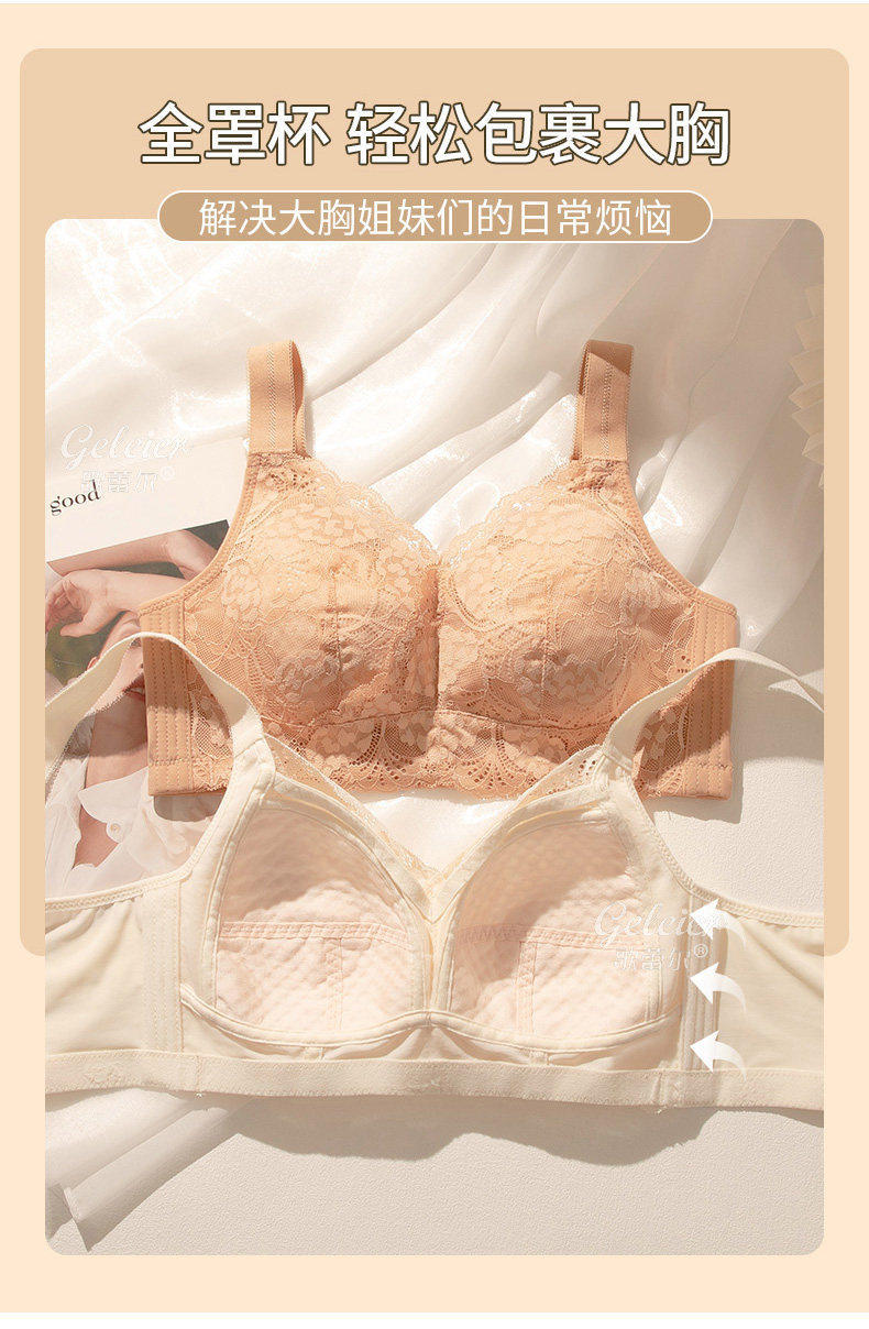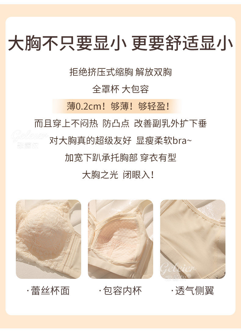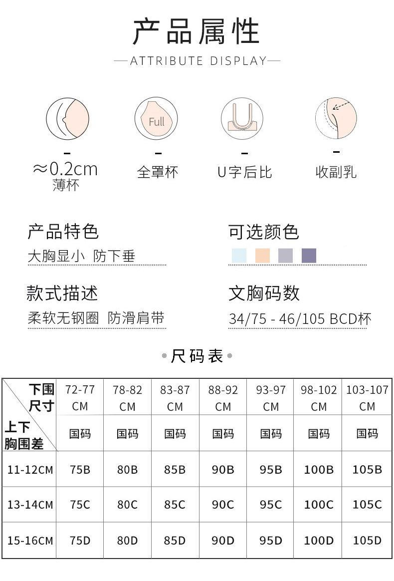 夏天大胸顯小內衣女夏季薄款防下垂收副乳聚攏無鋼圈文胸大碼胸罩