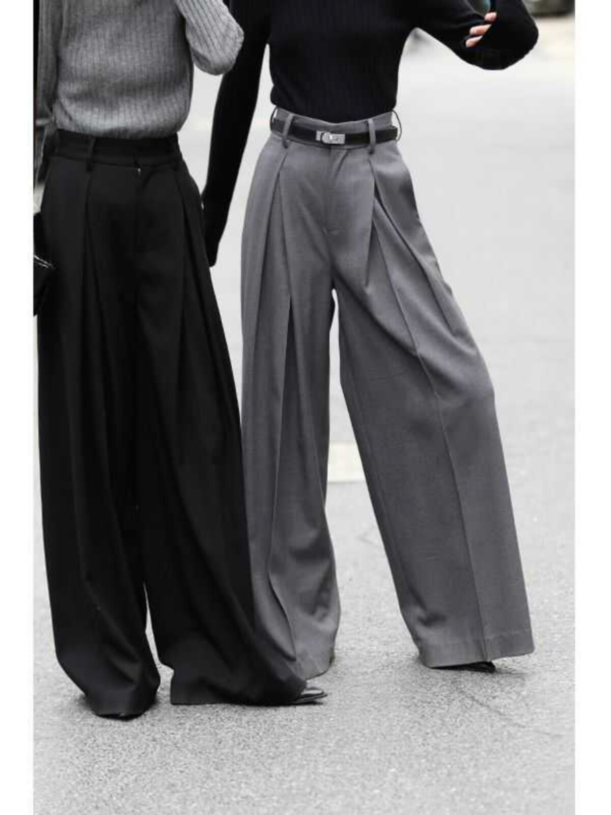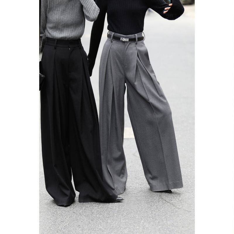 2026年新款韓版高級灰色百搭酷颯率性顯瘦顯腿長西褲濶腿休閒長褲