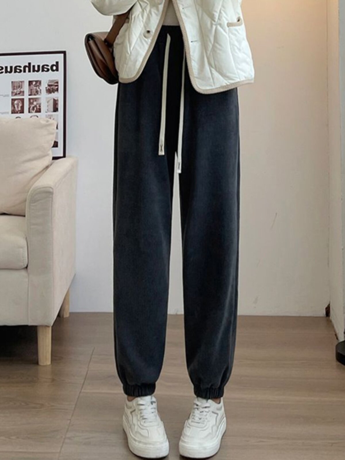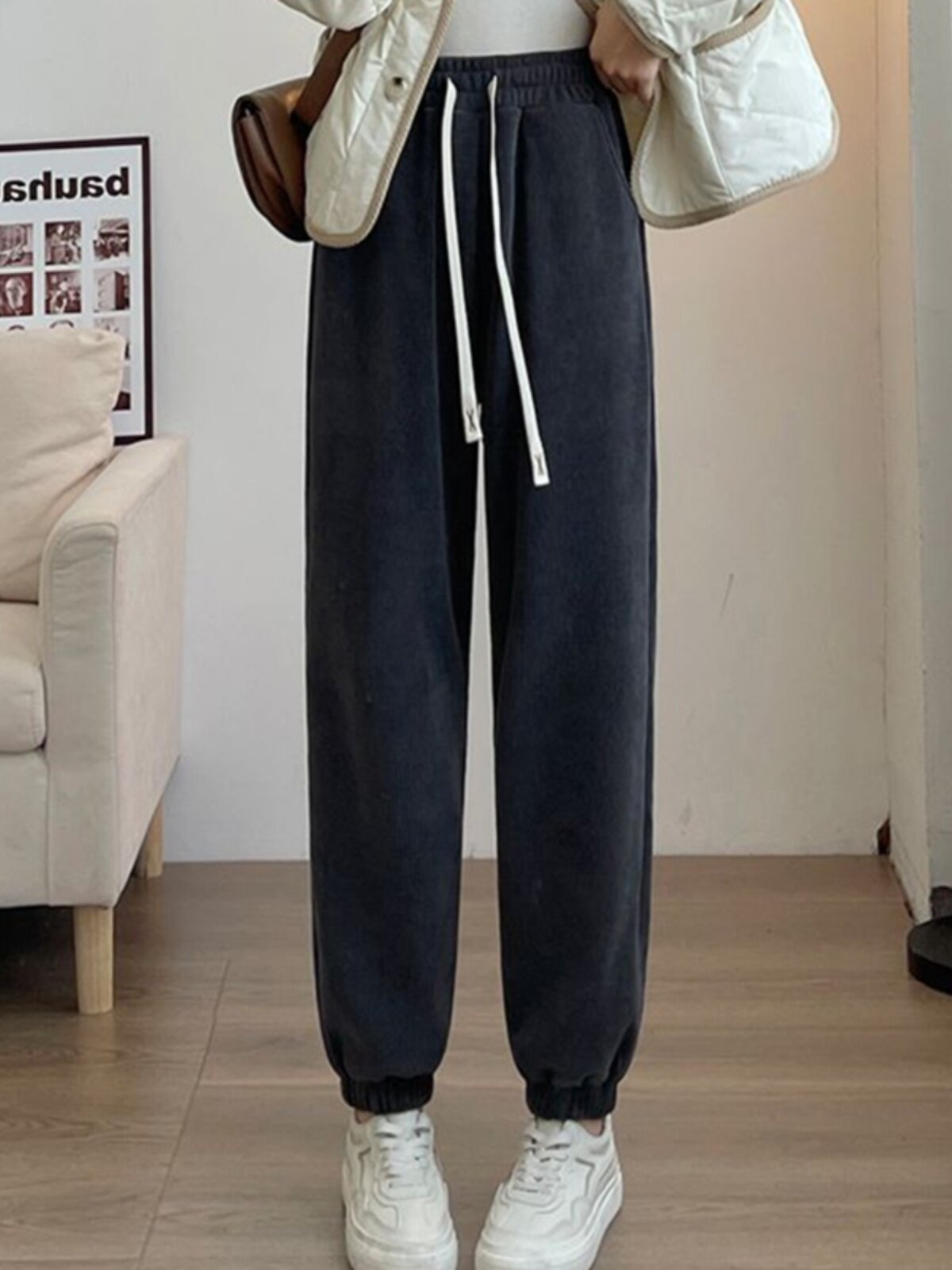 歐棉絨哈倫褲女秋冬季2025大碼寬鬆燈芯絨加絨衛褲學生束腳休閒褲