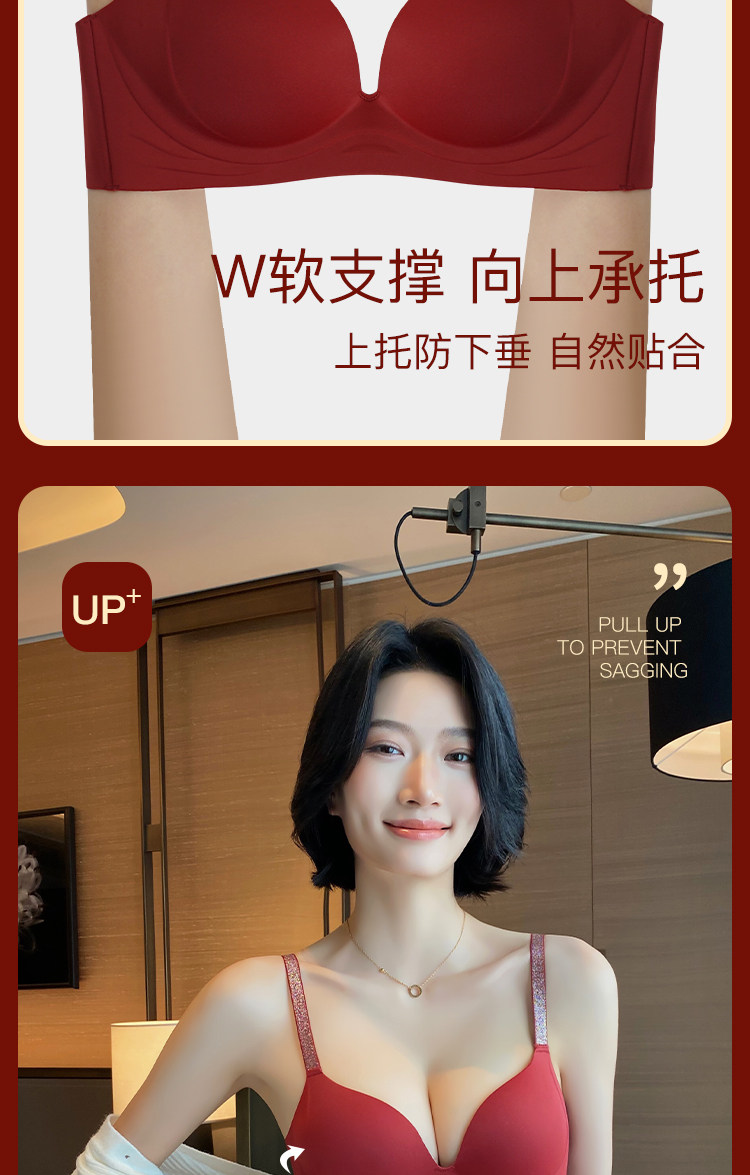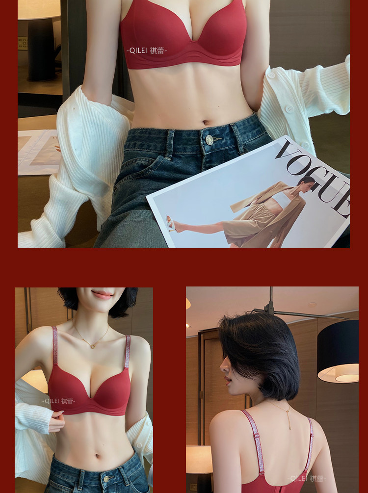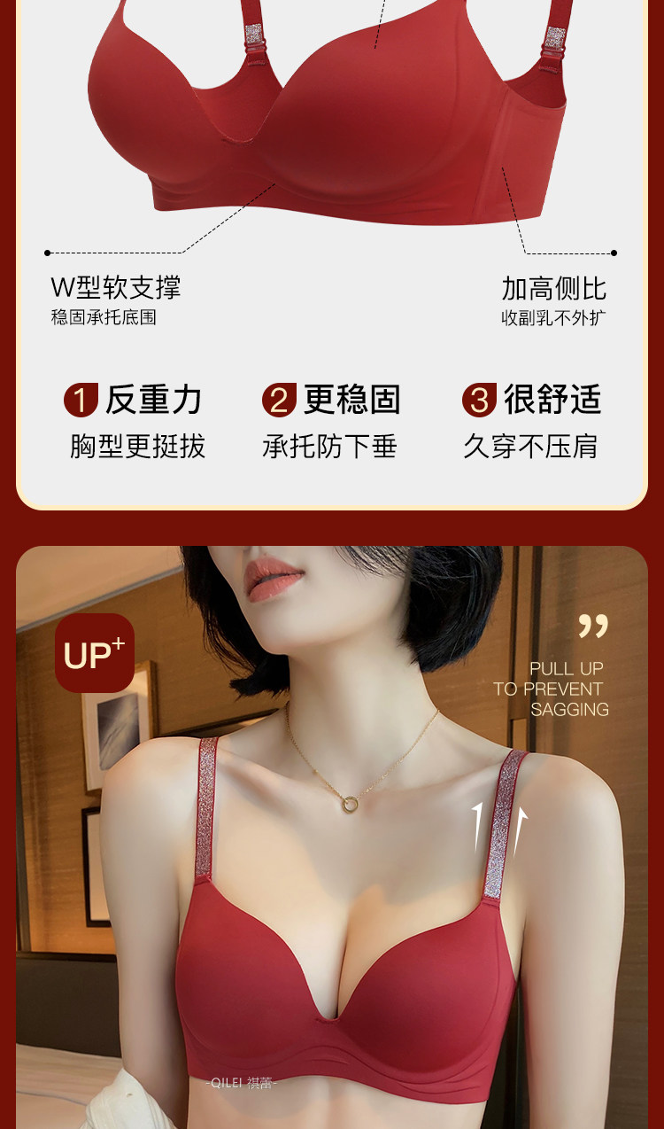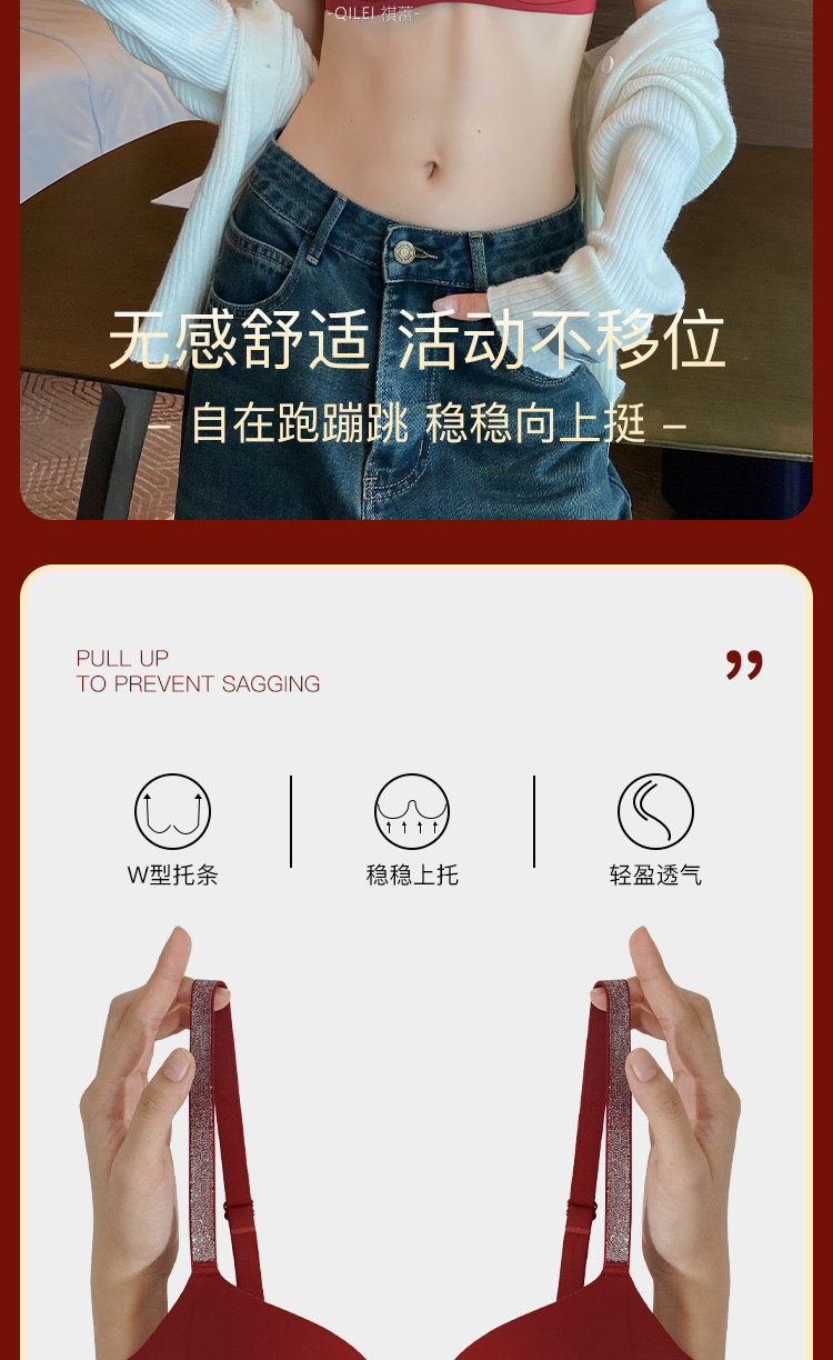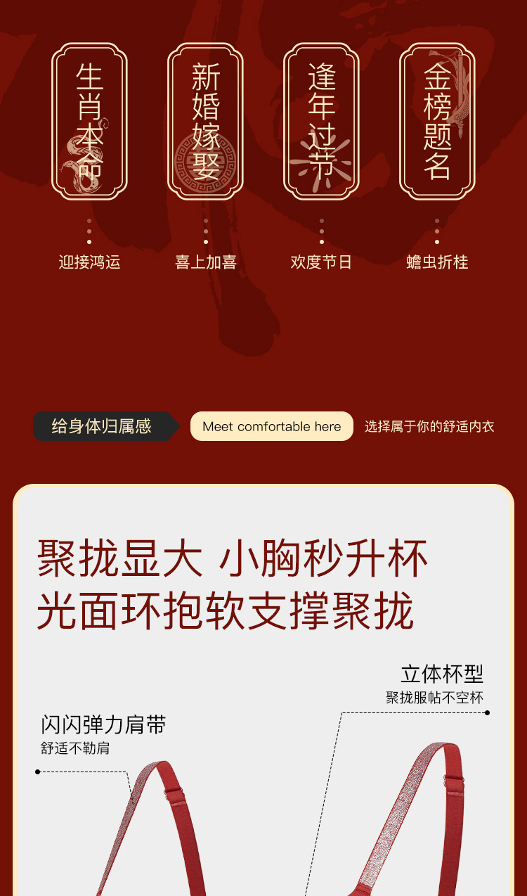 紅色內衣女聚攏小胸顯大無鋼圈收副乳無痕本命年文胸2025新款爆款
