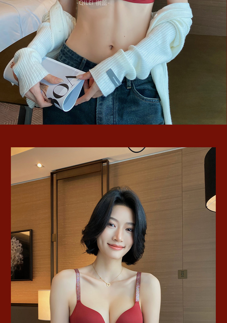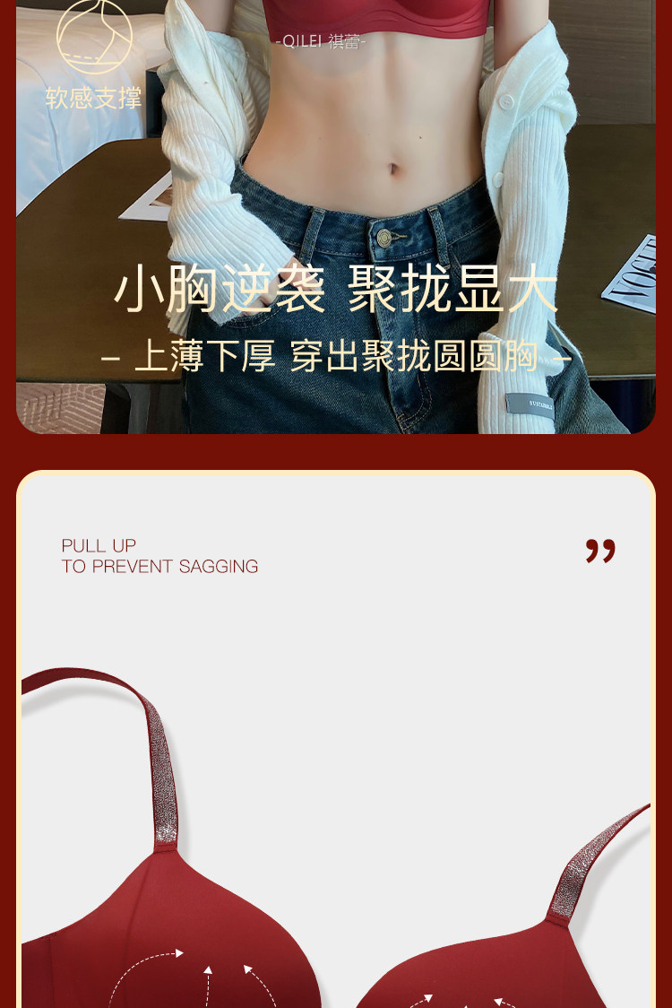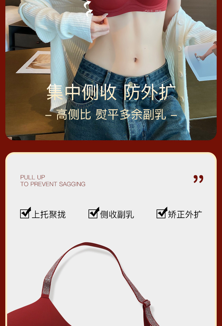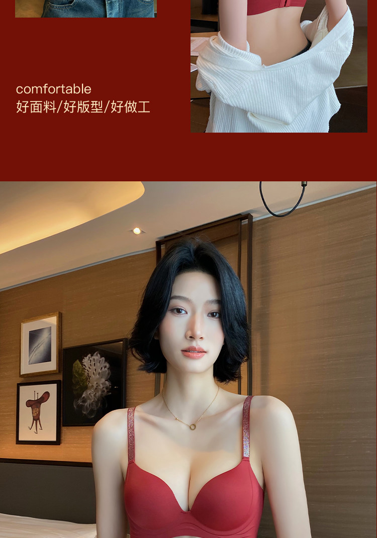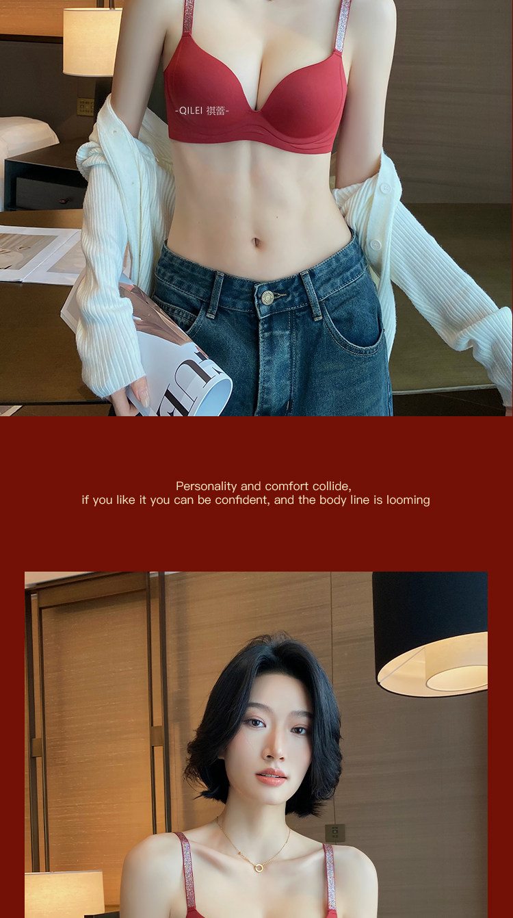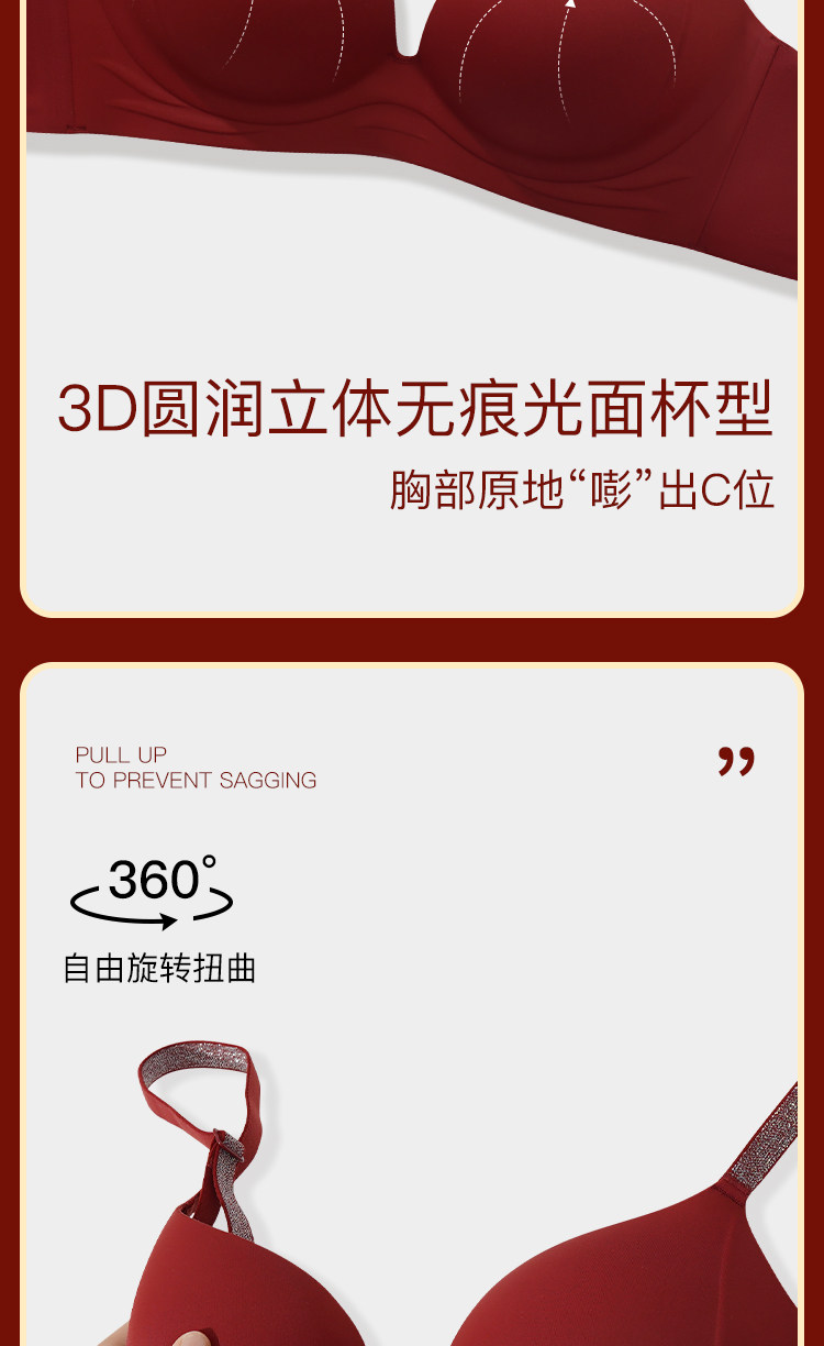紅色內衣女聚攏小胸顯大無鋼圈收副乳無痕本命年文胸2025新款爆款