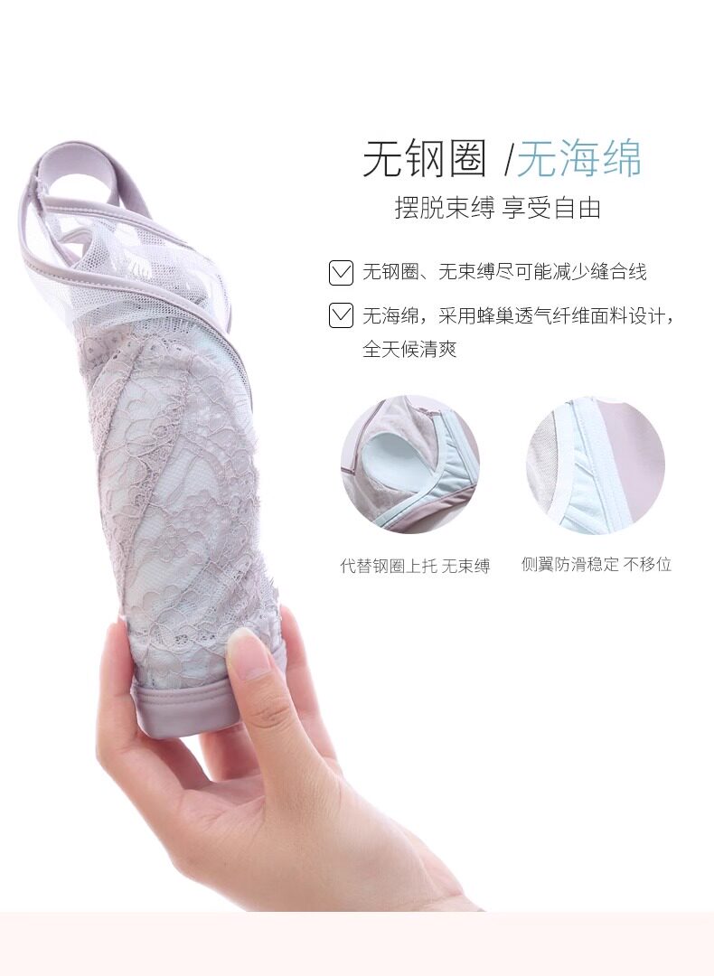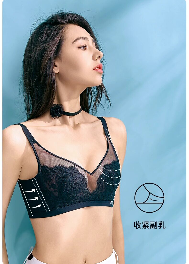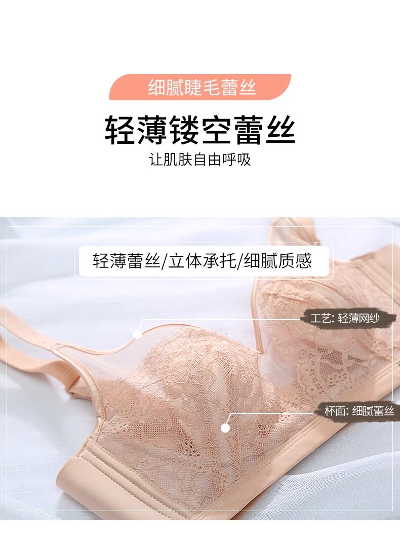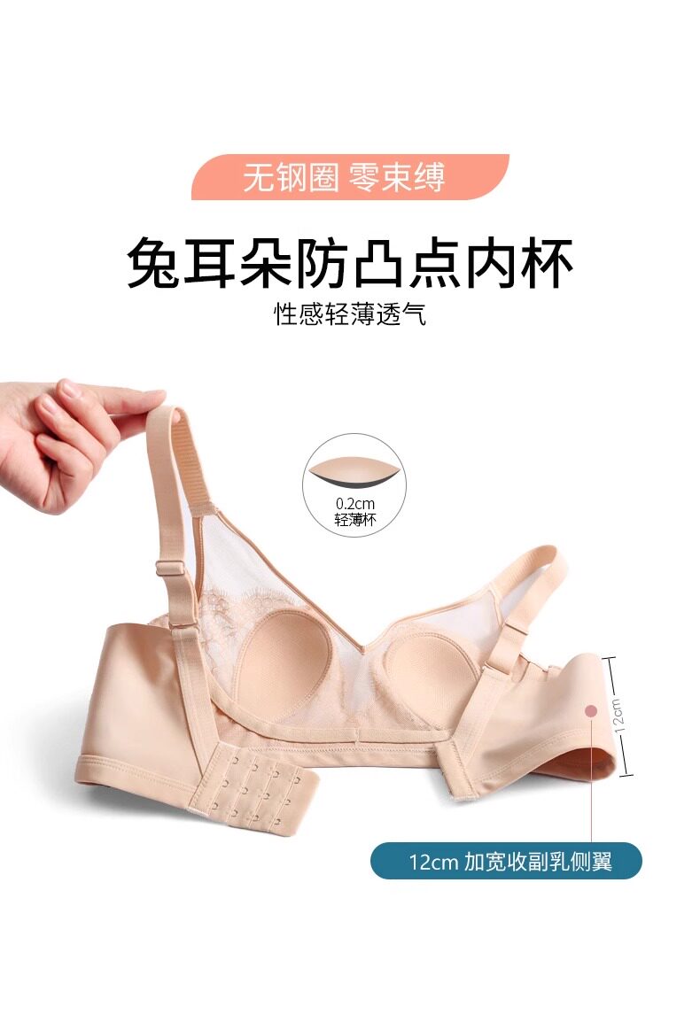 古今牡丹文胸罩無鋼圈大胸顯小美背聚攏透氣超薄蕾絲兔耳杯內衣女
