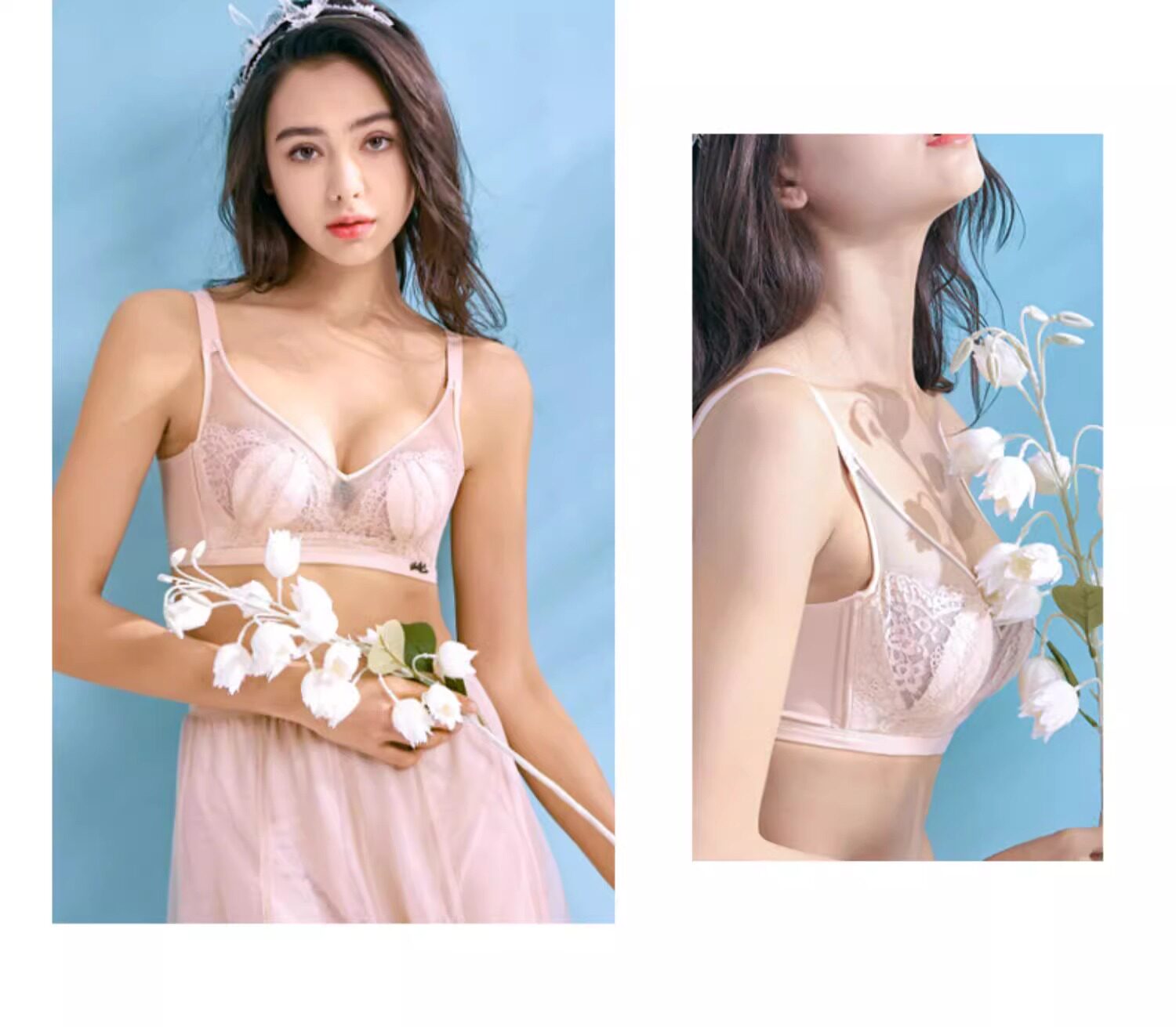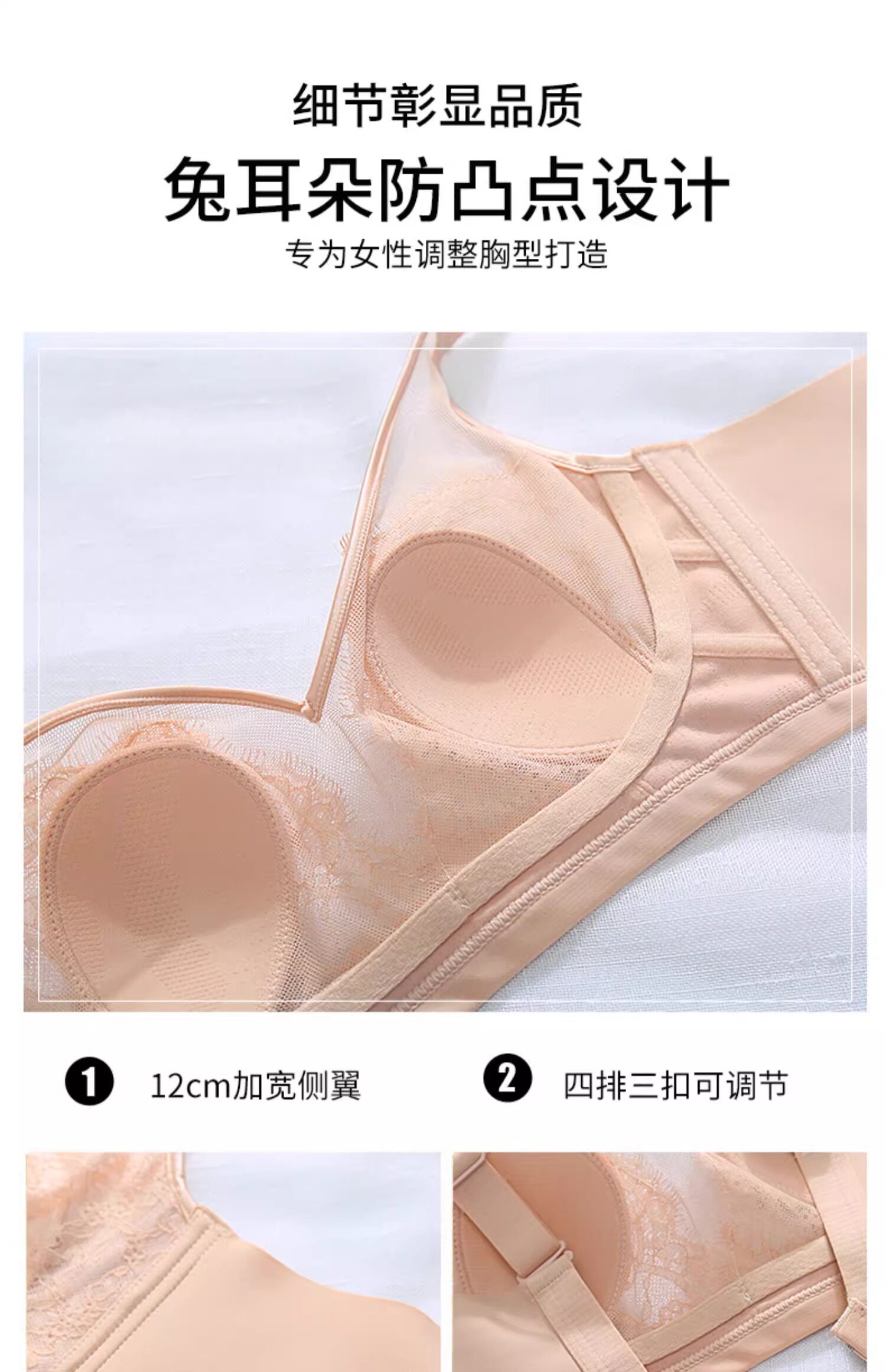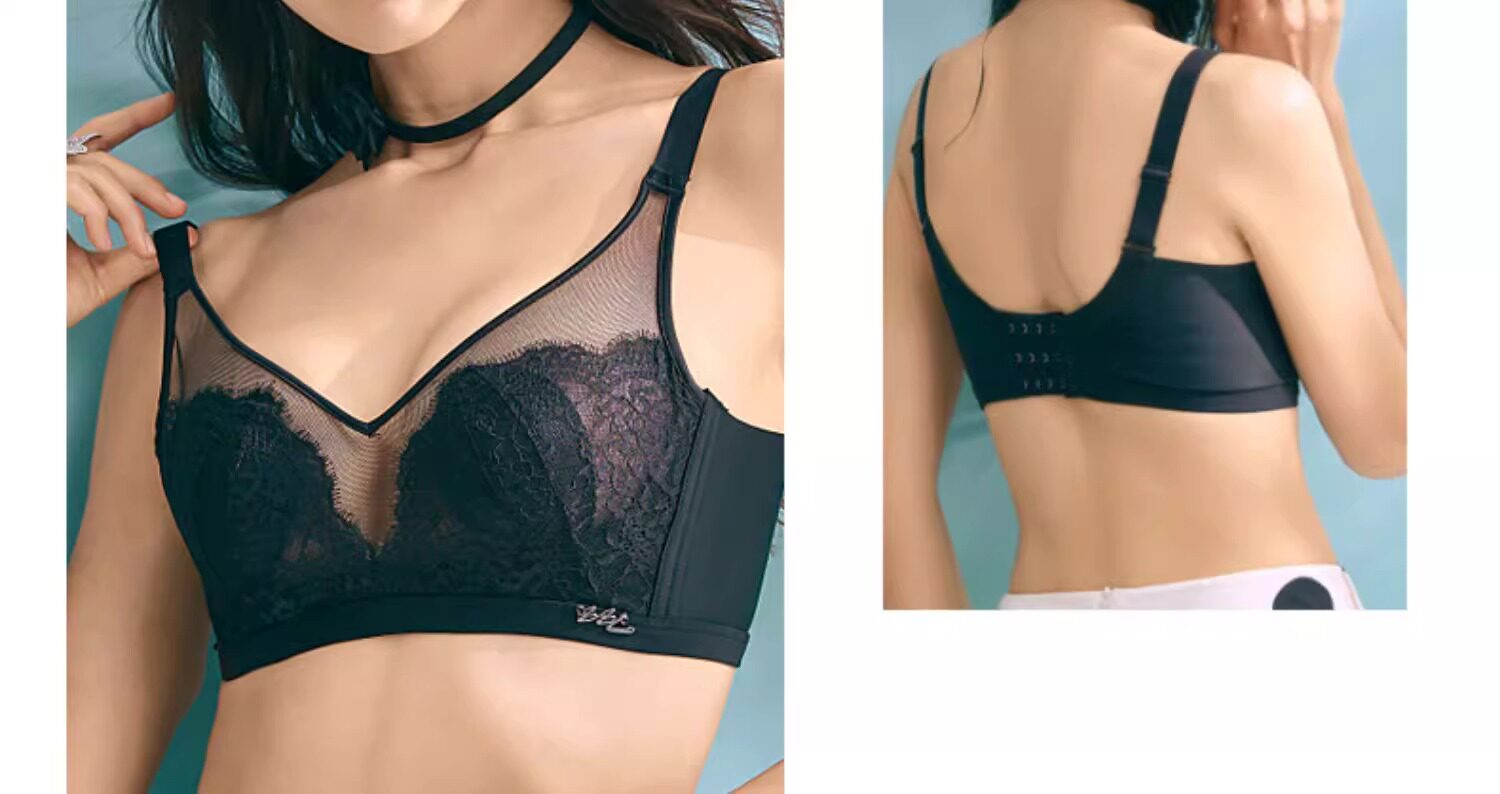 古今牡丹文胸罩無鋼圈大胸顯小美背聚攏透氣超薄蕾絲兔耳杯內衣女