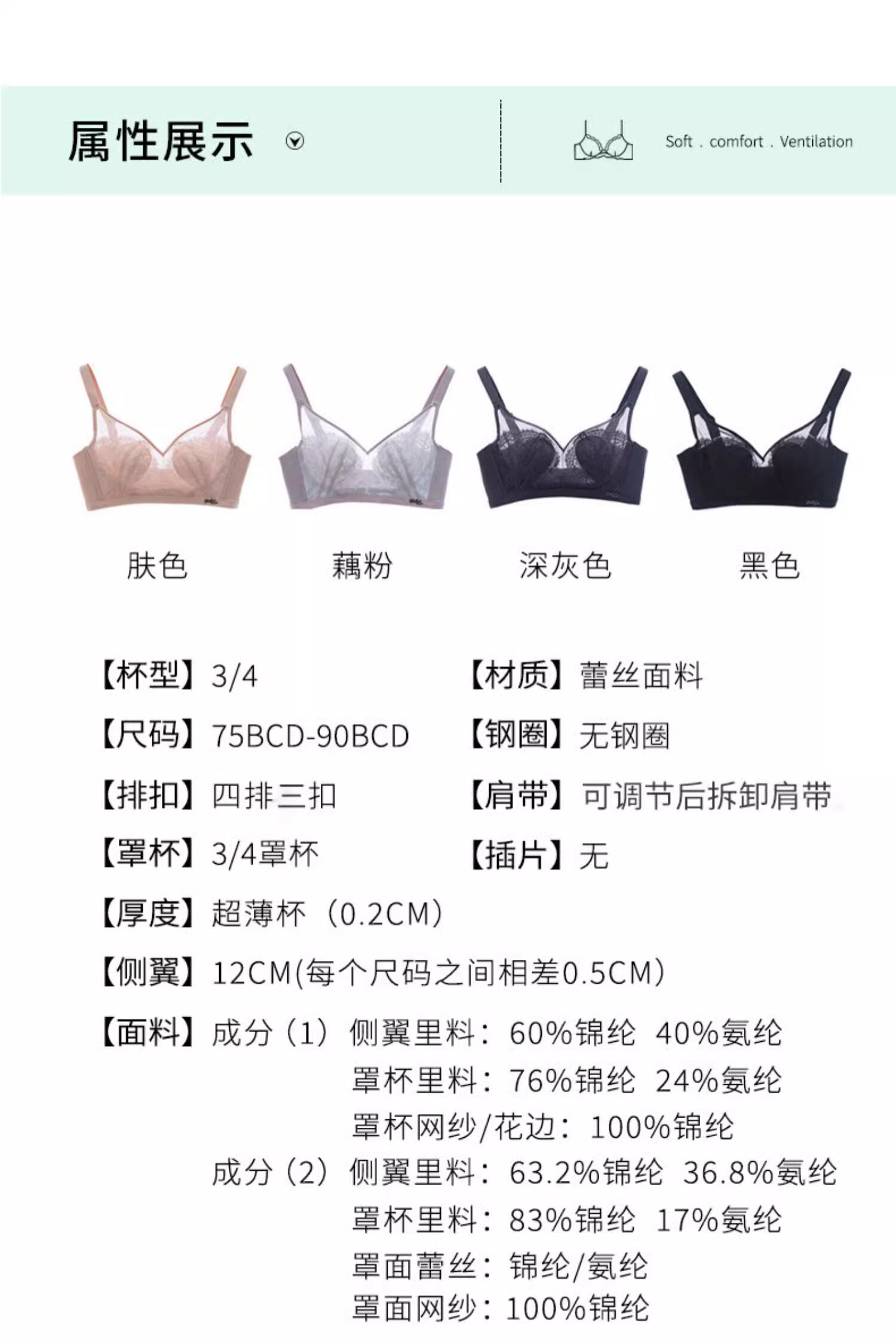 | 罩杯裡料成分含量 | 81%(含)-95%(含) |
