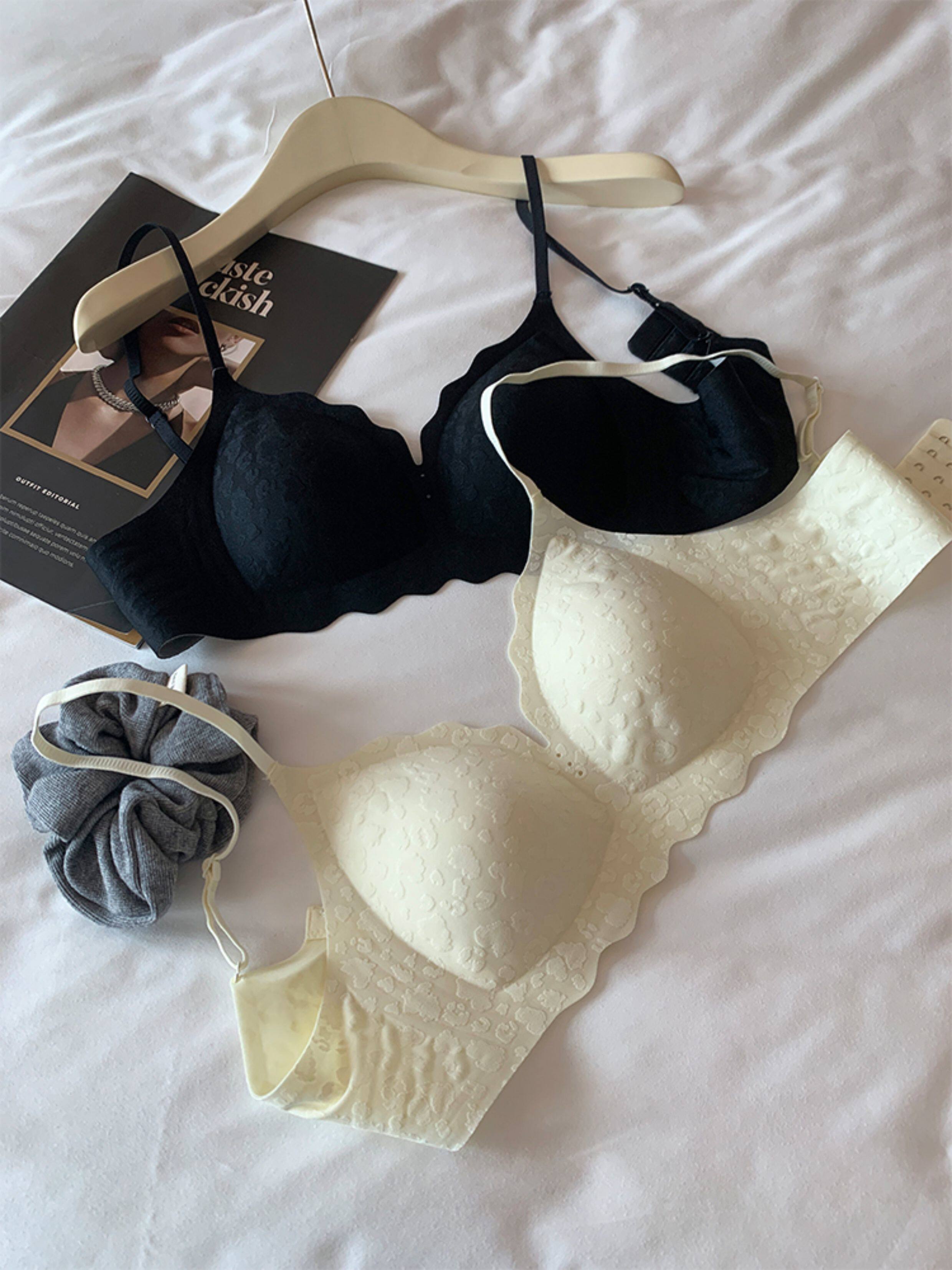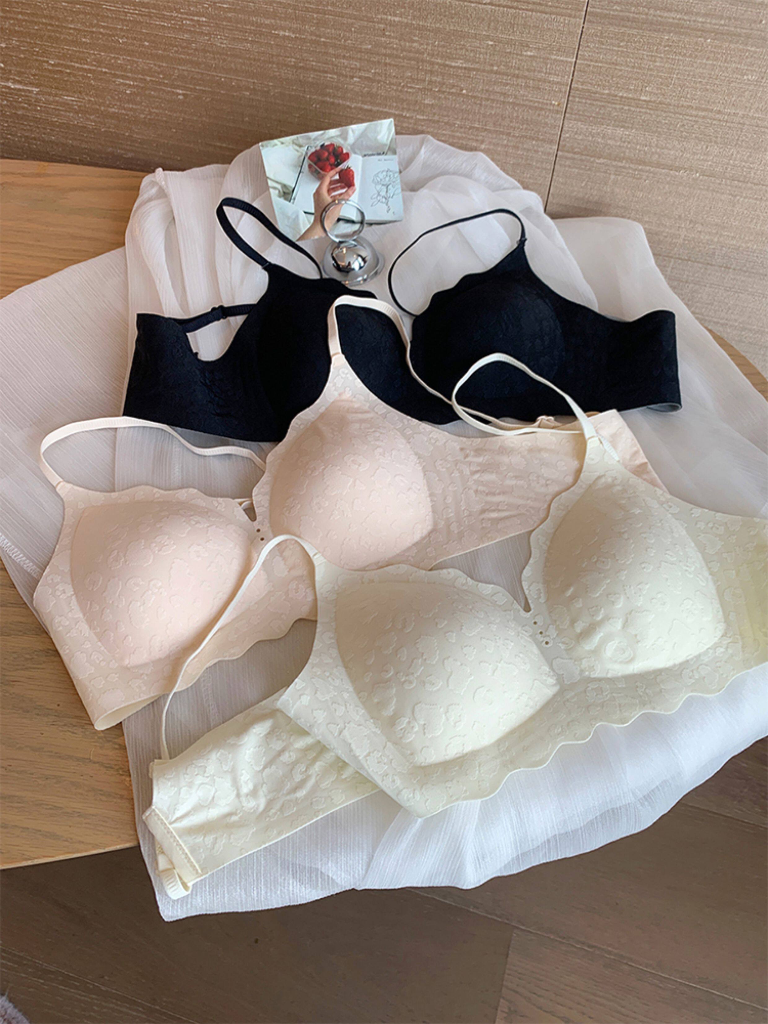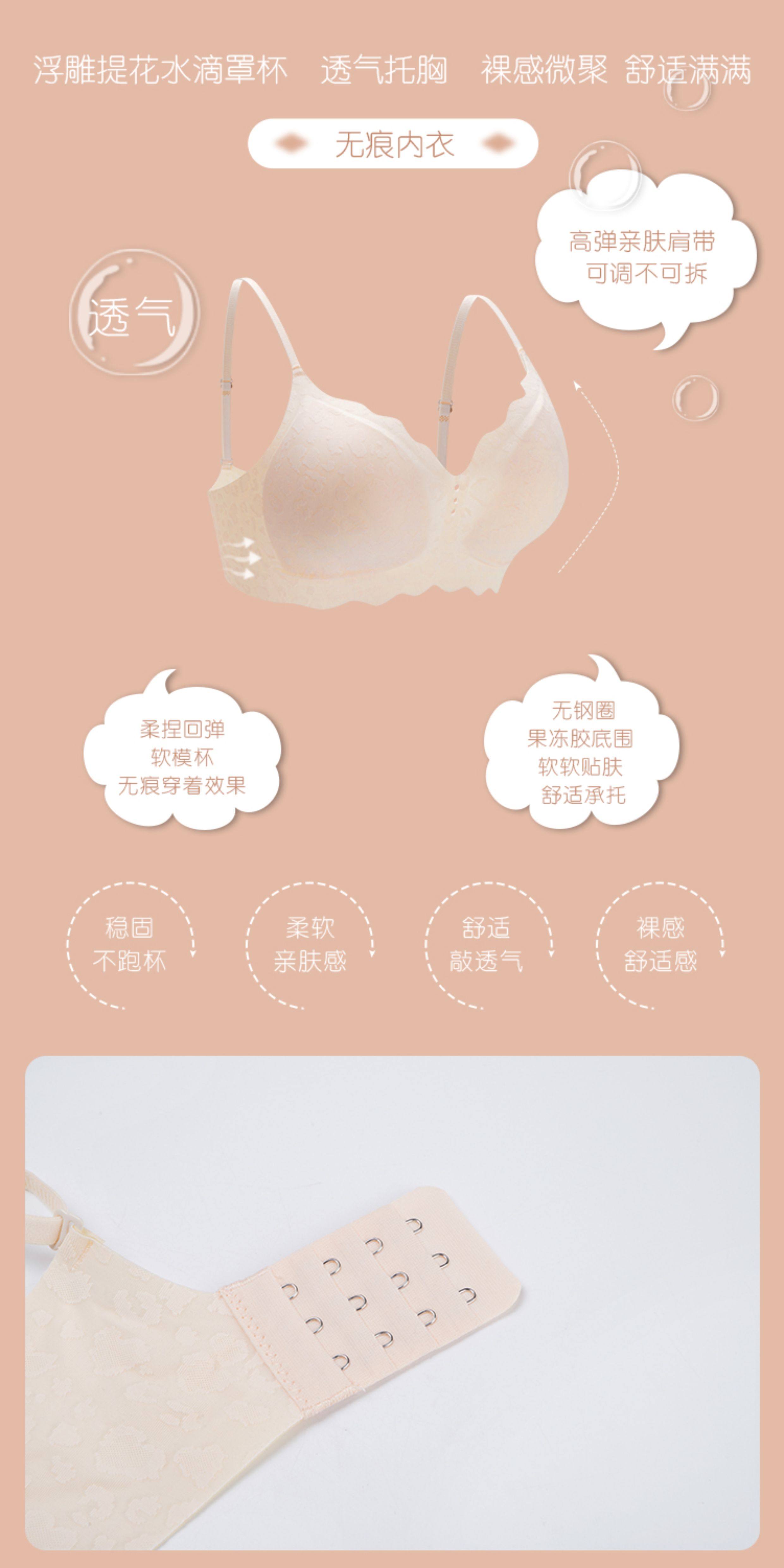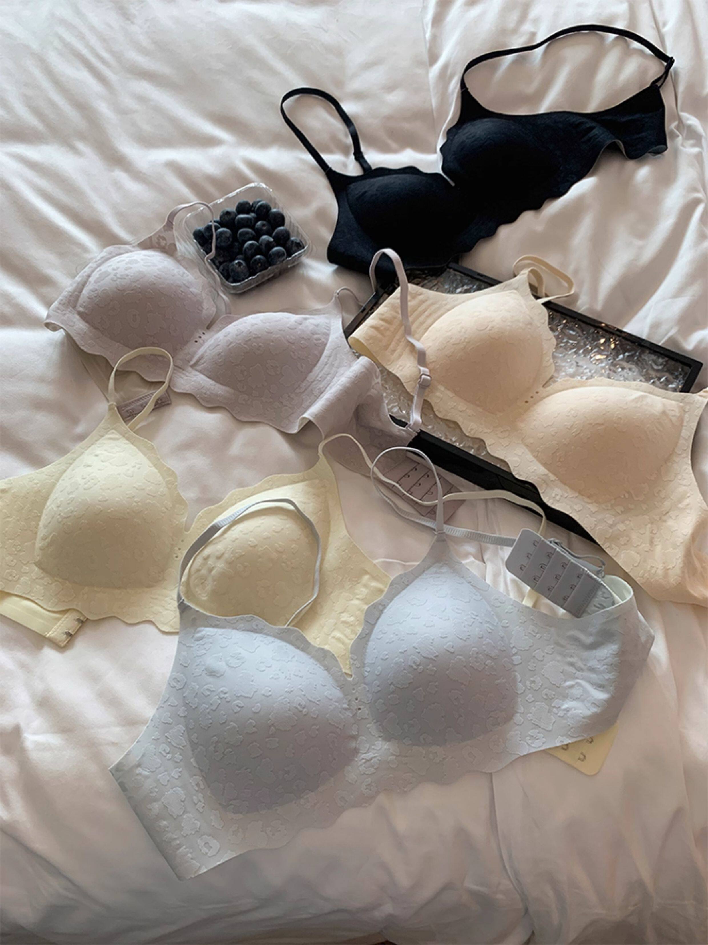 馨幫幫Bra 甜美肌理印花果凍條內衣女小胸聚攏提拉裸感透氣文胸罩