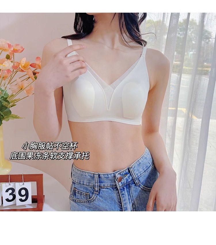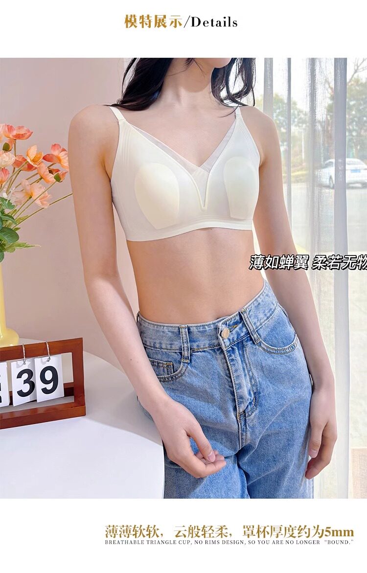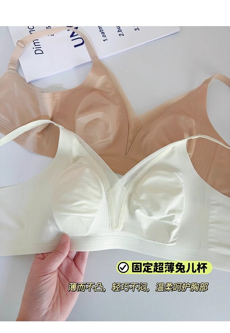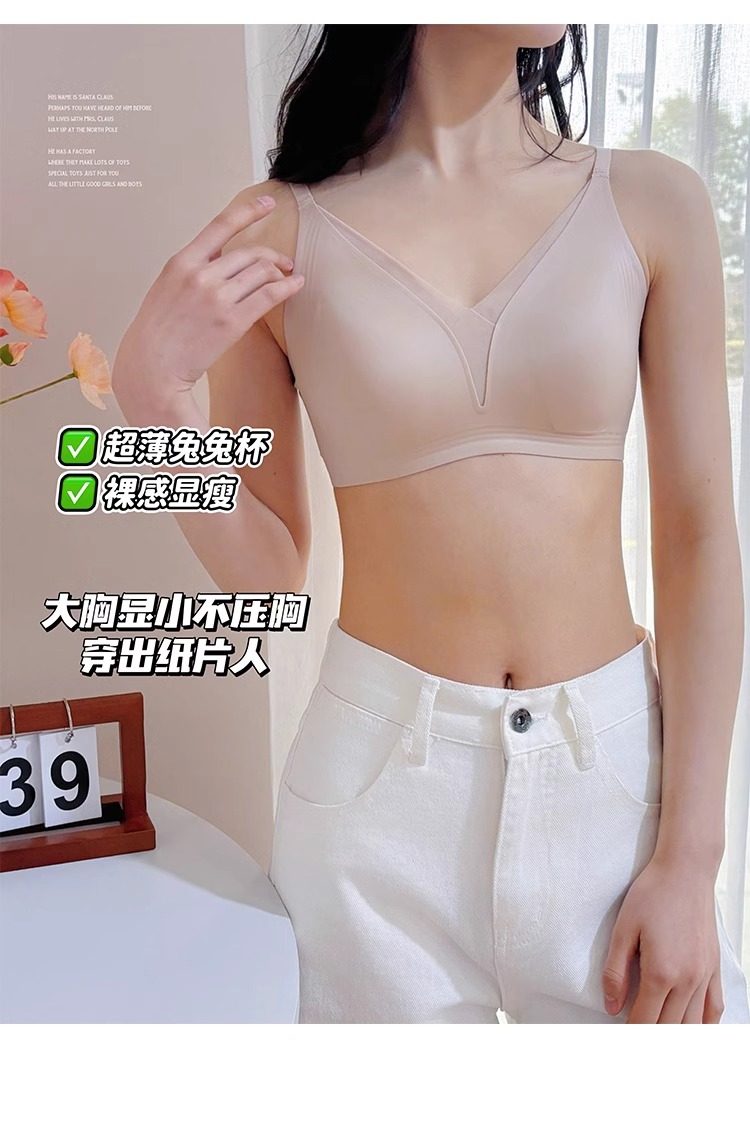 超薄款法式蕾絲兔耳朵內衣女大胸顯小顯瘦無鋼圈三角杯防下垂文胸