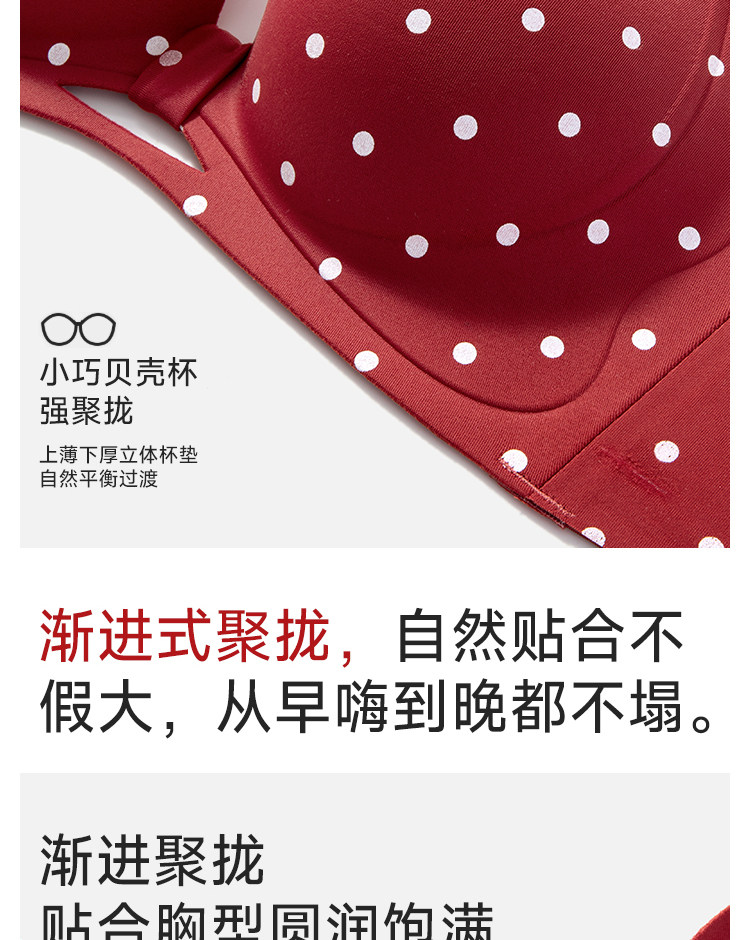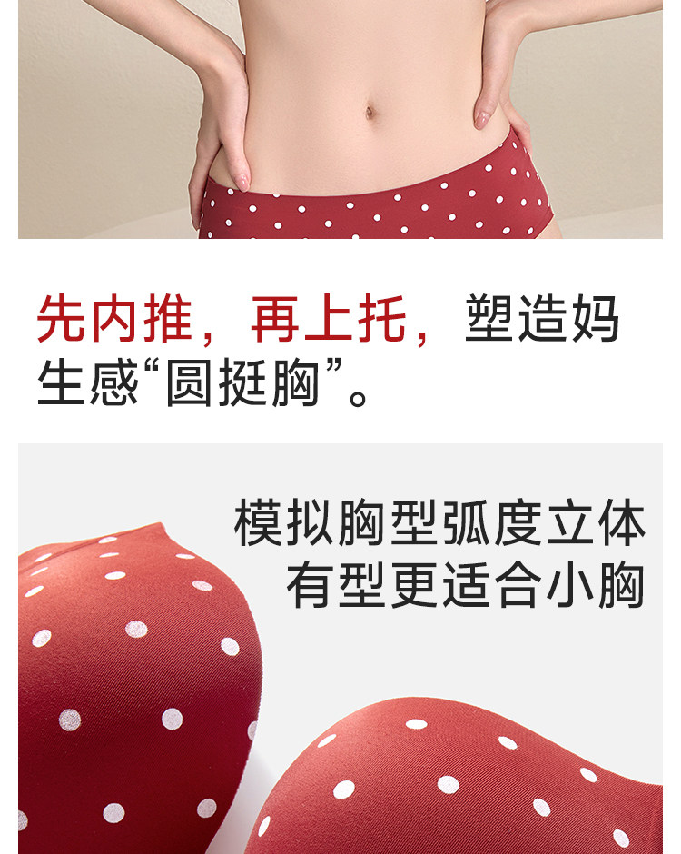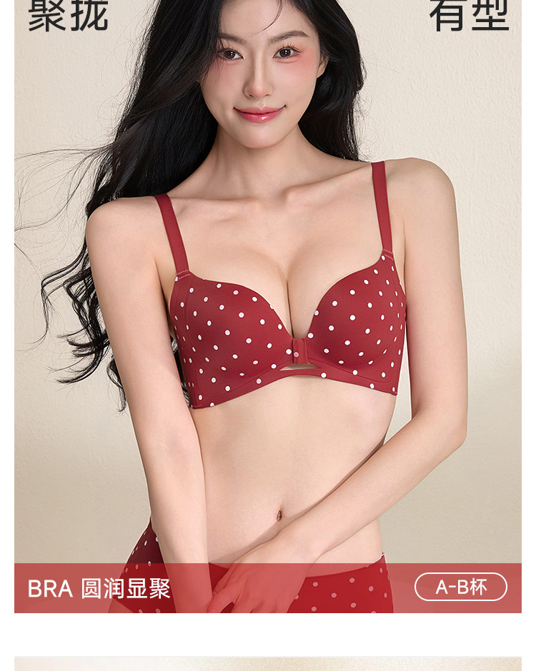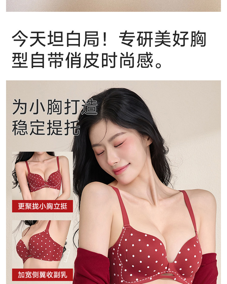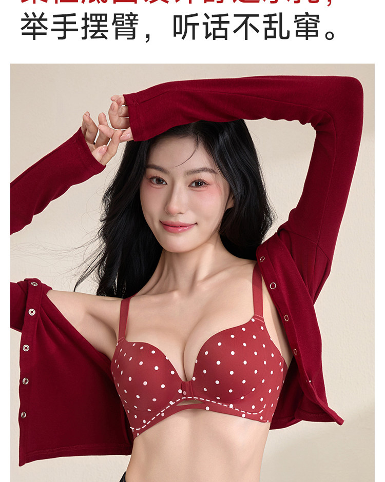 內衣女聚攏收副乳防下垂小胸顯大本命年無鋼圈紅色波點文胸罩套裝