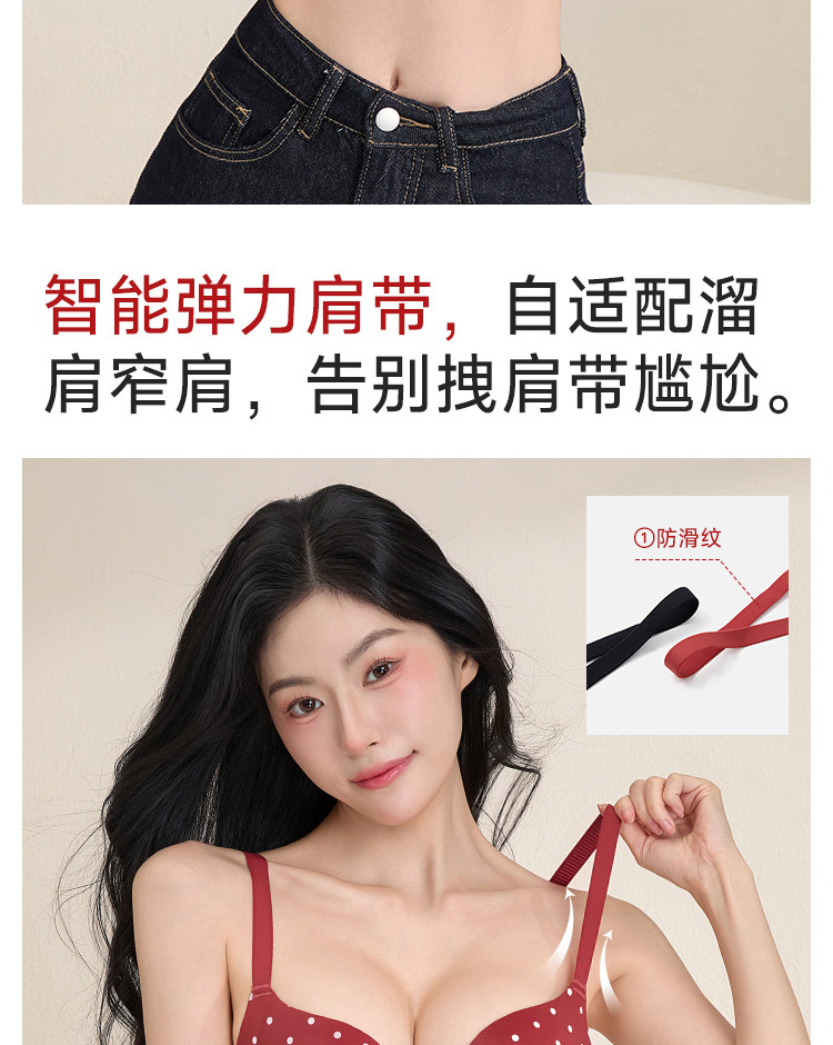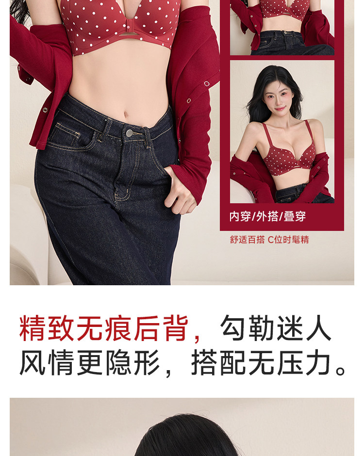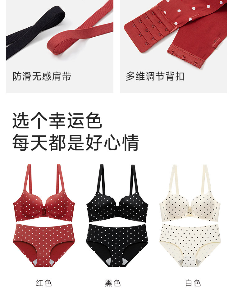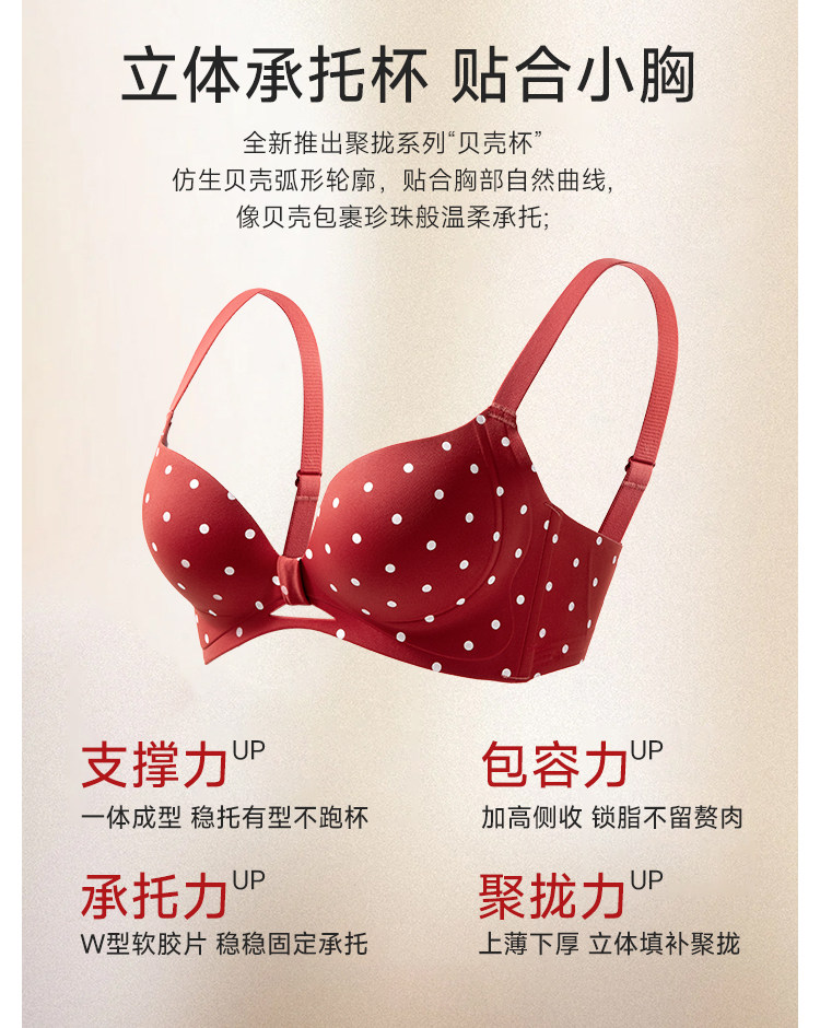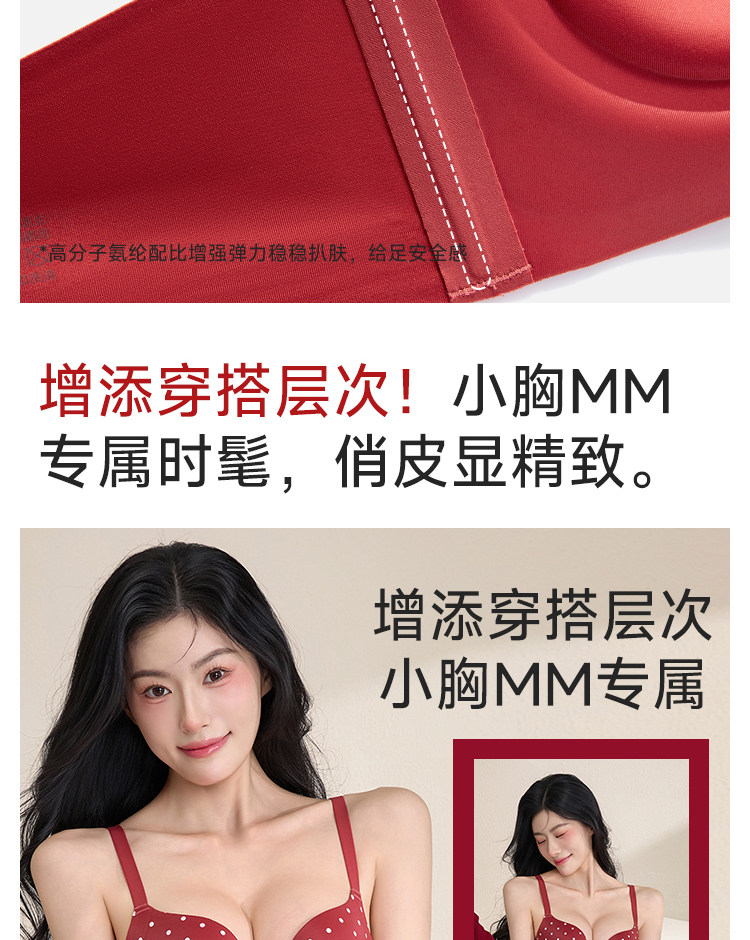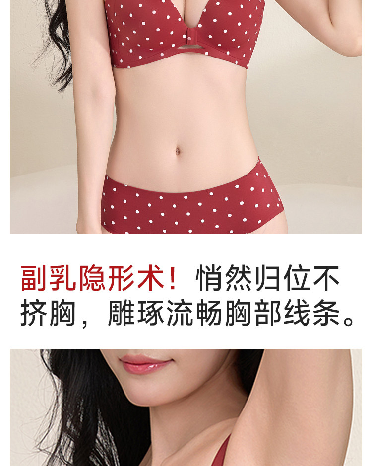 內衣女聚攏收副乳防下垂小胸顯大本命年無鋼圈紅色波點文胸罩套裝