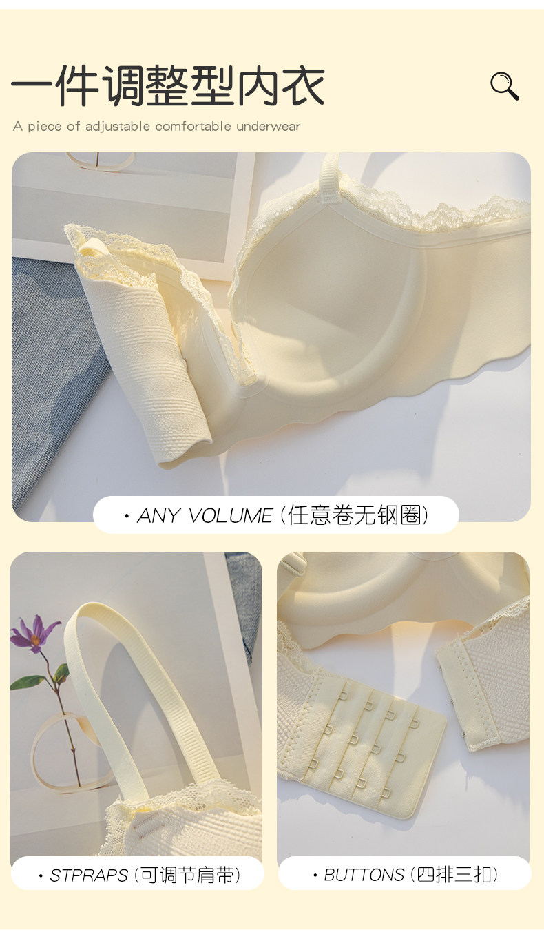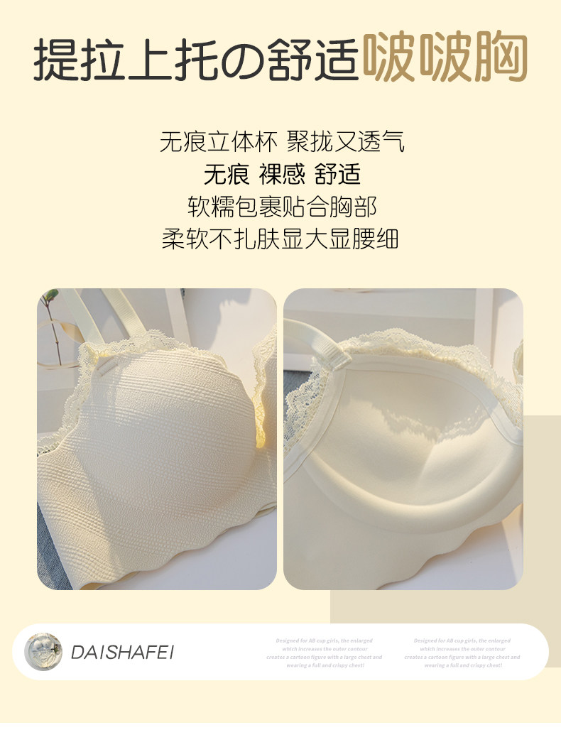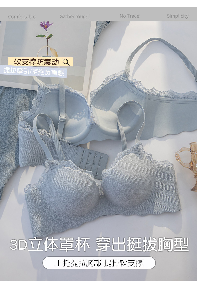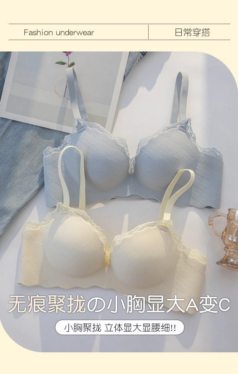 蕾絲內衣女小胸聚攏顯大無鋼圈上托防下垂外擴漫畫胸型少女文胸罩