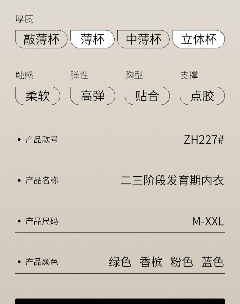| 文胸風格 | 少女 |