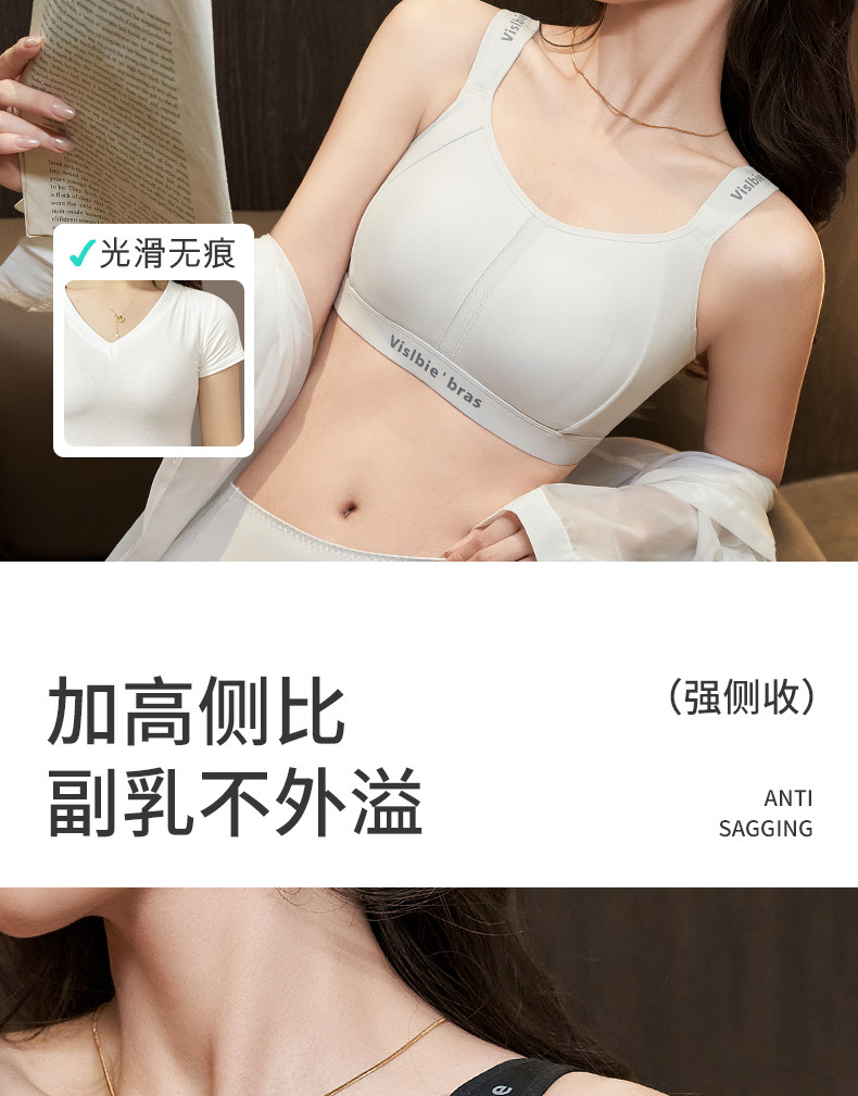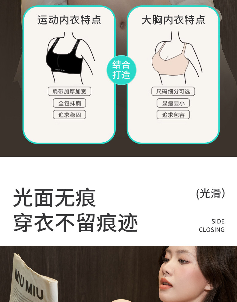 舒適果運動內衣女防震防下垂大胸顯小無痕塑形提拉薄款本命年文胸