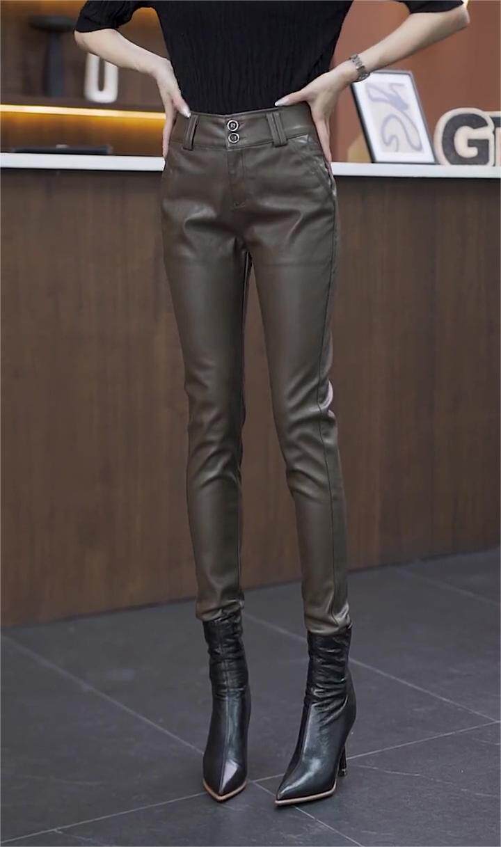 皮褲女秋冬加絨2025春秋新款小個子韓版緊身PU皮小腳直筒哈倫褲子