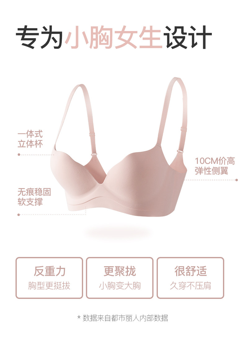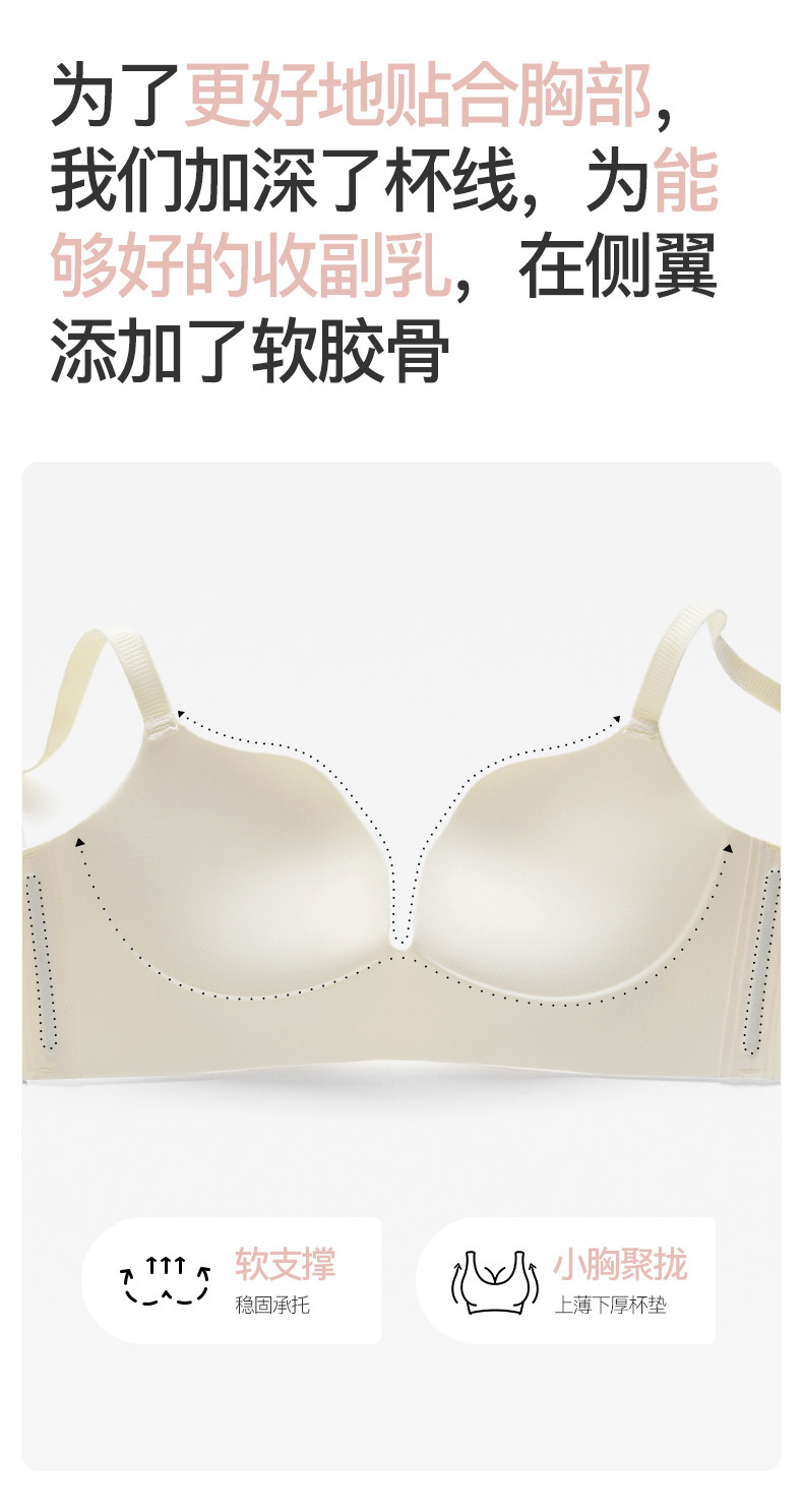 都市麗人夏季薄款內衣女小胸聚攏顯大無痕隱形收副乳防下垂文胸罩