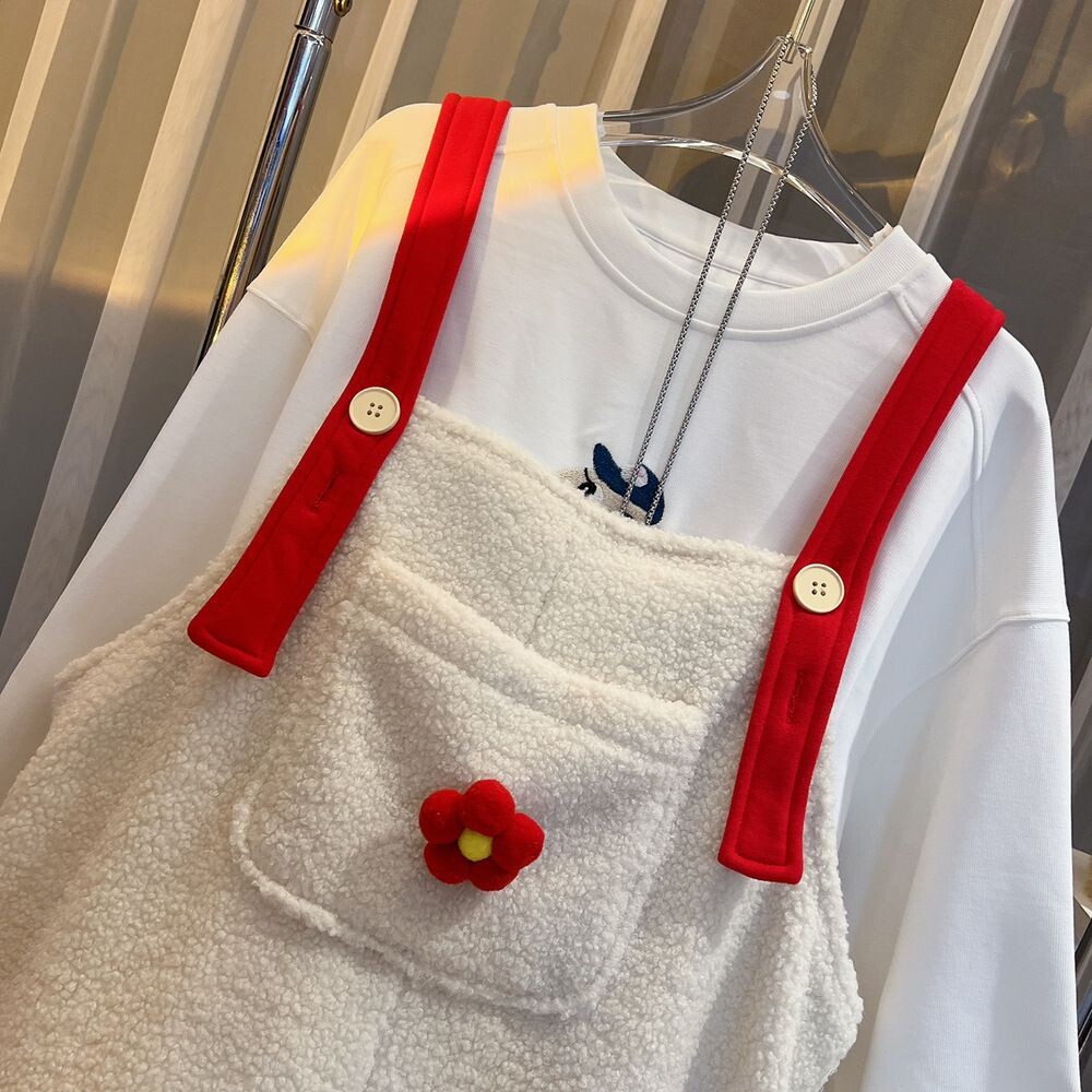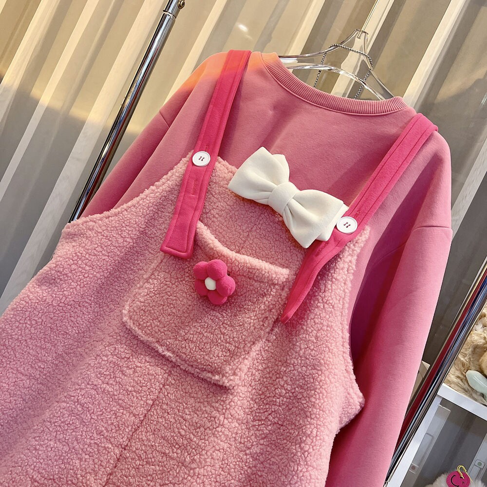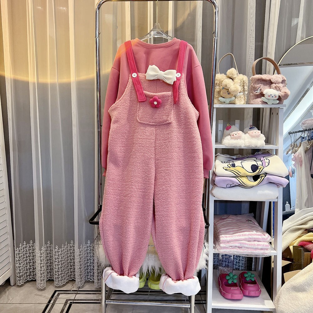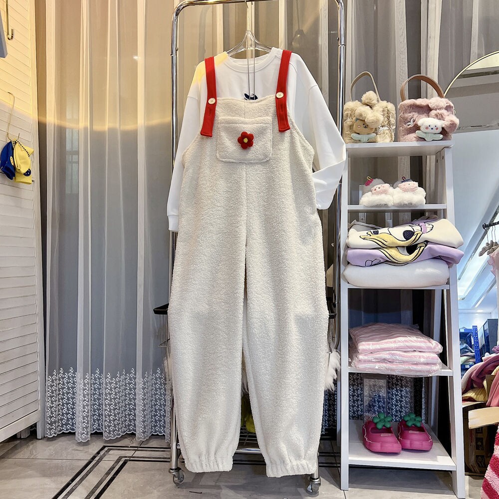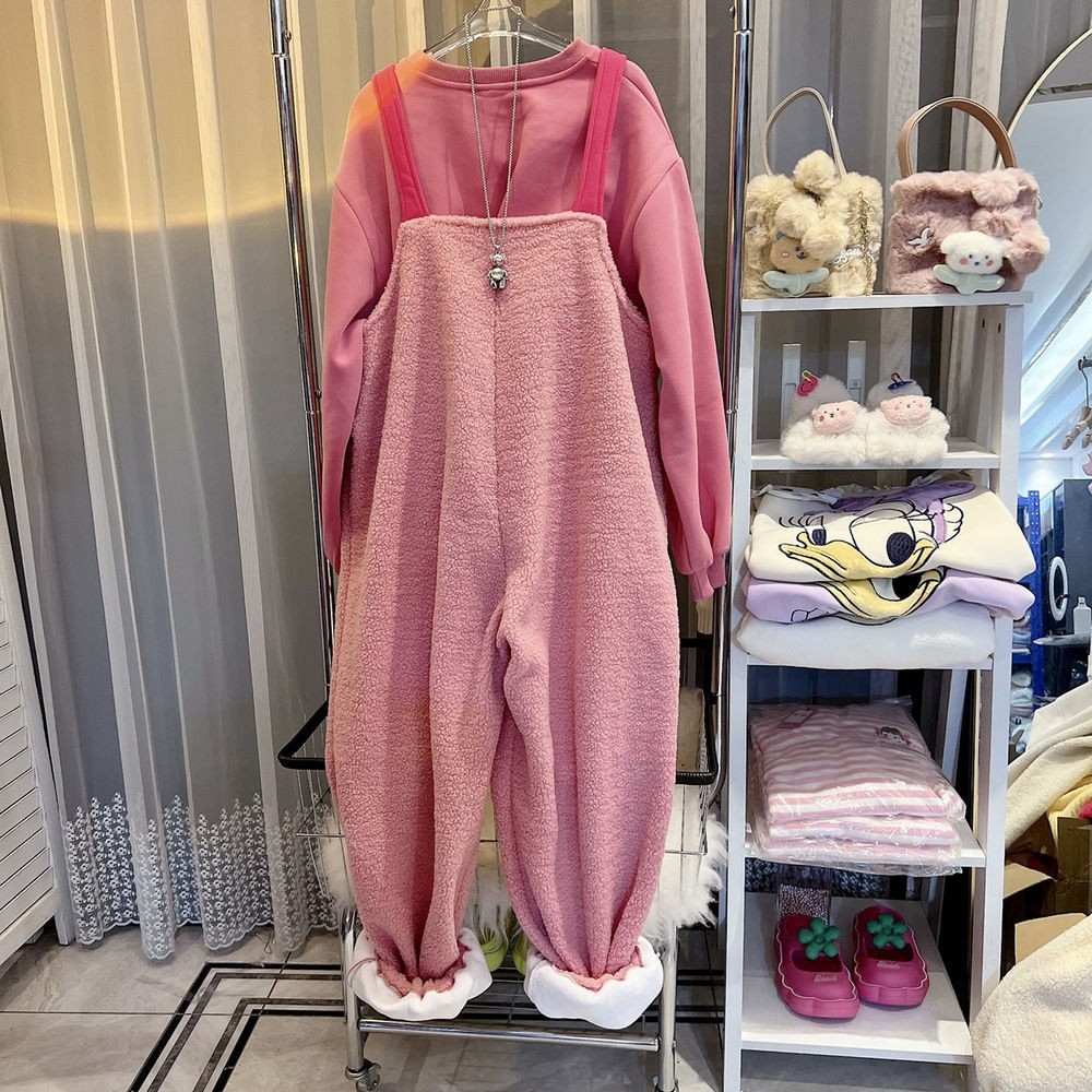 超大碼2-300斤胖mm新款韓版羊羔毛絨連體褲女百搭洋氣加絨背帶褲