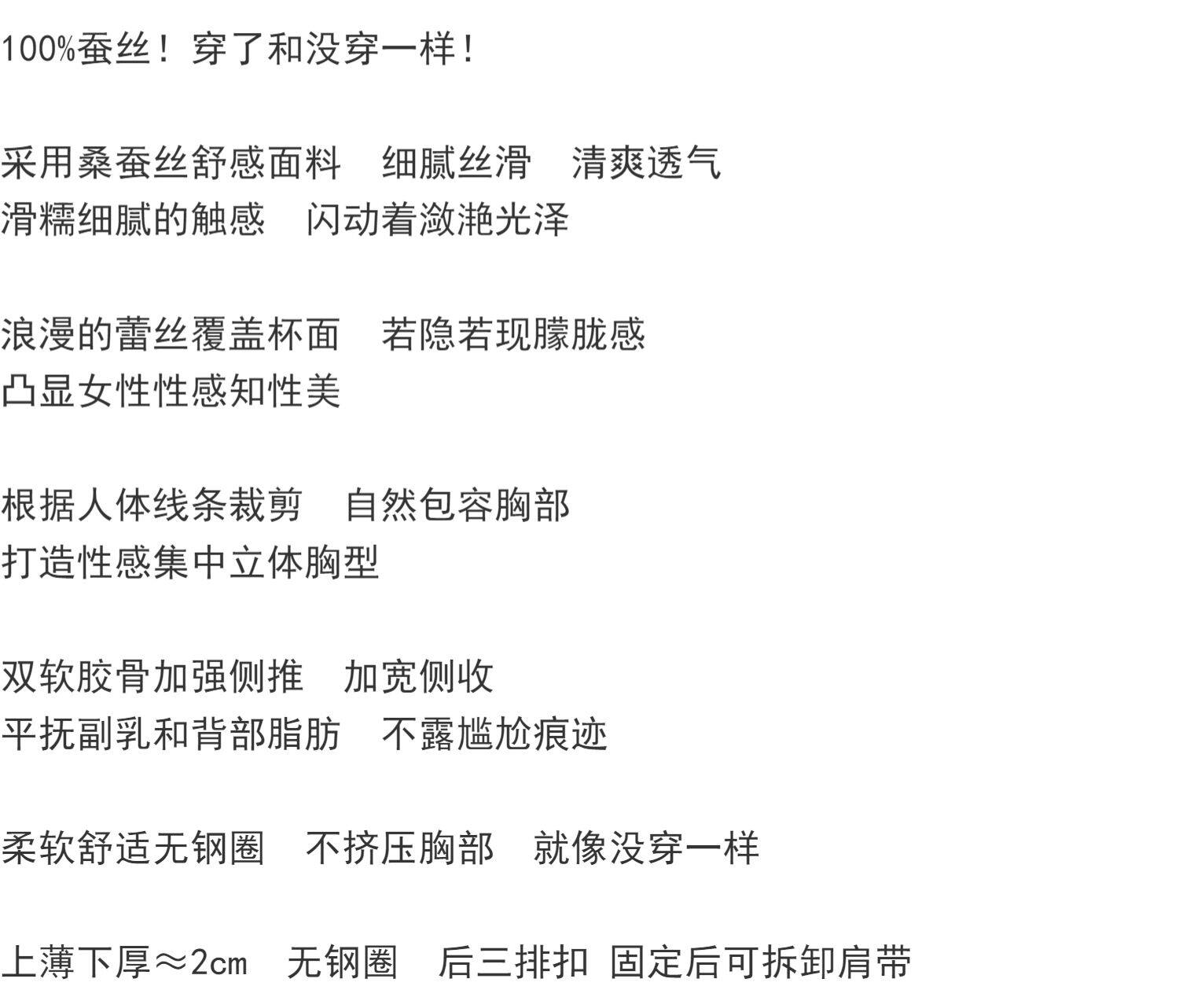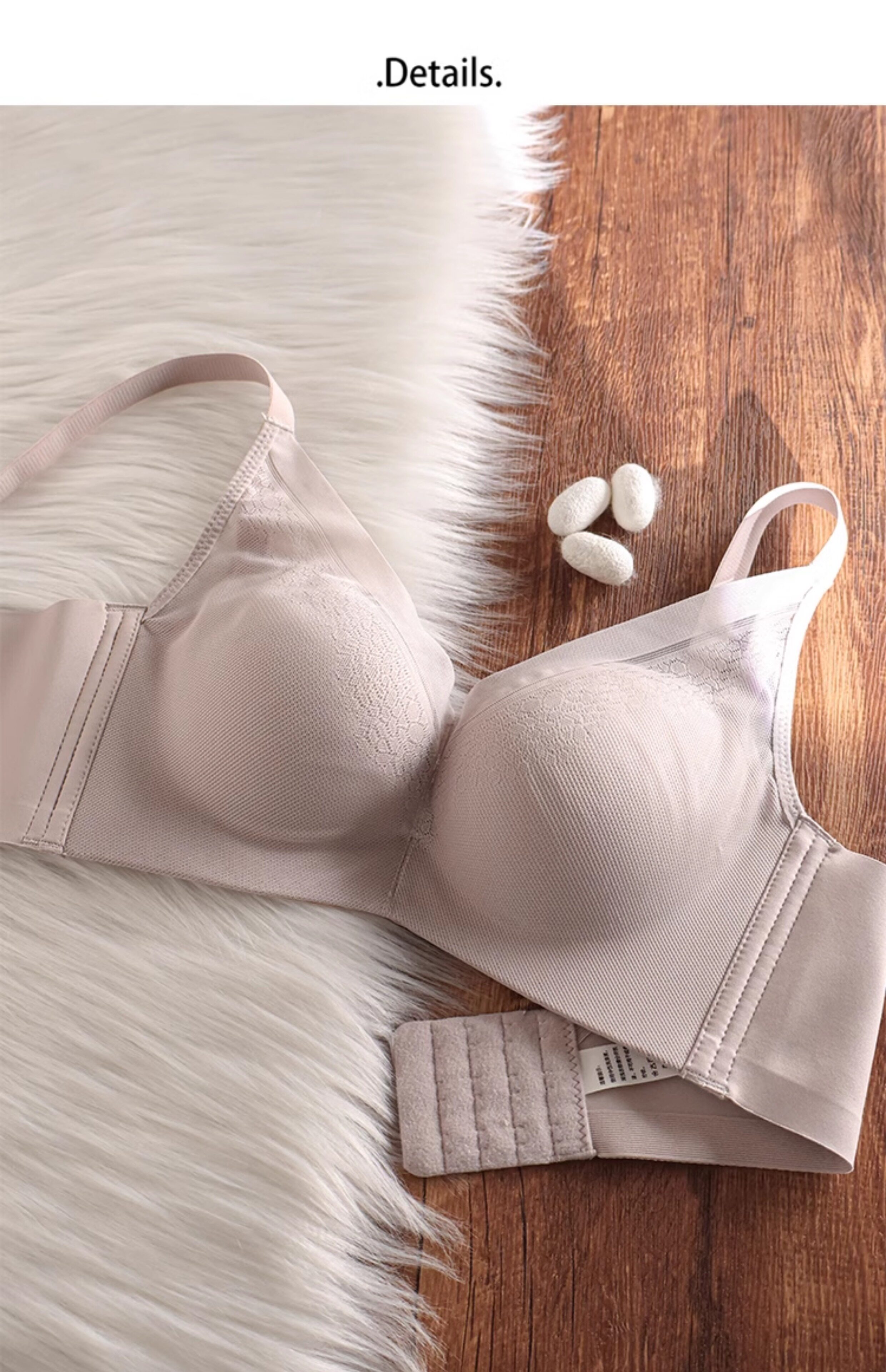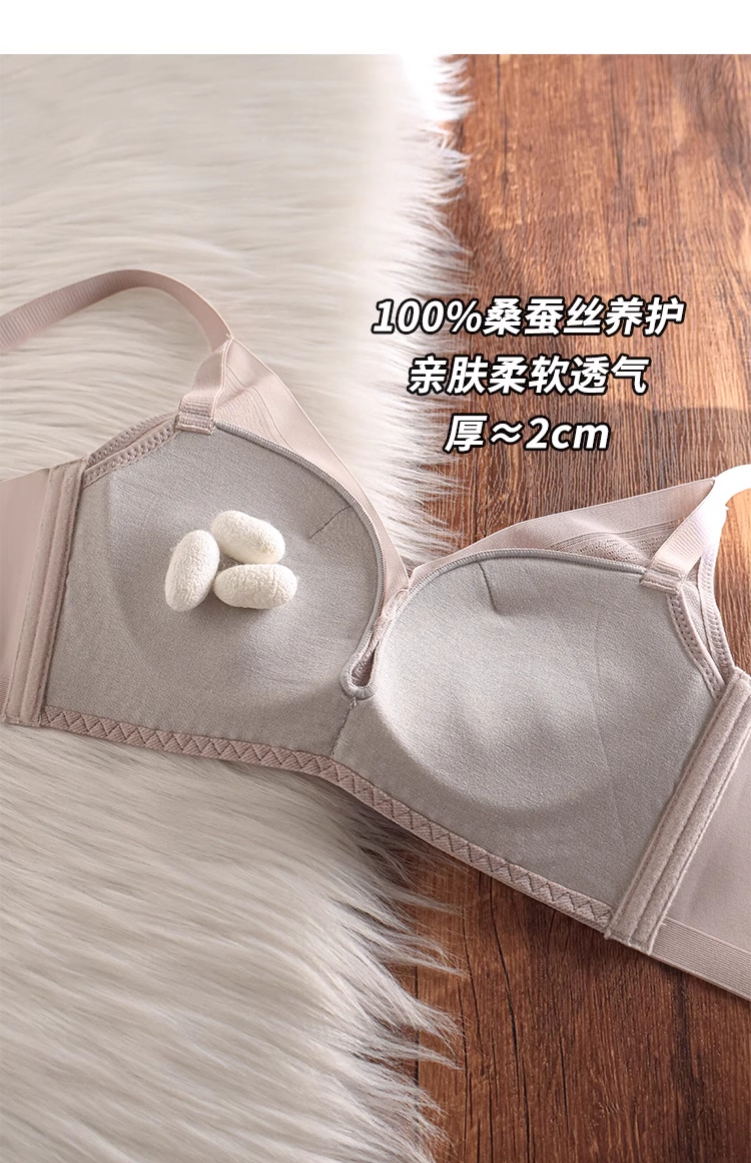 100%桑蠶絲小胸聚攏顯大無痕內衣女收副乳防下垂調整型無鋼圈文胸