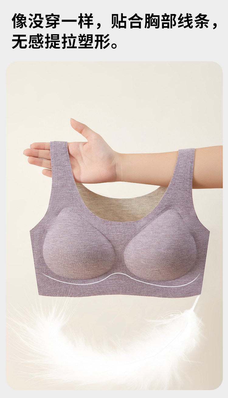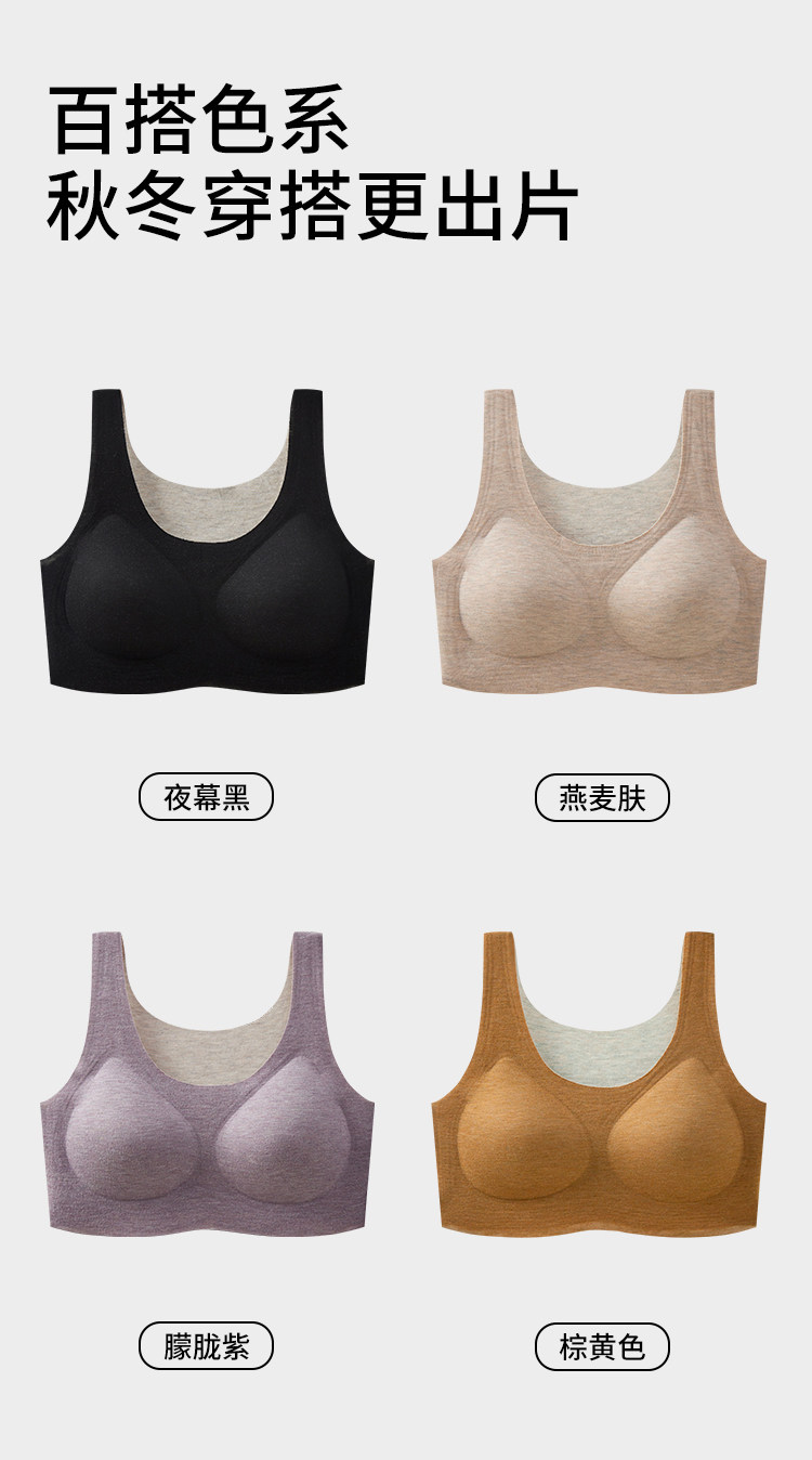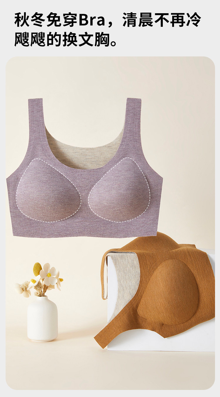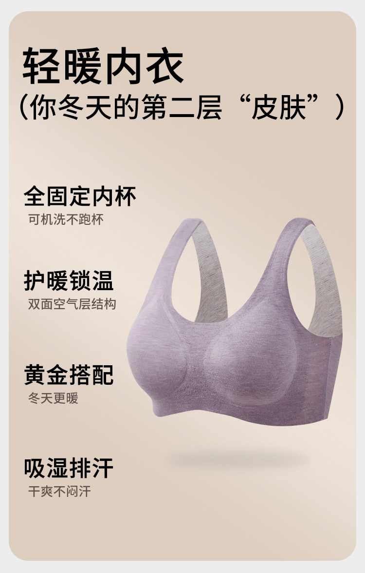 德絨保暖內衣女無鋼圈固定杯一體不跑杯秋冬季磨毛無痕大碼文胸罩