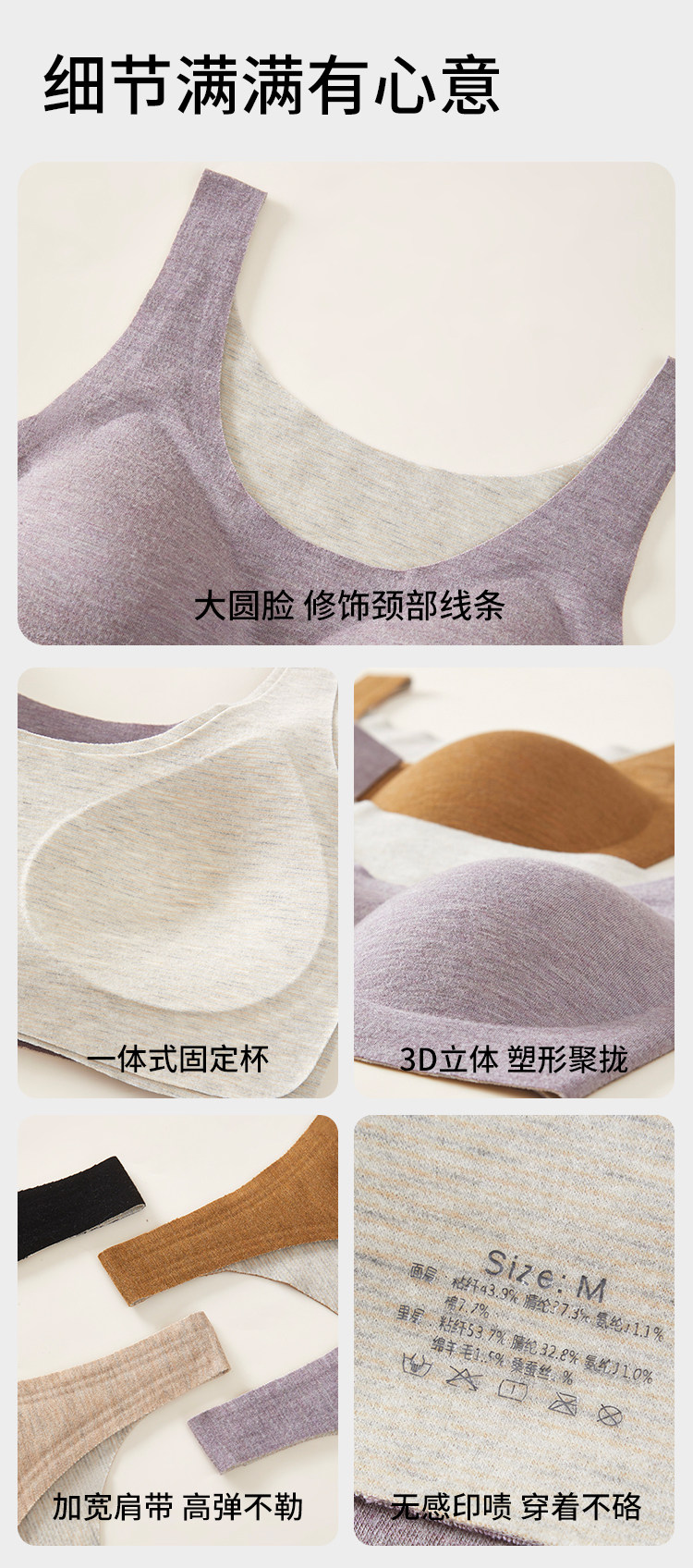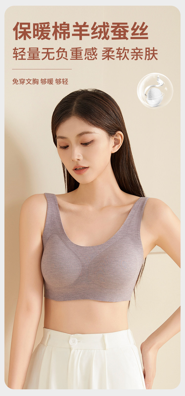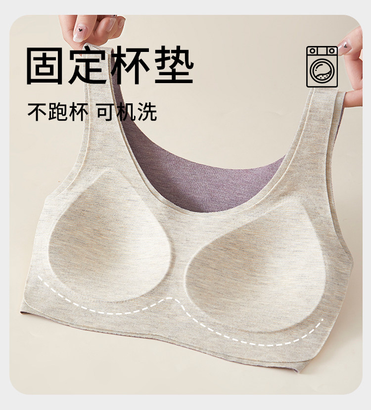 德絨保暖內衣女無鋼圈固定杯一體不跑杯秋冬季磨毛無痕大碼文胸罩