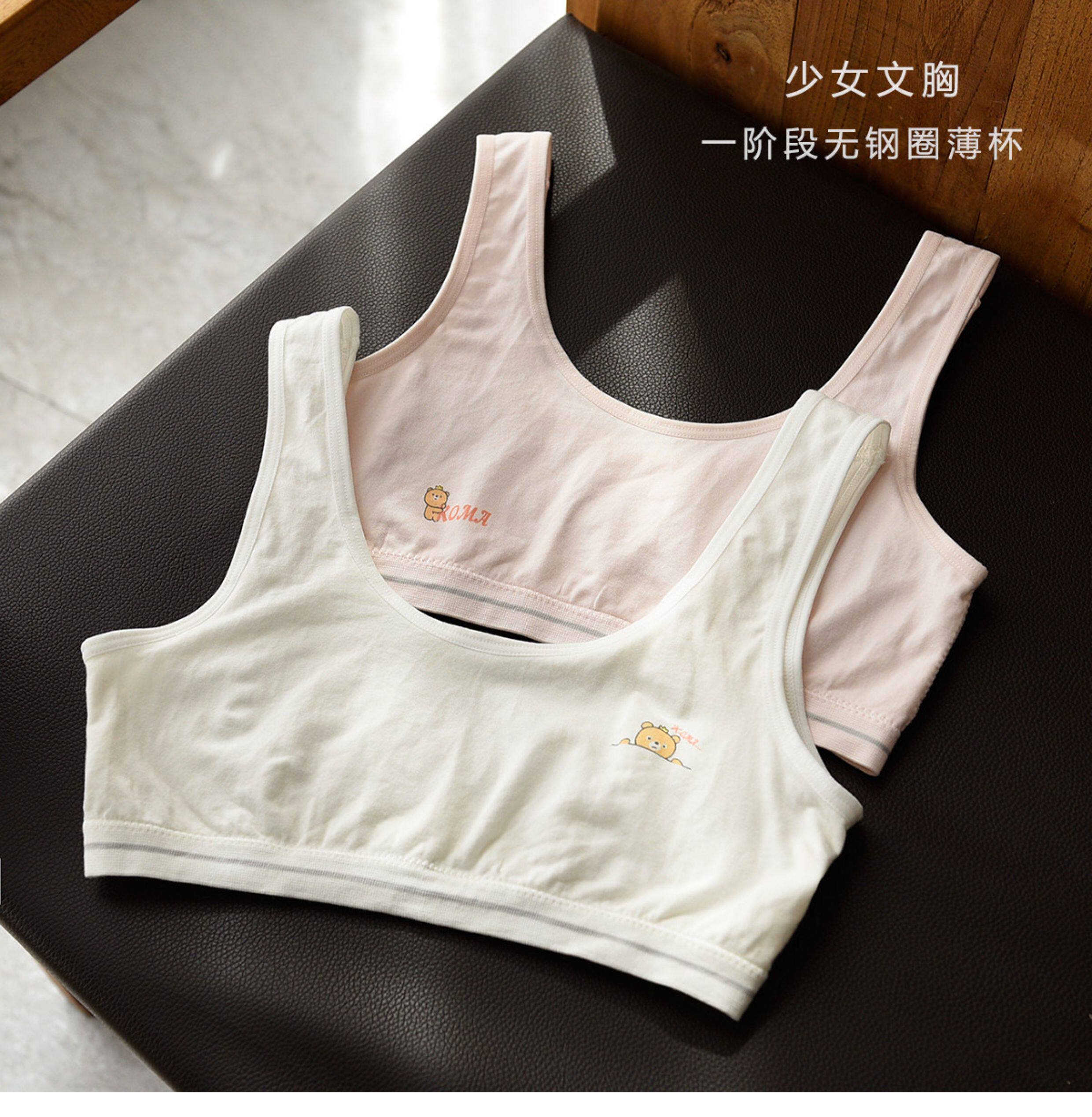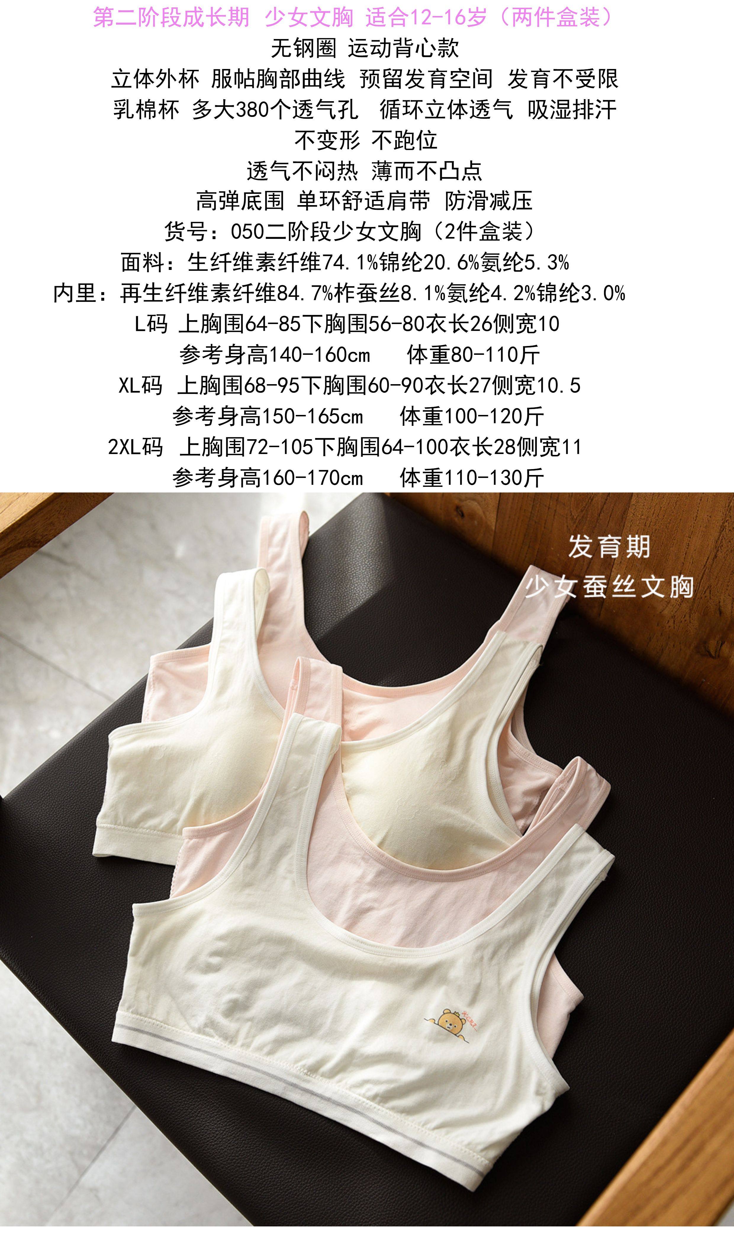 會員拍 兩件裝發育期少女蠶絲文胸一階段無鋼圈薄二階段學生內衣k