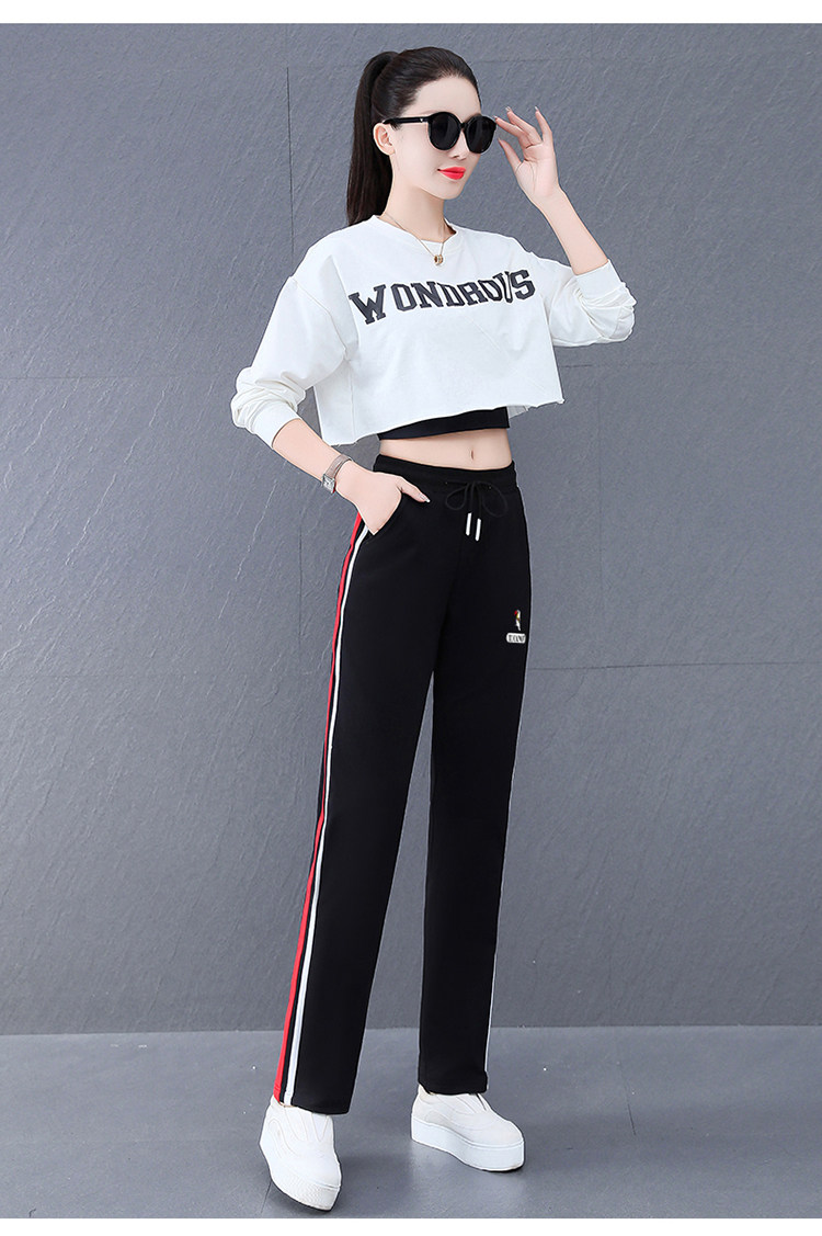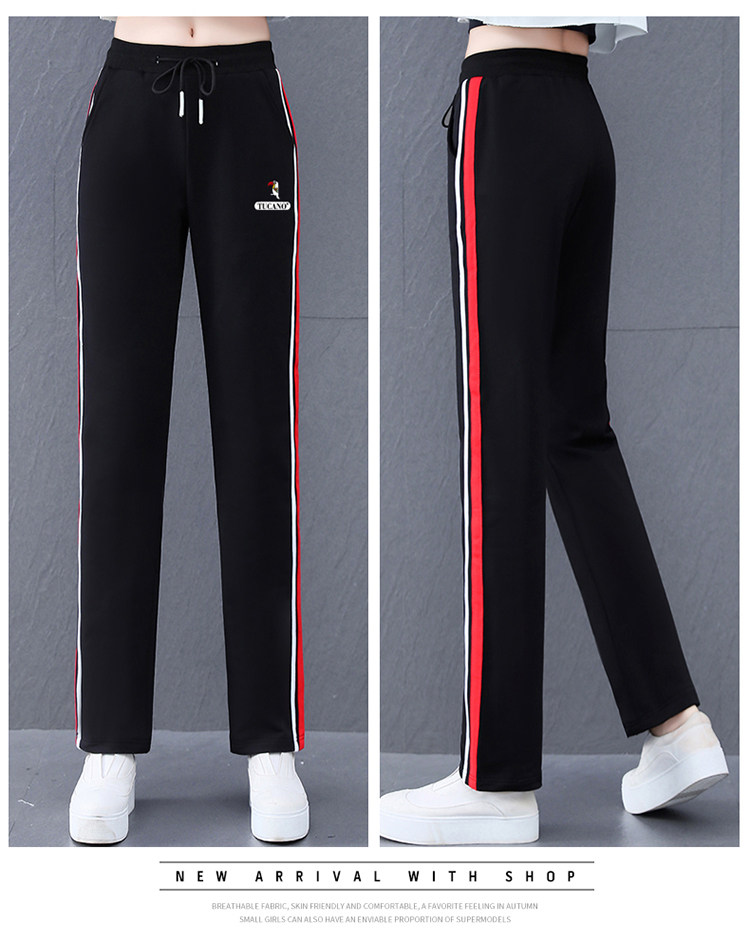 啄木鳥純棉休閒褲女春秋季2025新款直筒運動褲子寬鬆秋冬加絨衛褲