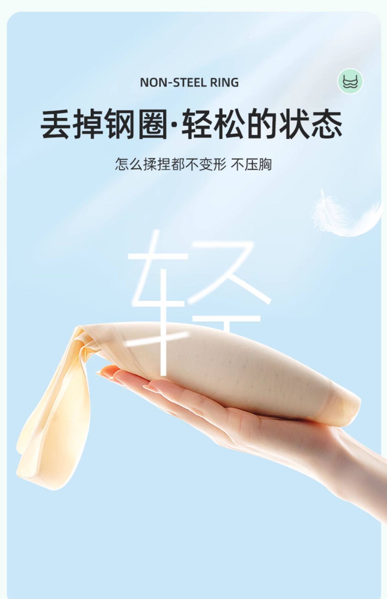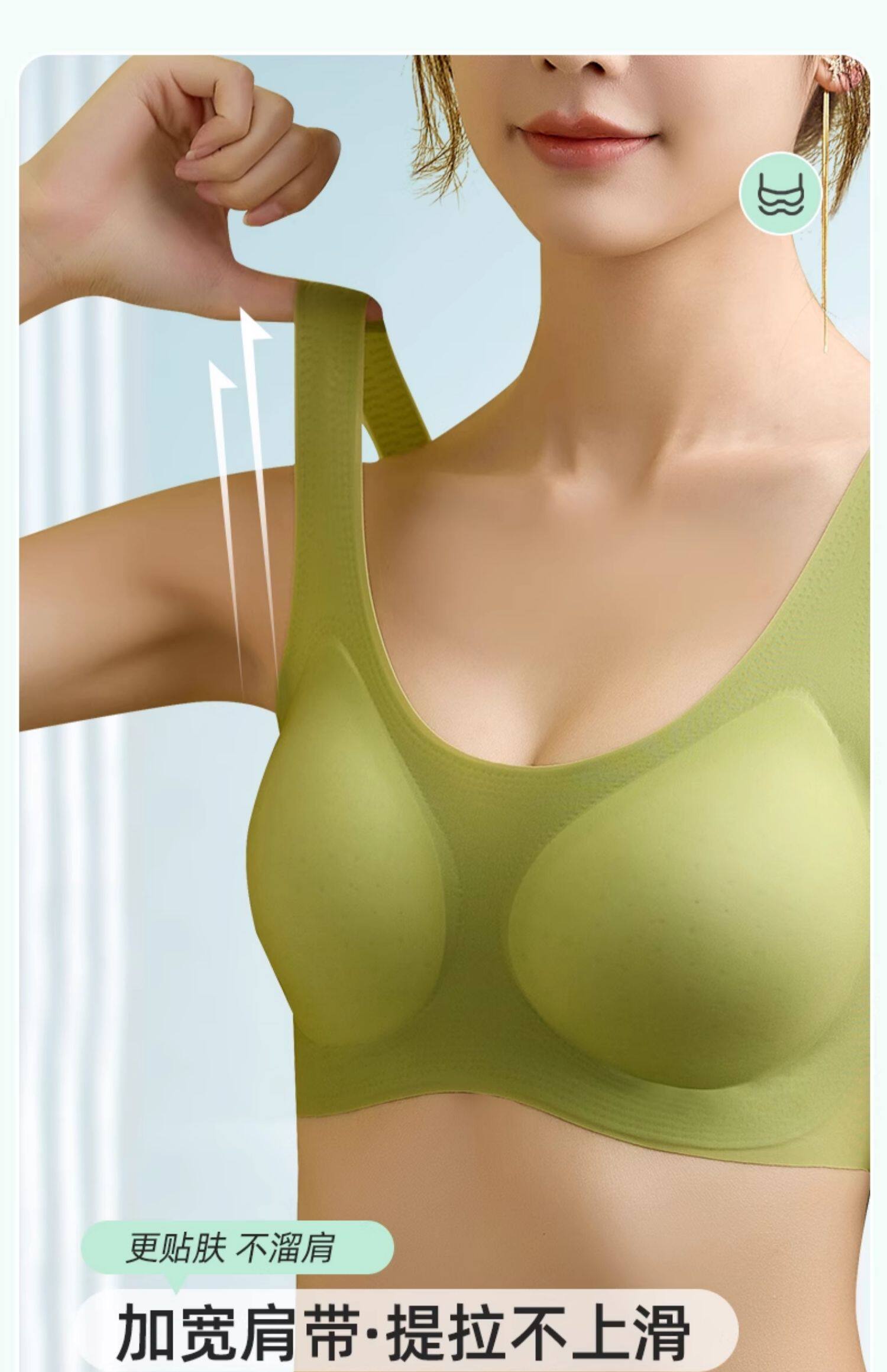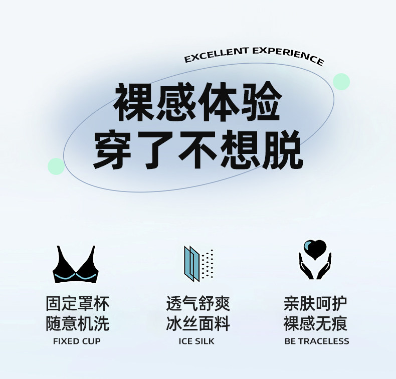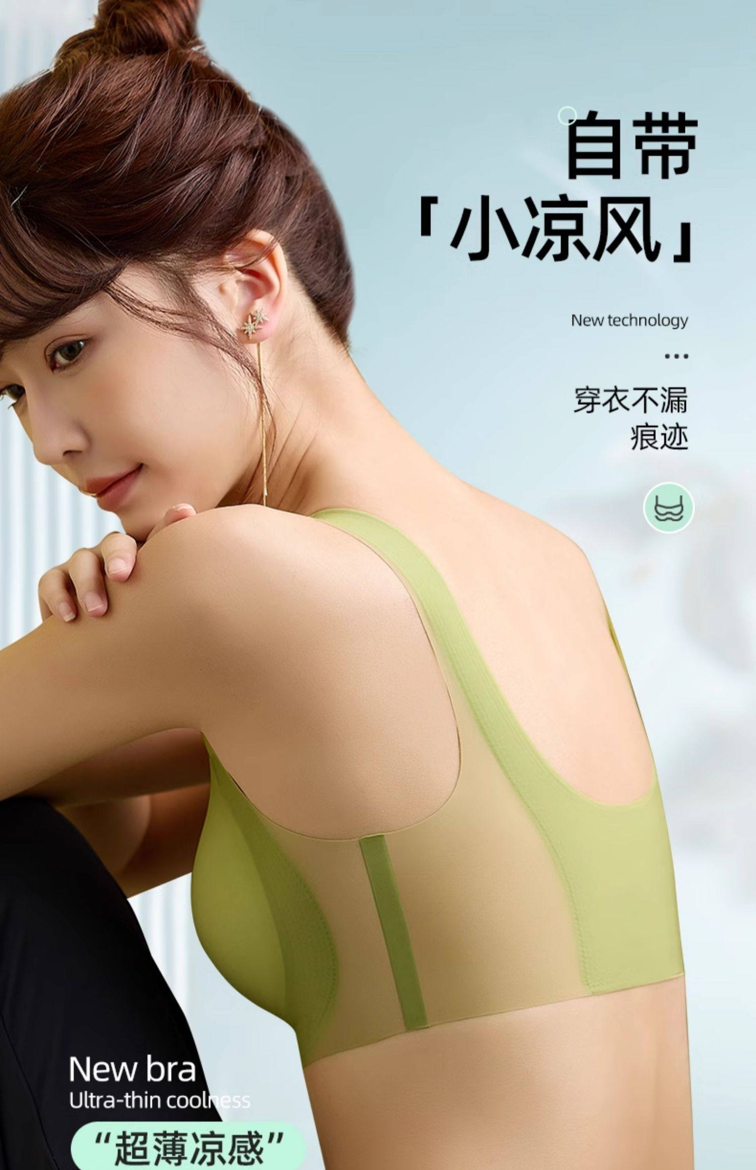 固定杯無痕內衣女夏季超薄款大胸顯小胸冰絲美背心式透氣睡眠文胸