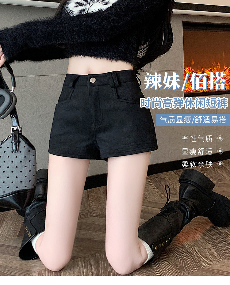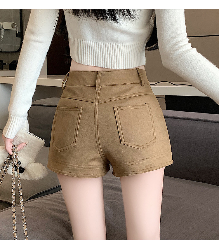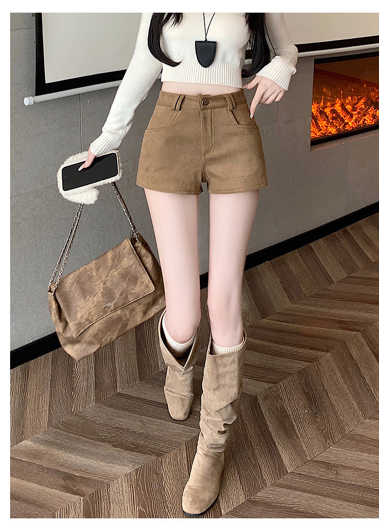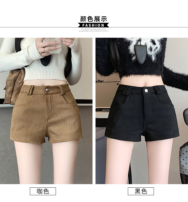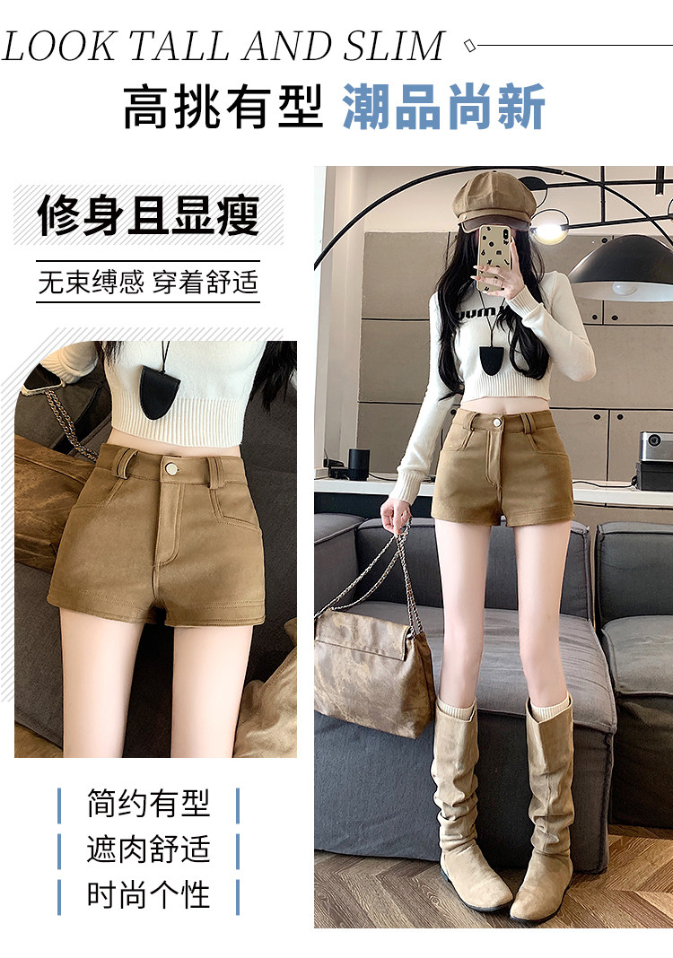 美式復古春秋短褲女外穿2026新款鹿皮絨高腰緊身辣妹a字包臀熱褲