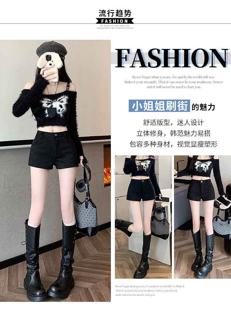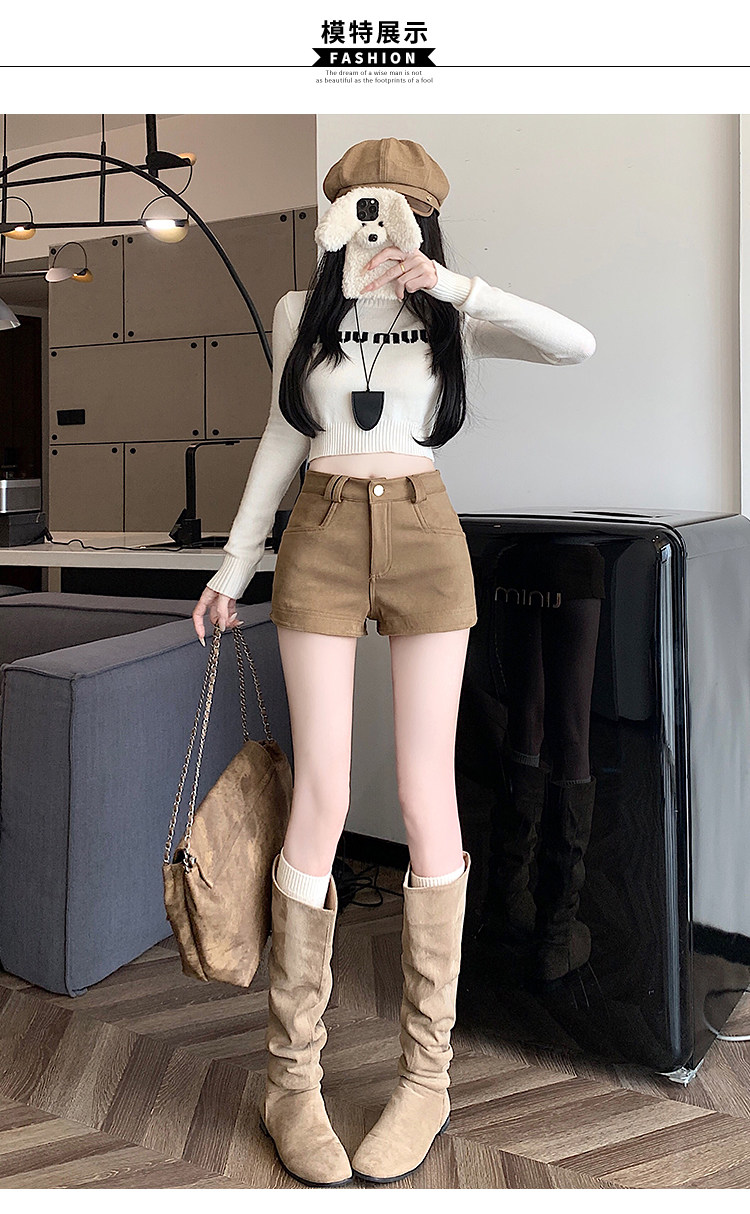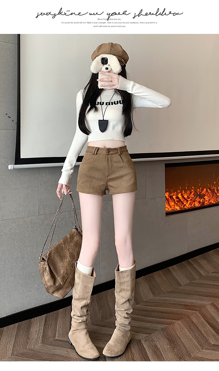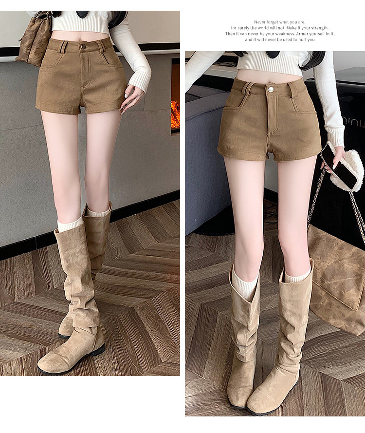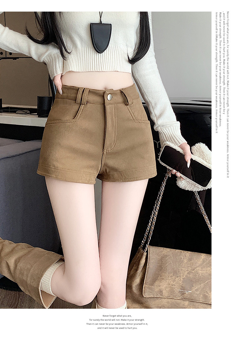 美式復古春秋短褲女外穿2026新款鹿皮絨高腰緊身辣妹a字包臀熱褲