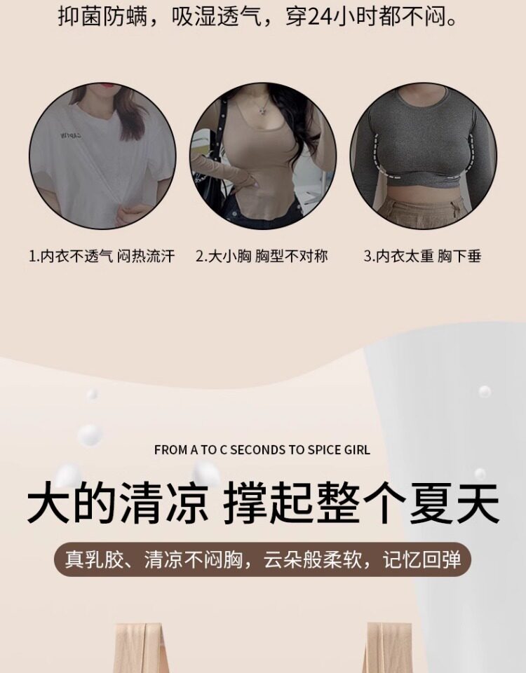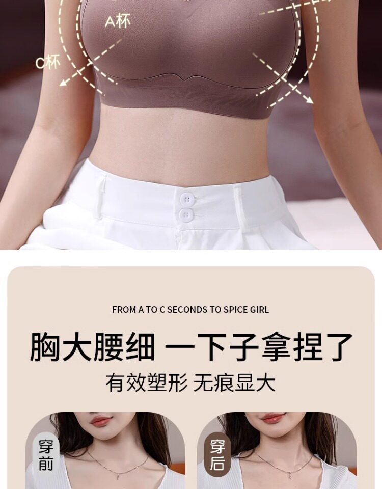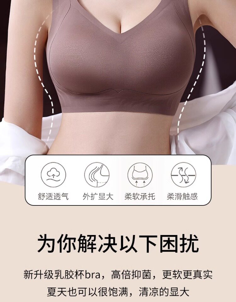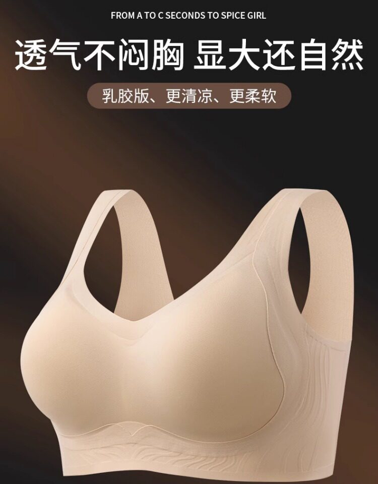 小胸顯大聚攏內衣女平胸專用加厚乳膠胸墊無鋼圈美背心式文胸罩夏