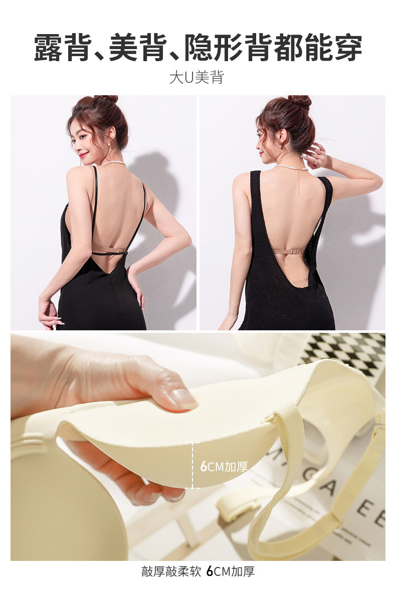 加厚6CM大露背u型隱形美背內衣女小胸聚攏顯大外擴型漫畫胸文胸罩