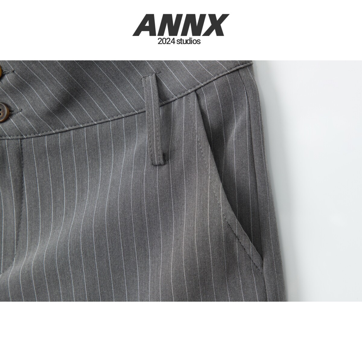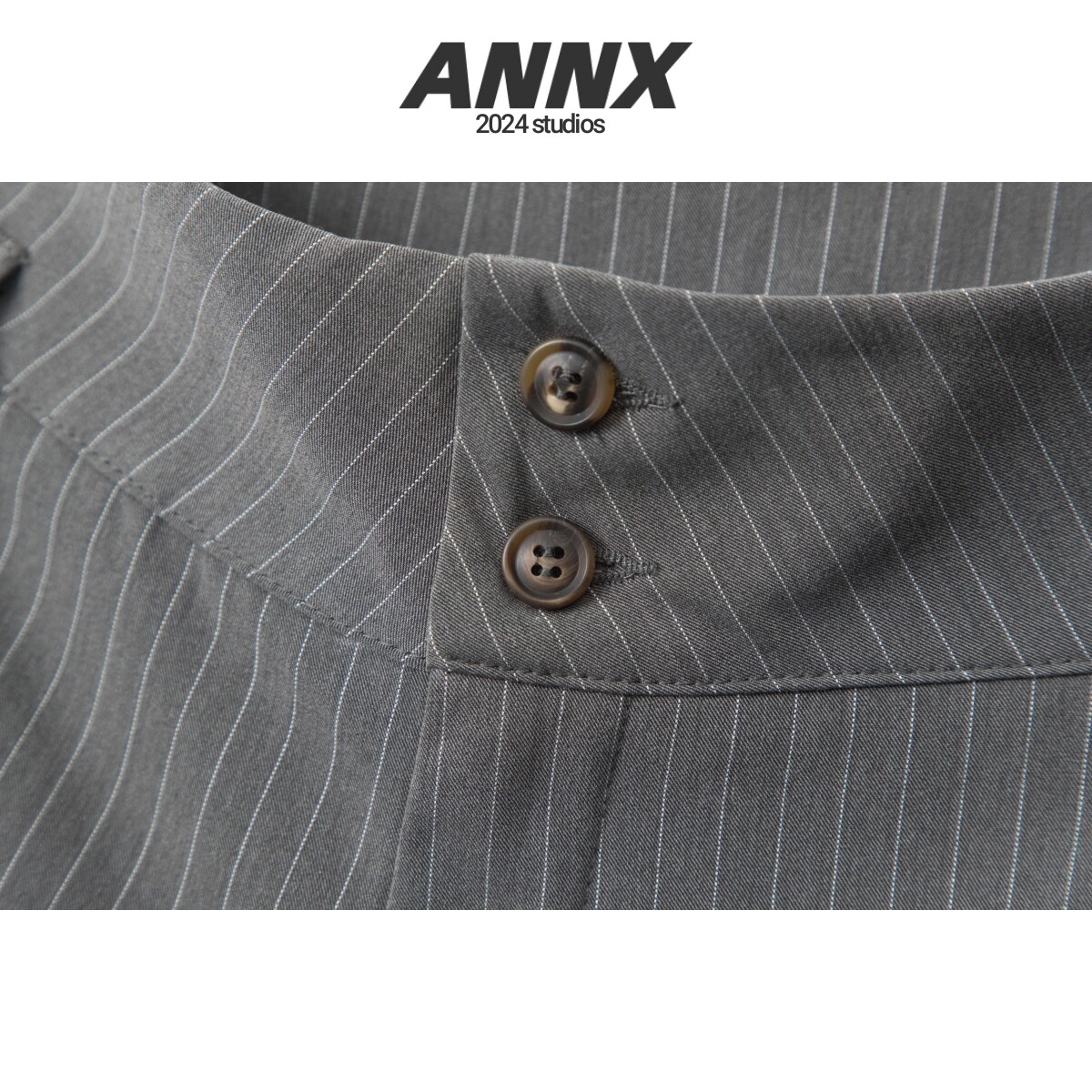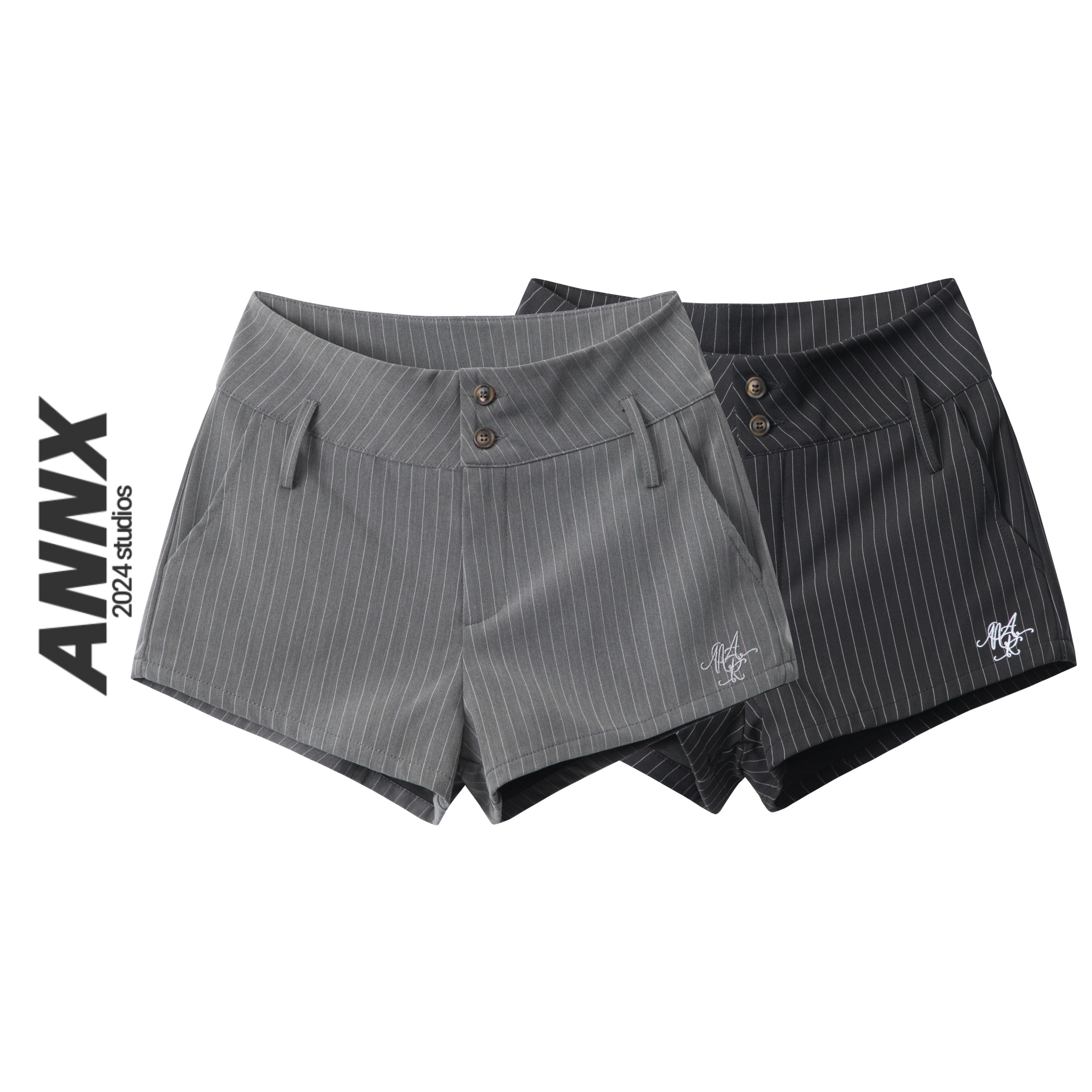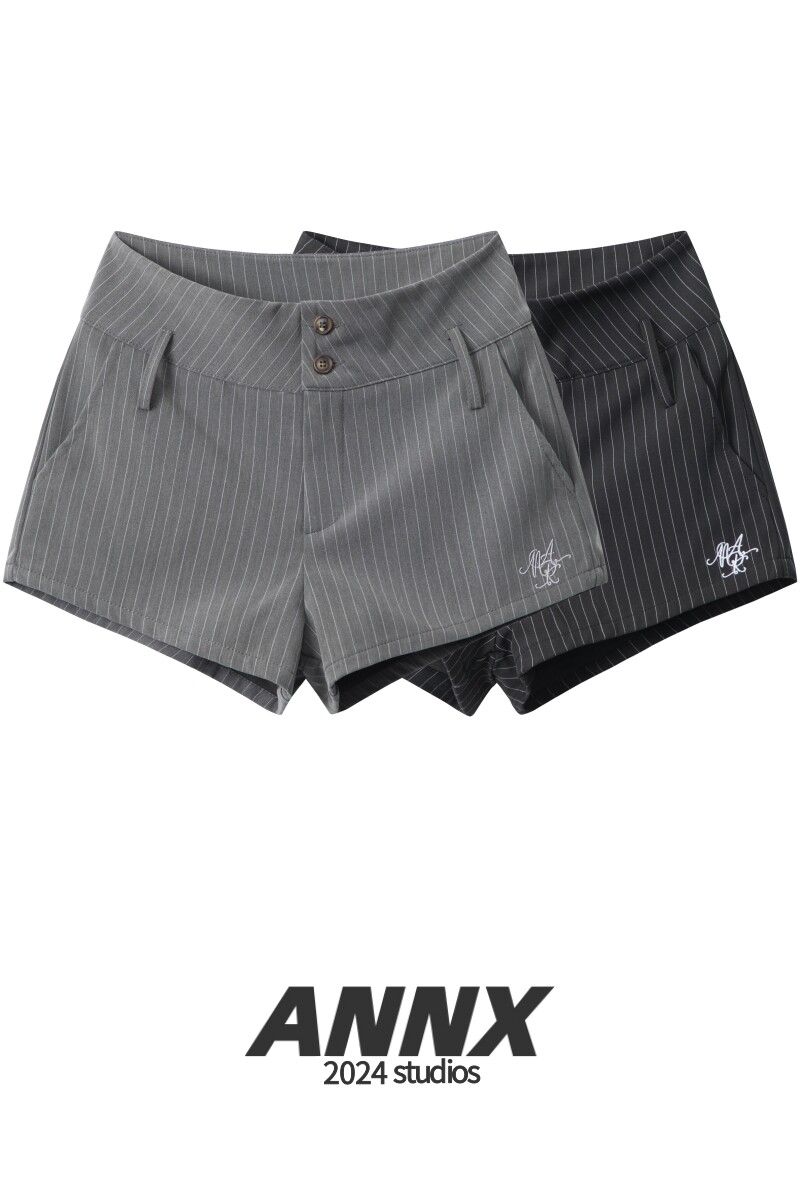 ANNX2026美式條紋簡約刺綉透氣舒適西裝短褲百搭通勤辣妹復古