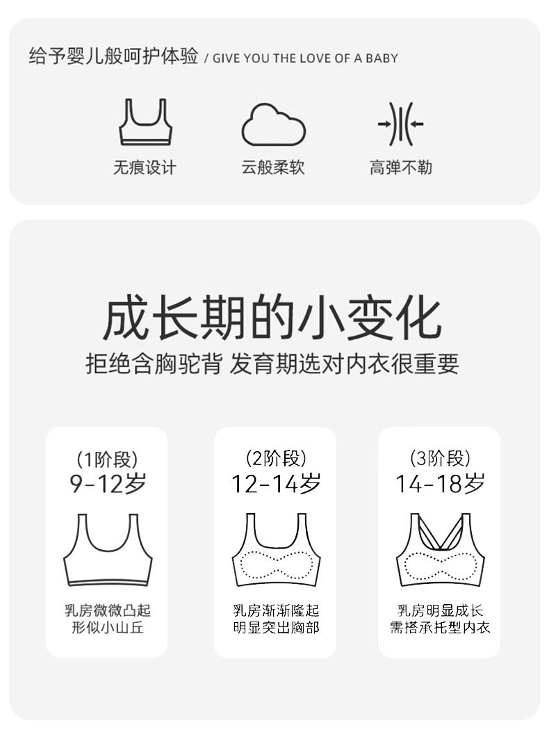 女童內衣發育期少女文胸初中生高中學生提拉軍訓運動防震背心薄款