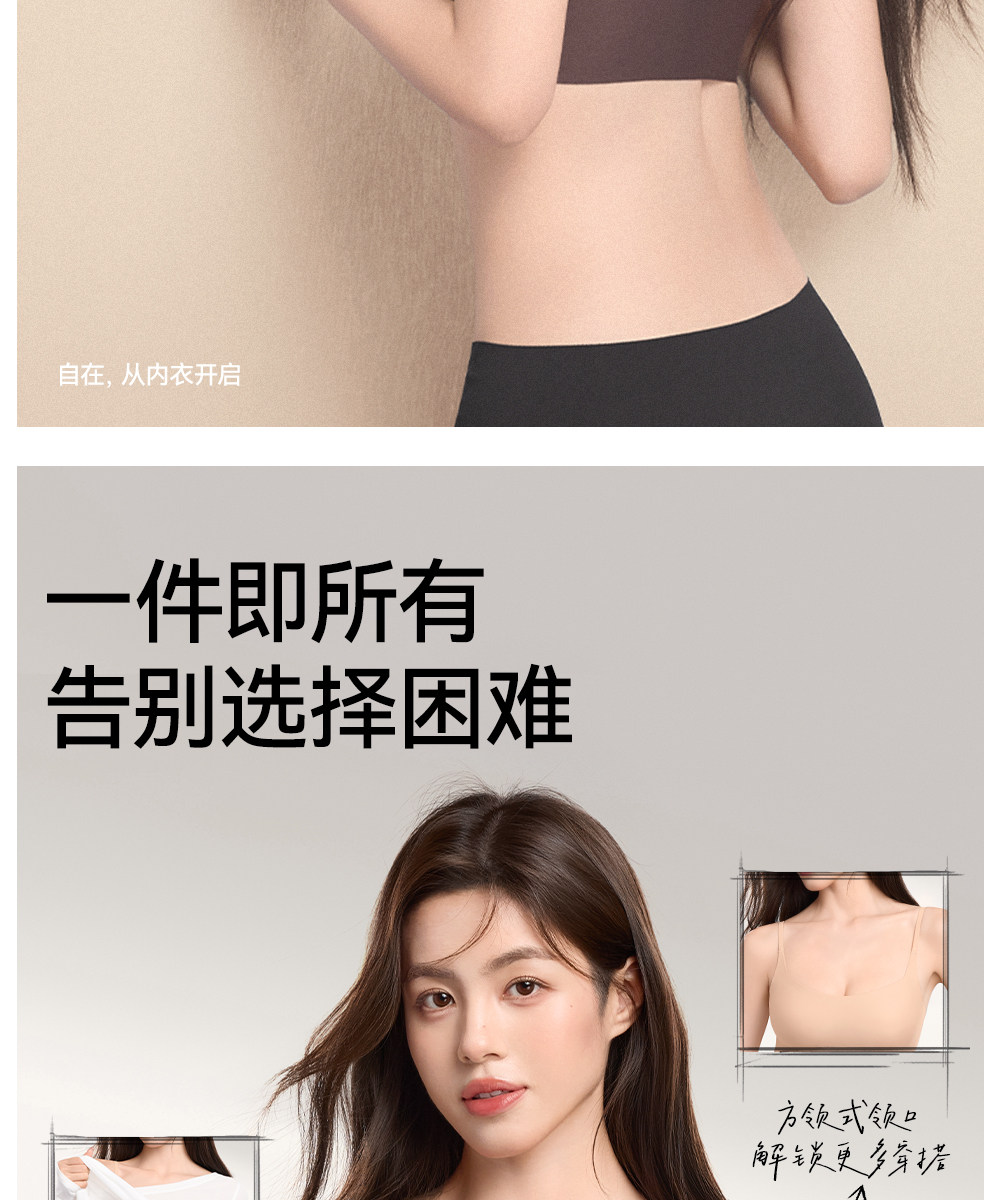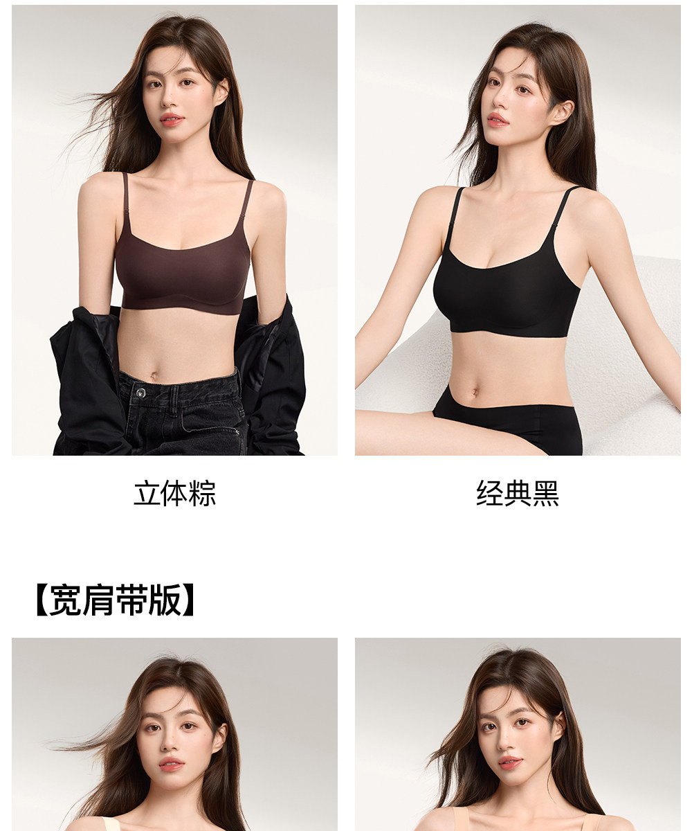 Secret World無尺碼內衣粉底液隱形無痕細肩帶背心吊帶運動文胸罩