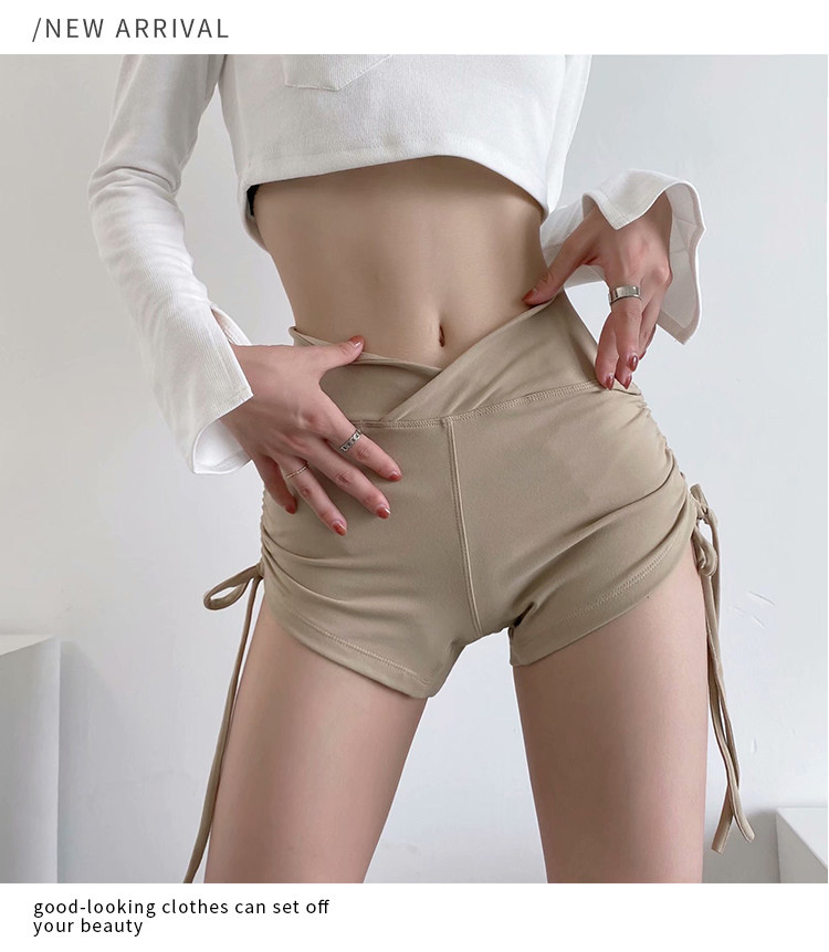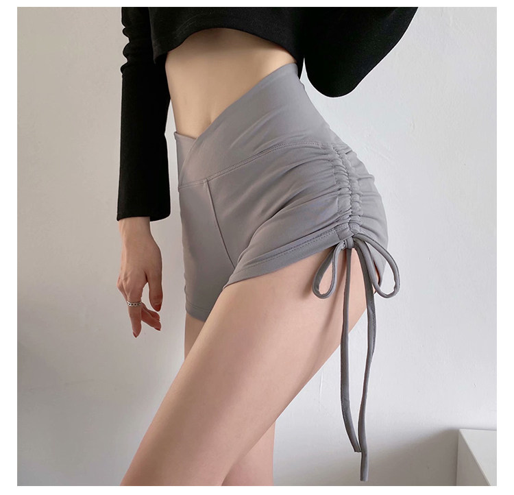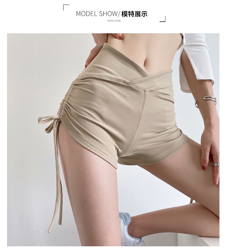 歐美性感健身瑜珈抽繩跳鋼琯舞蹈運動短褲女夏高腰提臀蜜桃臀熱褲