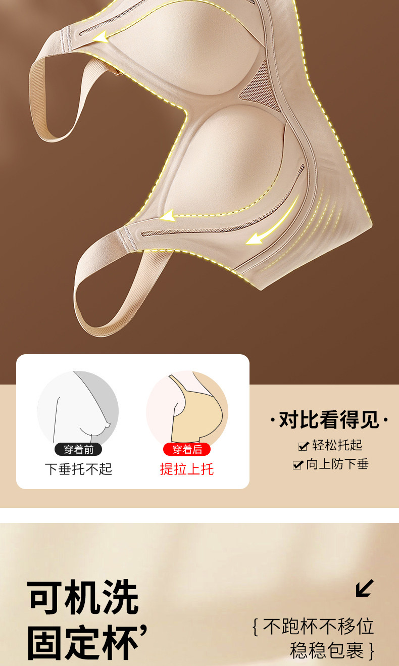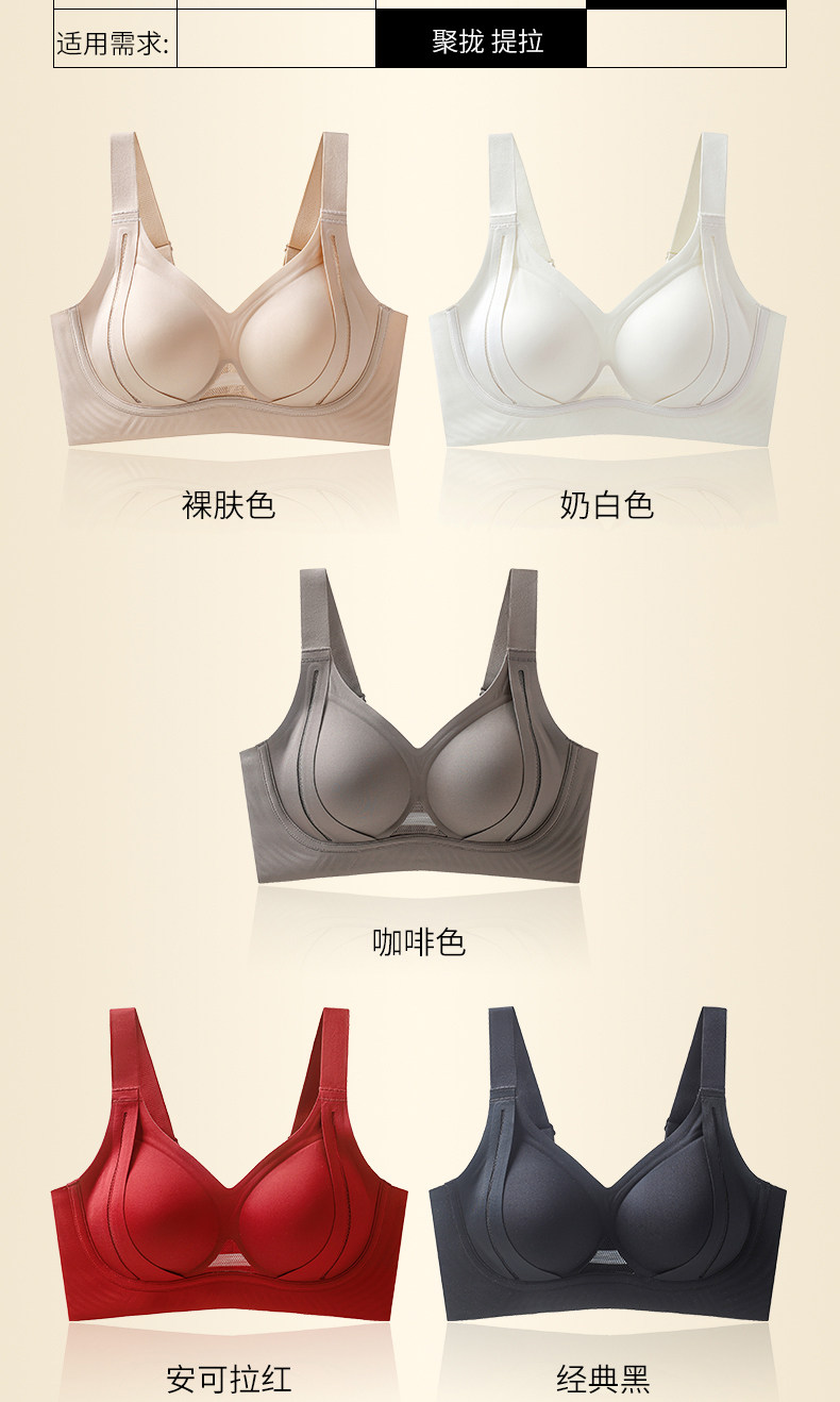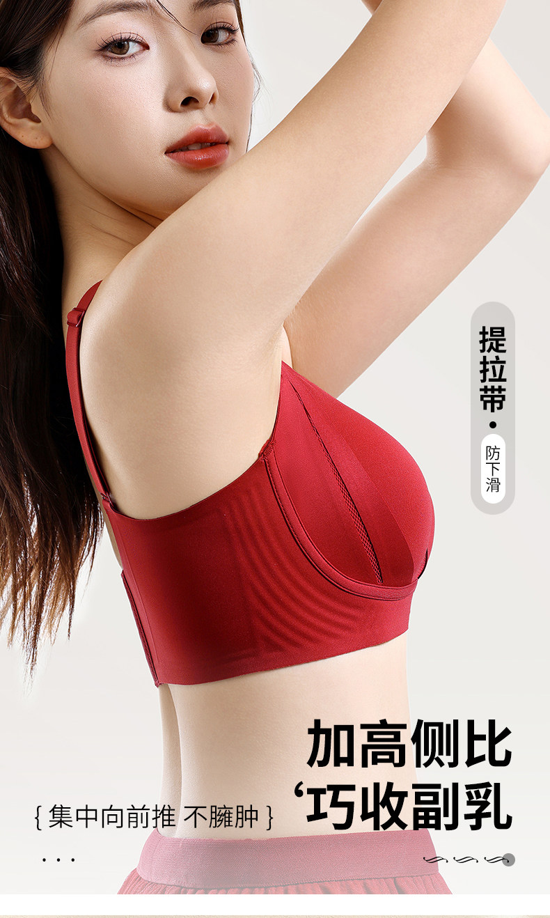 歐迪芬內衣女大胸顯小胸聚攏提拉防下垂收副乳無鋼圈調整型文胸罩