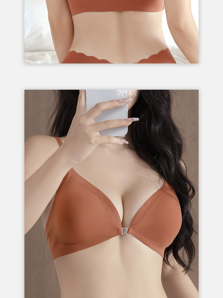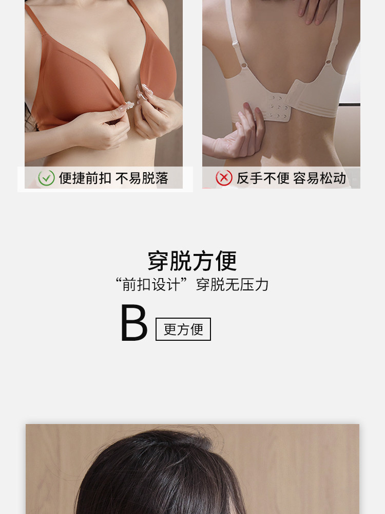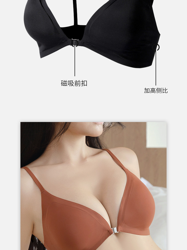 大碼前釦內衣夏季無鋼圈大胸顯小薄款光面無痕收副乳防下垂文胸罩