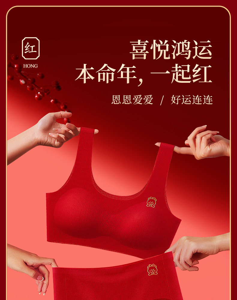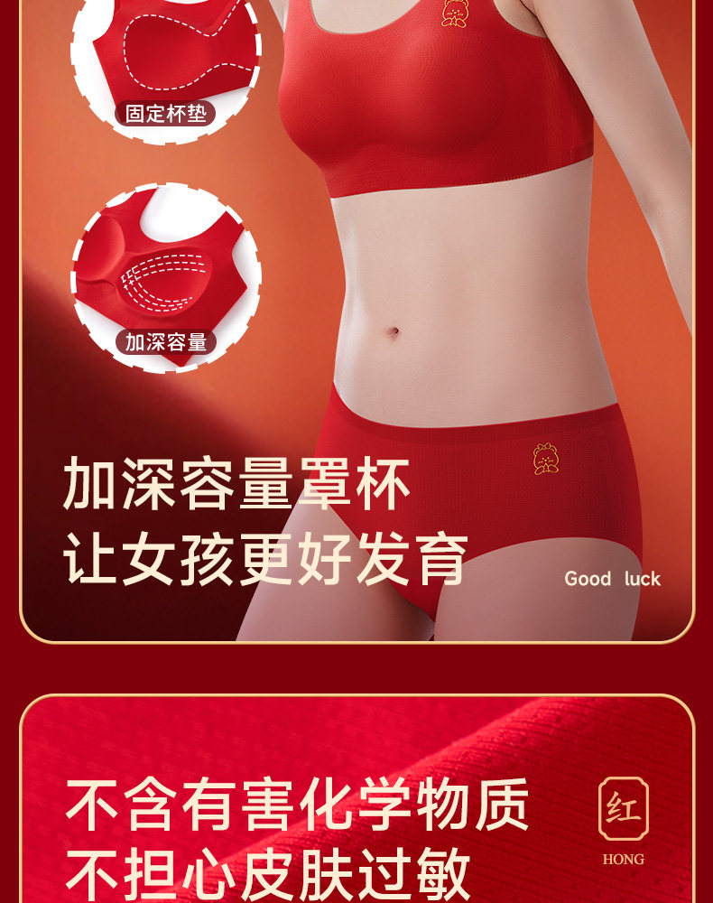 女大童本命年大紅色內衣內褲套裝初高中學生少女生發育期文胸背心