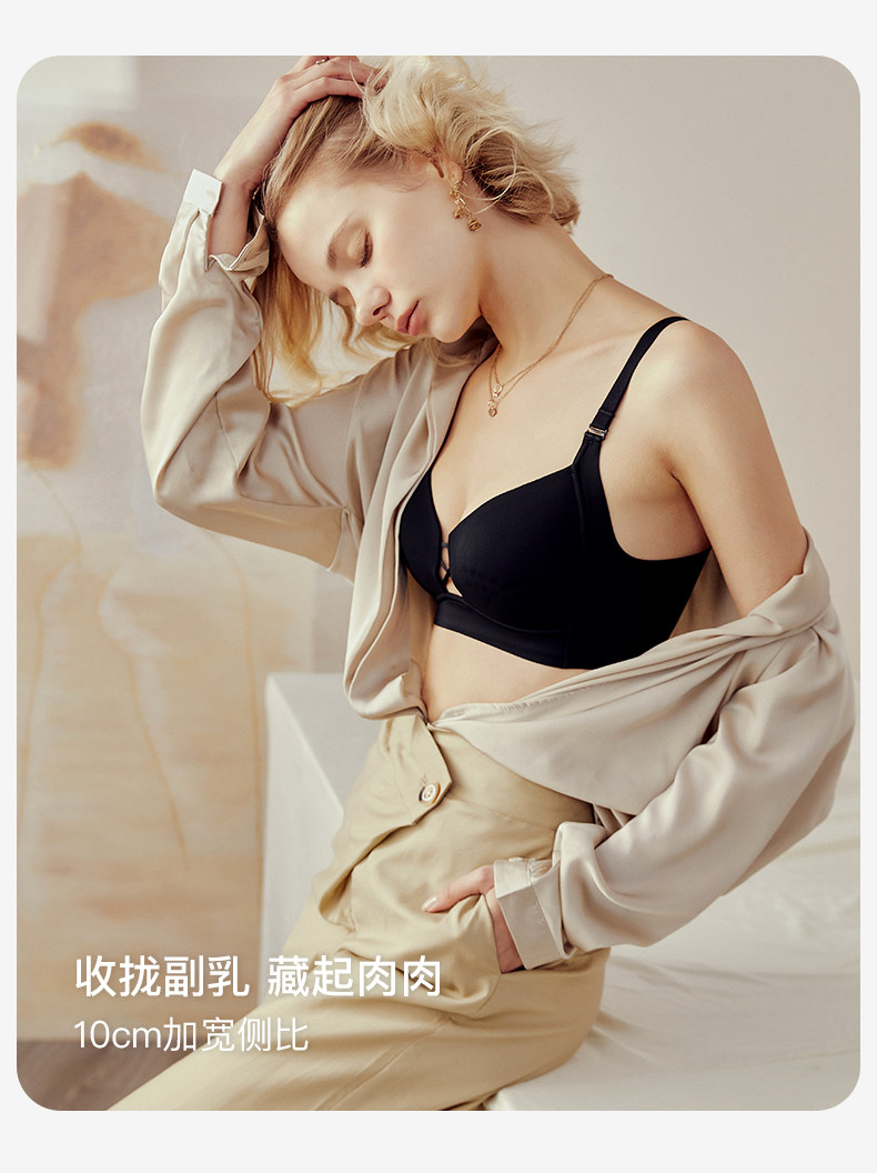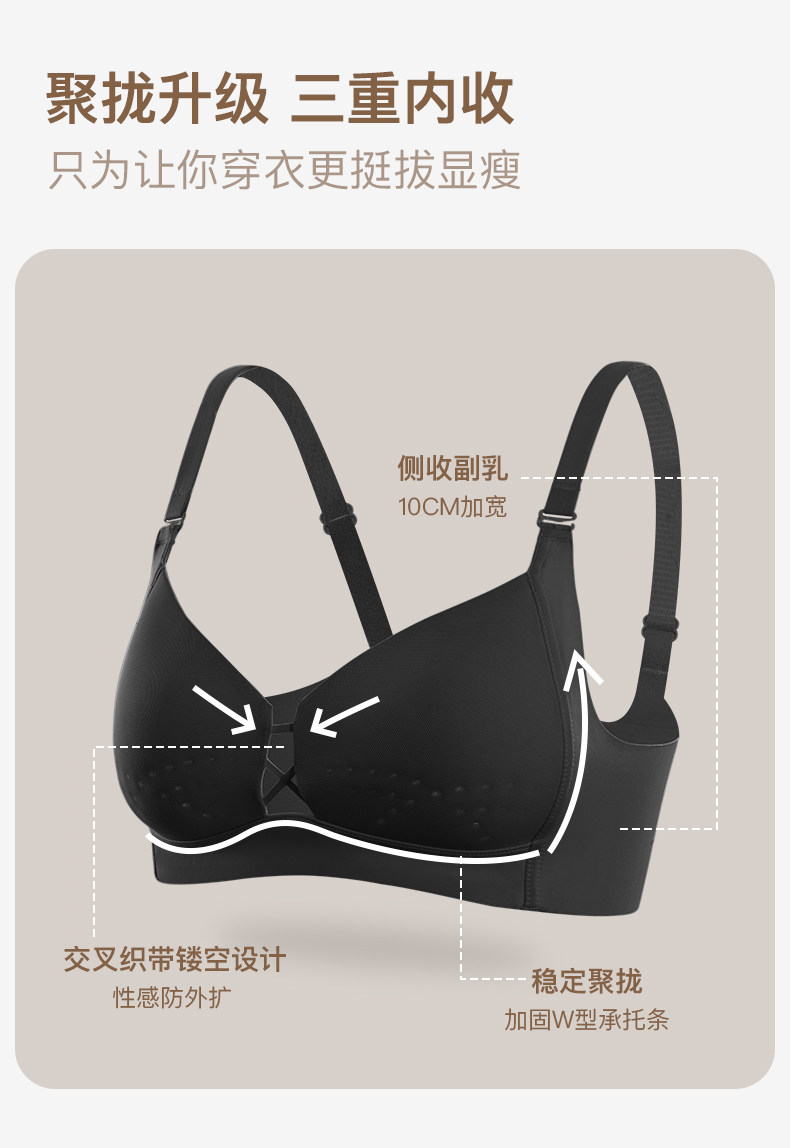 內衣女黑色大碼薄款聚攏大胸顯小收副乳防下垂性感無痕文胸罩套裝