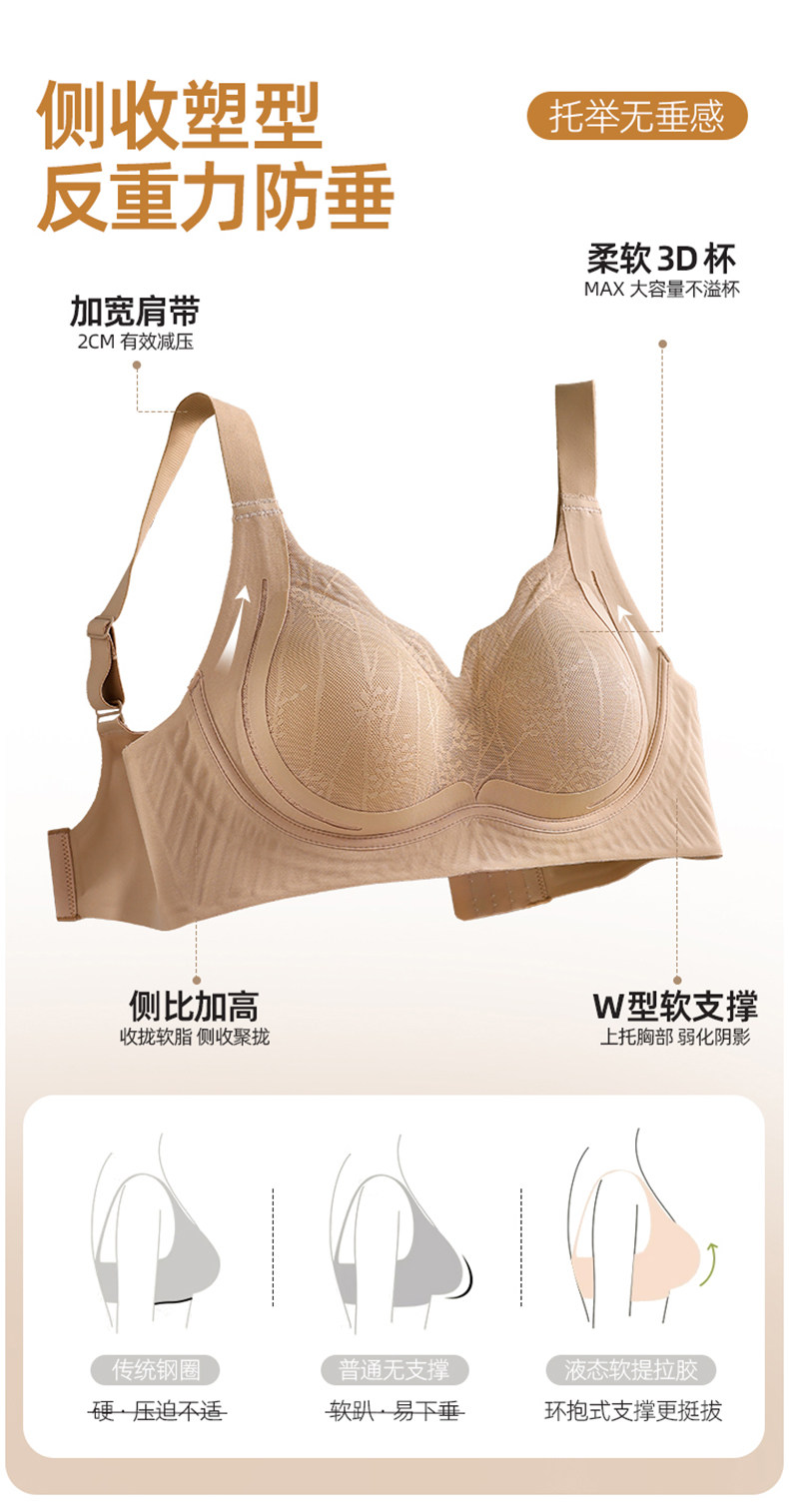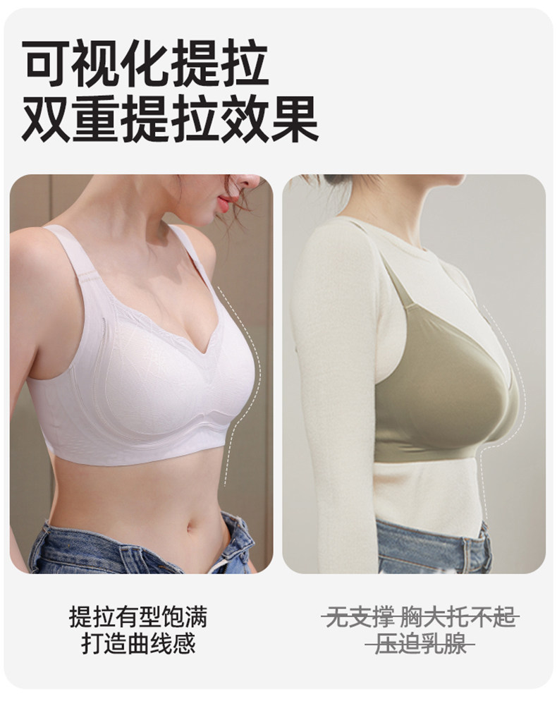 浪莎無痕內衣女士小胸聚攏顯大提拉收副乳防下垂無鋼圈美背文胸KU
